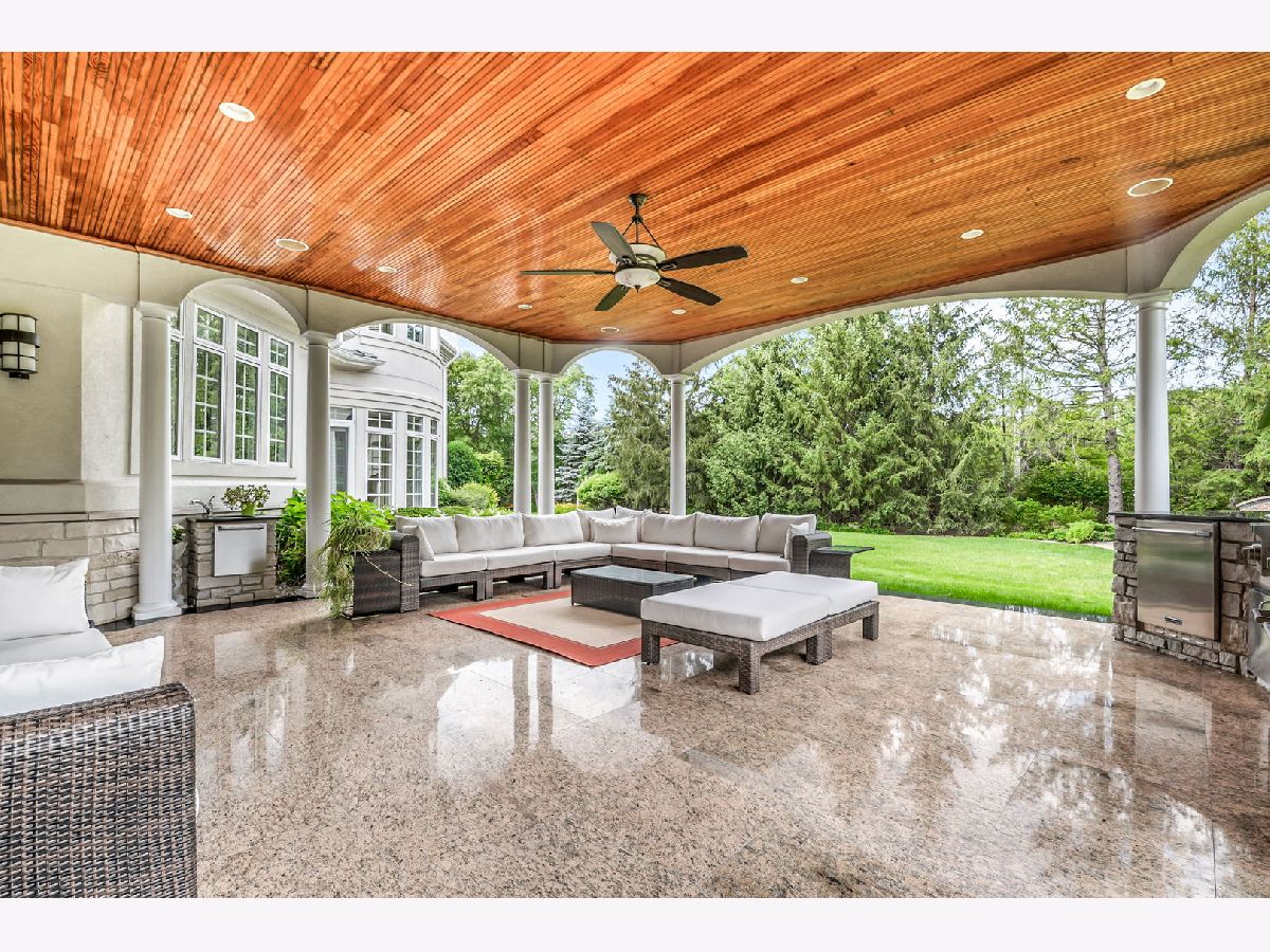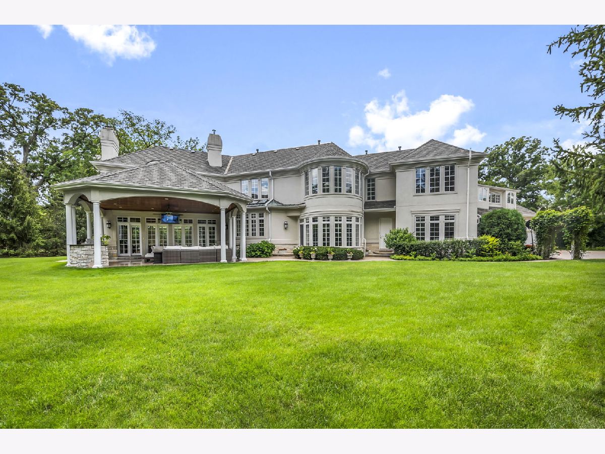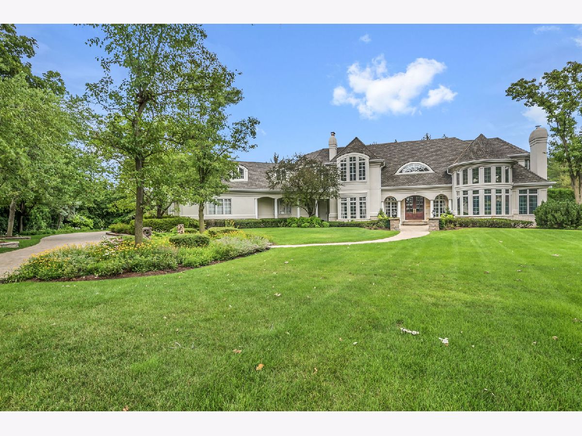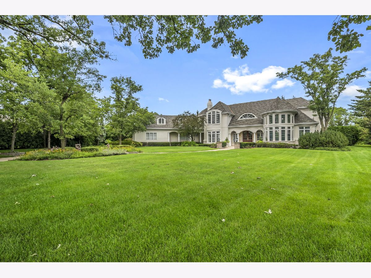 Experience luxury and elegance at this impeccable villa sprawled across a 1.3 acre cul-de-sac lot at the gated community of Hunter Trails. Inside, the welcoming space has the perfect balance of everyday casual living and formal entertaining. Soaring ceilings, six fireplaces, and abundant floor to ceiling windows looking out to a lush and private backyard with newly built patio complete with outdoor kitchen. Superior craftsmanship and detail throughout, giving this home a timeless quality. Fine millwork, coffered ceilings, custom built-ins, expansive room sizes, and extensive outdoor landscaping. Breathtaking grand foyer with marble floor and beautiful custom staircase with wrought iron rails. The gourmet kitchen has custom cabinetry, granite countertops with backsplash, luxury Thermador and Subzero appliances which include a built-in 6 burner plus grill stove, and breakfast area with large windows. Inviting family room with fireplace, book shelves and massive French doors on both sides of the room leading out to the gorgeous patio bringing the outdoors in. Stunning marble floor and tray ceiling with triple crown molding in the formal dining room. Two story living room with designer ceiling, fireplace and one wall of floor to ceiling windows. Sophisticated primary bedroom suite with a sitting room, spa bath with soaking tub, separate shower, extra closets and dual sinks is the epitome of luxury. Five additional en-suite bedrooms with volume ceilings and abundant closet space. First floor bedroom en-suite, office/library with coffered ceilings, fireplace and extensive wood work is perfect to work from home. Two powder rooms and a laundry room on the first floor. Entertain outside in the serene backyard with parklike landscaping, paver patio with a firepit, and a massive covered patio with a full outdoor kitchen. Or take the party inside to the basement where you'll find a massive recreation room, wet bar, fireplace, poker room, billiard room, exercise room and a full bathroom. A separate private wing with a large bedroom and a full bath is perfect for related livings or live in helper. This remarkable home truly has it all. Located in Oak Brook's most desirable neighborhood and just minutes away from schools, shopping, dining, highways and several other amenities. .