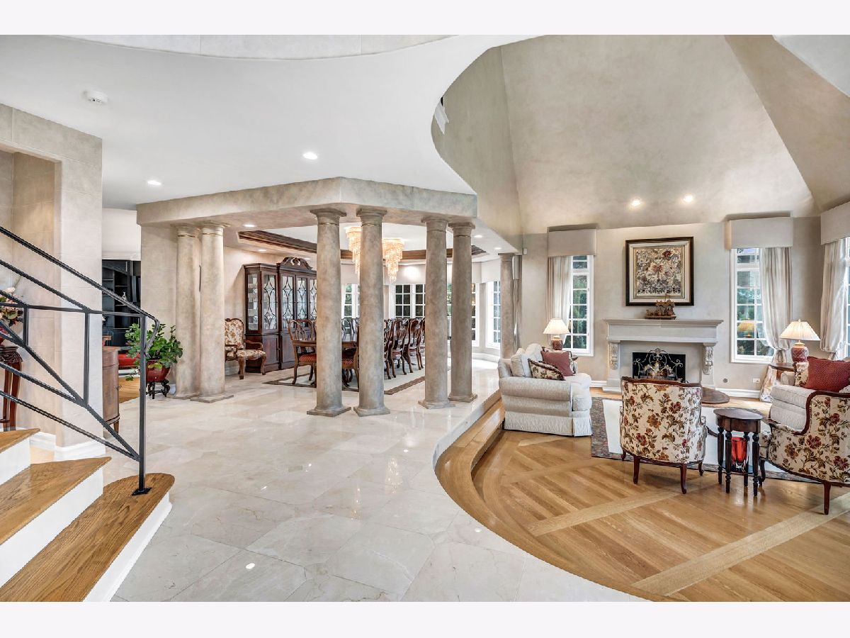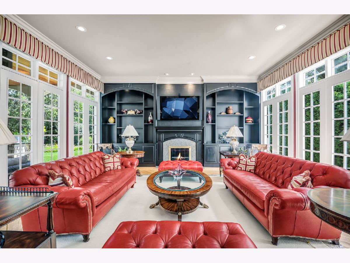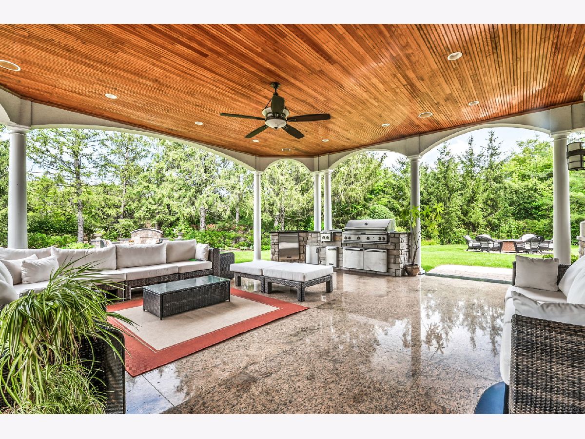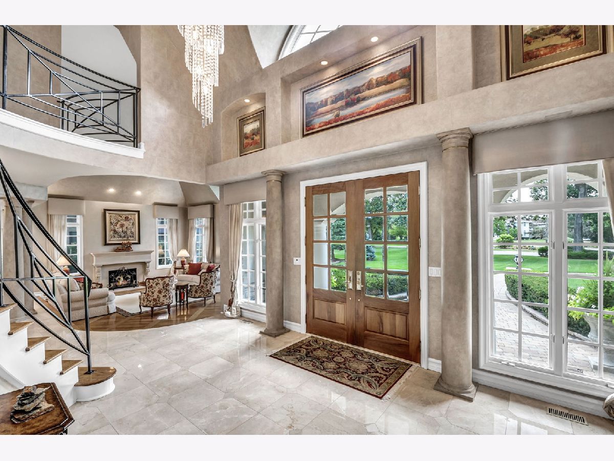 Experience luxury and elegance at this impeccable villa sprawled across a 1.3 acre cul-de-sac lot at the gated community of Hunter Trails. Inside, the welcoming space has the perfect balance of everyday casual living and formal entertaining. Soaring ceilings, six fireplaces, and abundant floor to ceiling windows looking out to a lush and private backyard with newly built patio complete with outdoor kitchen. Superior craftsmanship and detail throughout, giving this home a timeless quality. Fine millwork, coffered ceilings, custom built-ins, expansive room sizes, and extensive outdoor landscaping. Breathtaking grand foyer with marble floor and beautiful custom staircase with wrought iron rails. The gourmet kitchen has custom cabinetry, granite countertops with backsplash, luxury Thermador and Subzero appliances which include a built-in 6 burner plus grill stove, and breakfast area with large windows. Inviting family room with fireplace, book shelves and massive French doors on both sides of the room leading out to the gorgeous patio bringing the outdoors in. Stunning marble floor and tray ceiling with triple crown molding in the formal dining room. Two story living room with designer ceiling, fireplace and one wall of floor to ceiling windows. Sophisticated primary bedroom suite with a sitting room, spa bath with soaking tub, separate shower, extra closets and dual sinks is the epitome of luxury. Five additional en-suite bedrooms with volume ceilings and abundant closet space. First floor bedroom en-suite, office/library with coffered ceilings, fireplace and extensive wood work is perfect to work from home. Two powder rooms and a laundry room on the first floor. Entertain outside in the serene backyard with parklike landscaping, paver patio with a firepit, and a massive covered patio with a full outdoor kitchen. Or take the party inside to the basement where you'll find a massive recreation room, wet bar, fireplace, poker room, billiard room, exercise room and a full bathroom. A separate private wing with a large bedroom and a full bath is perfect for related livings or live in helper. This remarkable home truly has it all. Located in Oak Brook's most desirable neighborhood and just minutes away from schools, shopping, dining, highways and several other amenities. .