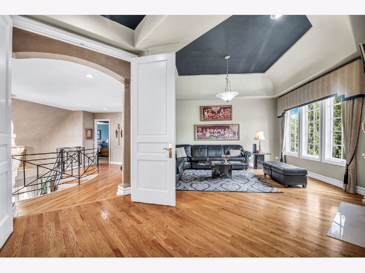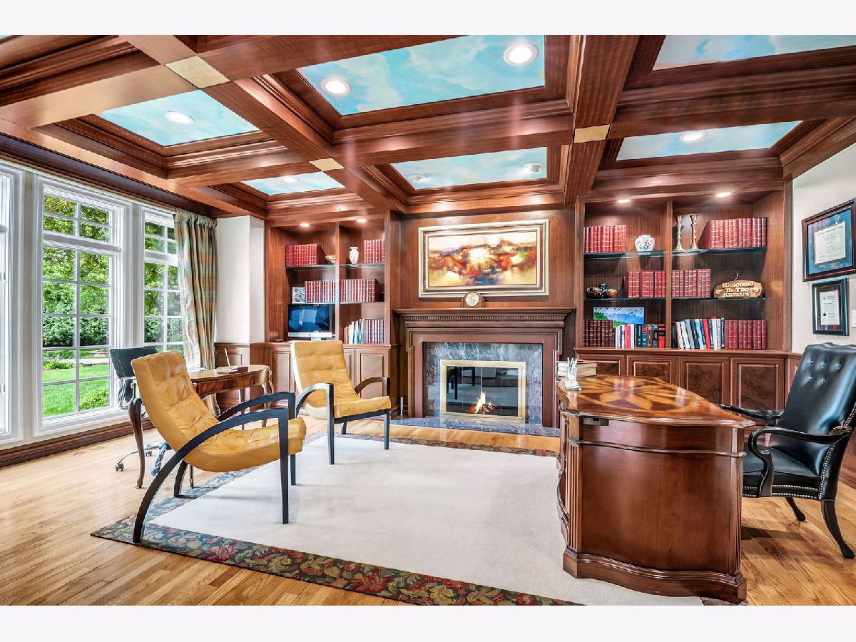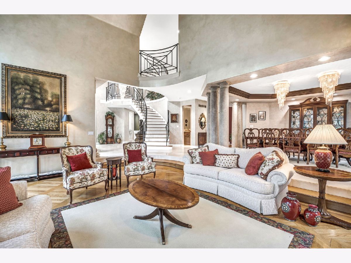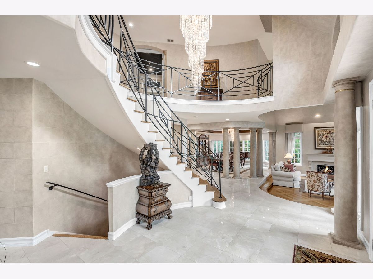 Experience luxury and elegance at this impeccable villa sprawled across a 1.3 acre cul-de-sac lot at the gated community of Hunter Trails. Inside, the welcoming space has the perfect balance of everyday casual living and formal entertaining. Soaring ceilings, six fireplaces, and abundant floor to ceiling windows looking out to a lush and private backyard with newly built patio complete with outdoor kitchen. Superior craftsmanship and detail throughout, giving this home a timeless quality. Fine millwork, coffered ceilings, custom built-ins, expansive room sizes, and extensive outdoor landscaping. Breathtaking grand foyer with marble floor and beautiful custom staircase with wrought iron rails. The gourmet kitchen has custom cabinetry, granite countertops with backsplash, luxury Thermador and Subzero appliances which include a built-in 6 burner plus grill stove, and breakfast area with large windows. Inviting family room with fireplace, book shelves and massive French doors on both sides of the room leading out to the gorgeous patio bringing the outdoors in. Stunning marble floor and tray ceiling with triple crown molding in the formal dining room. Two story living room with designer ceiling, fireplace and one wall of floor to ceiling windows. Sophisticated primary bedroom suite with a sitting room, spa bath with soaking tub, separate shower, extra closets and dual sinks is the epitome of luxury. Five additional en-suite bedrooms with volume ceilings and abundant closet space. First floor bedroom en-suite, office/library with coffered ceilings, fireplace and extensive wood work is perfect to work from home. Two powder rooms and a laundry room on the first floor. Entertain outside in the serene backyard with parklike landscaping, paver patio with a firepit, and a massive covered patio with a full outdoor kitchen. Or take the party inside to the basement where you'll find a massive recreation room, wet bar, fireplace, poker room, billiard room, exercise room and a full bathroom. A separate private wing with a large bedroom and a full bath is perfect for related livings or live in helper. This remarkable home truly has it all. Located in Oak Brook's most desirable neighborhood and just minutes away from schools, shopping, dining, highways and several other amenities. .