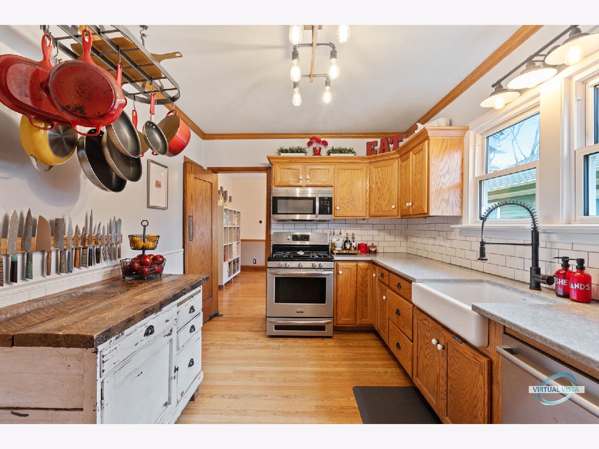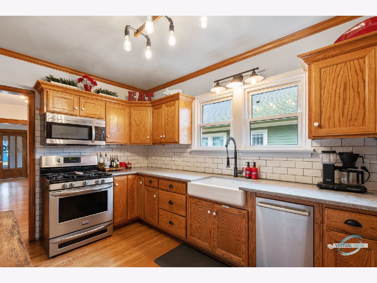 STUNNING UPDATED AUTHENTIC CRAFTSMAN BUNGALOW WITH TODAY'S MODERN AMENITIES AND ORIGINAL CHARM! HIGH CEILINGS, OAK FLOORS, PERIOD TRIM W/OAK BASEBOARD AND CRAFTSMAN DOORS W/PERIOD HANDLES THRUOUT 1ST FLOOR. BOOKCASES SURROUND A CRAFTSMAN FIREPLACE IN THE SPACIOUS LIVING ROOM! BEAUTIFULLY UPDATED KITCHEN WITH CUSTOM CABINETS, NEW QUARTZ COUNTERTOPS, FARM SINK, CUSTOM BACKSPLASH & STAINLESS APPLIANCES. TWO LARGE BEDROOMS ON 1ST FLOOR! UPDATED 1ST FLOOR FULL BATH! HUGE MASTER SUITE WITH PRIVATE UPDATED BATH AND ADJACENT 4TH BEDROOM. FRESHLY PAINTED INTERIOR, NEW HV/AC IN 2020. NEWER WINDOWS, ROOF & H2O. ENCLOSED FRONT PORCH W/BEADBOARD CEILING & KNOTTY PINE WALLS. BEAUTIFULLY LANDSCAPED, FENCED YARD W/OVERSIZED 2 CAR GARAGE AND CUSTOM BUILT-IN FIREPIT GREAT FOR ENTERTAINING! SPACIOUS DRY BASEMENT WITH 2 ADDITIONAL FINISHED ROOMS/5TH BEDROOM PLUS LAUNDRY (W/PARTIAL BATH) AND MECHANICAL/STORAGE ROOM. WALK TO TRAIN, TOWN, PARKS & SCHOOL! A MUST SEE!