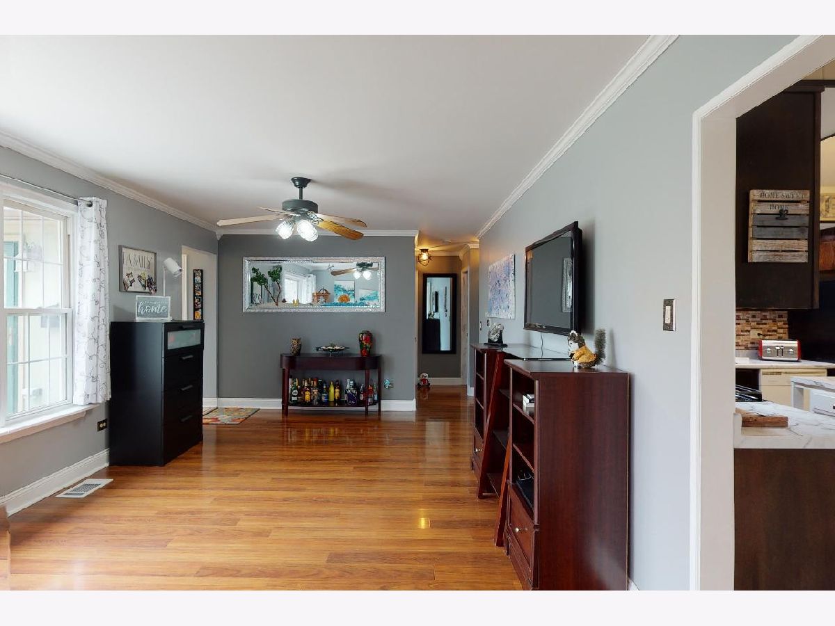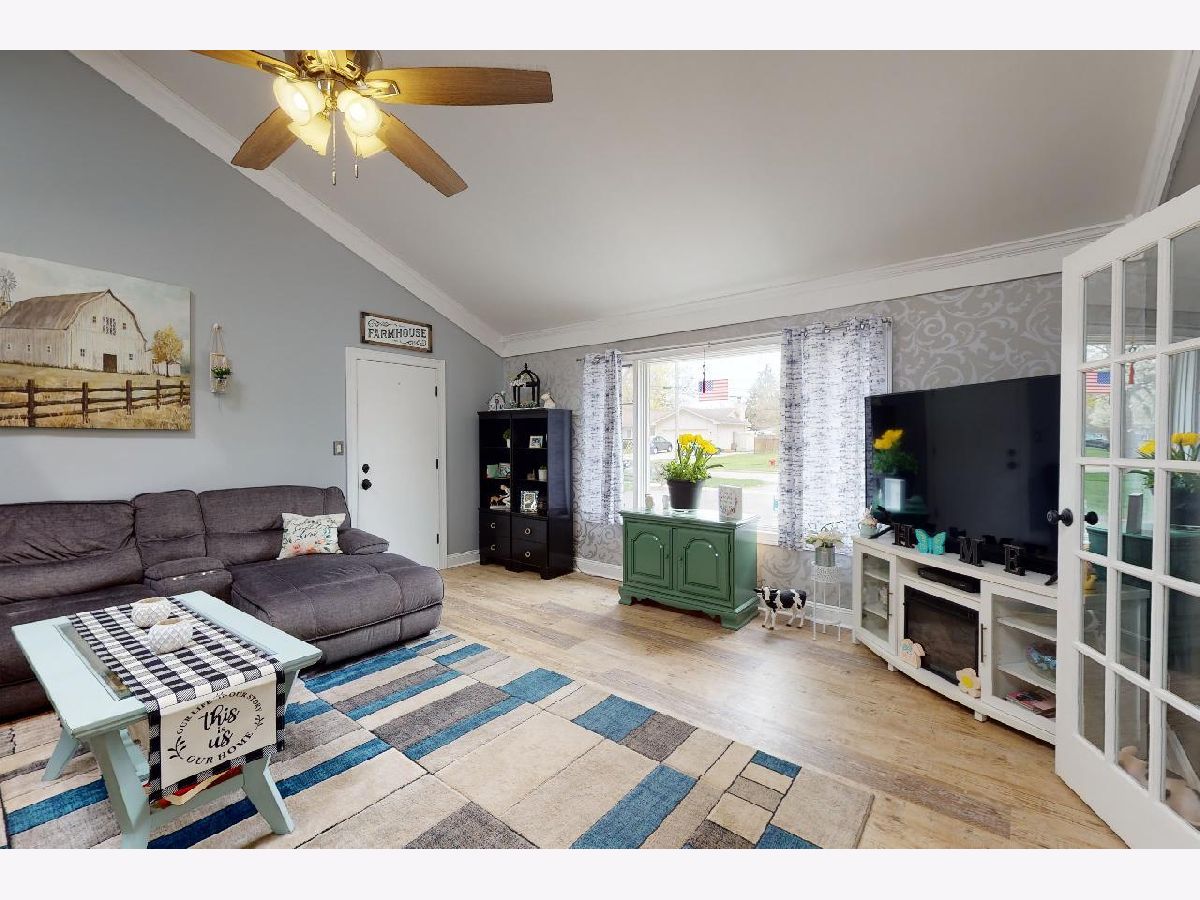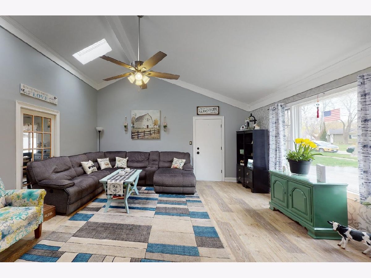Fall in love with the light, bright, family room with vaulted ceiling that is the heart of this home! You also get an attached 2 car garage! The home is beautifully decorated with all the right touches including wood laminate flooring, crown molding, skylight, ceiling fans, Nest thermostat, and more. Kitchen with loads of cabinet space and a center island with stools. The large living room gives your family two generous living spaces. The seller uses the sunroom as a dining room and it also has a grand vaulted ceiling opening up the feel of the home. Three bedrooms. The owner had had plans to add a master bath and we can share the idea if you're interested. No carpeting in any part of this home, all hard surface flooring throughout. Fenced yard with deck and above ground pool which you'll just be in time to enjoy all summer if you move quickly! Massive driveway with room for all the family vehicles. Ultra convenient Rolling Meadows location close to shopping, expressways, and transportation.