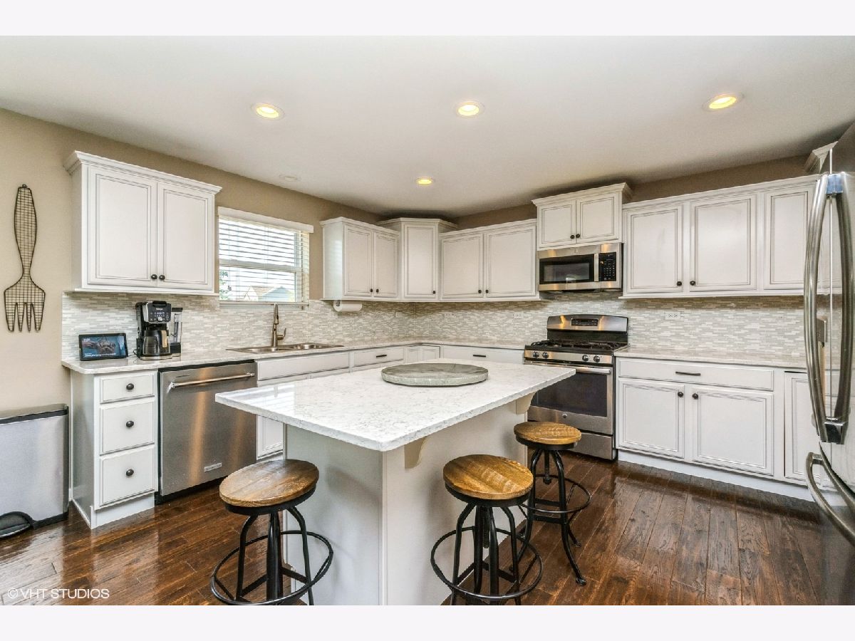 THERE'S NO PLACE LIKE HOME! Just GORGEOUS! Built in 2014, this New Lenox Home features 3 Bedrooms with Loft (optional 4th bedroom!), 2.5 Bathrooms, and Many Significant Upgrades! Hand-scraped Hardwood Flooring on the entire main level. Stunning Kitchen with 32" White Cabinetry, Crown Moulding, Quartz Countertops and Stainless Steel Appliances. Dishwasher and Microwave are NEW! Center Island and Pantry provide additional prep space and storage! Open Concept Layout provides clean sight lines to the Family Room and Backyard! Step through the sliding doors to your Beautiful New Custom Designed Paver Patio and Professional Landscaping (2020). Custom Flagstone Walkway connects the backyard to the front. Enjoy the Upcoming Fall Nights outside by the Gas Fire Pit! The Second Level includes Three Bedrooms with a Spacious Loft/Upstairs Family Room. This loft can be easily converted to a 4th Bedroom, if needed. All the bedrooms, in addition to the loft, have Walk-In Closets! Large Master Suite with Full Bathroom includes Stand Up Shower, Dual Vanity and Walk-In Closet w/Custom Shelving. The Full Size Laundry Room is located on the 2nd Floor and includes Cabinetry, plus NEW Samsung Washer & Dryer. Unfinished Basement awaiting your ideas! Attached 2.5 Car Garage allows for extra storage opportunities. Additional upgrades include Speaker System and Recessed Lighting throughout the main level and loft. Located approximately 2 miles from two different Metra stations (Rock Island line and South West Service line) and just down the street from the New Lincoln-Way Special Recreation Center! This Home is situated on a HUGE Corner Lot in an Excellent New Lenox Location - You'll be able to see yourself living here!