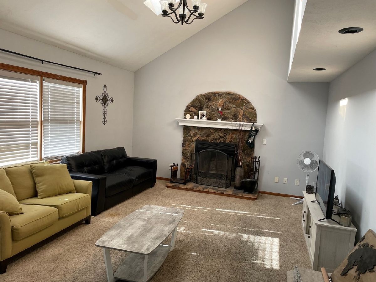 Nice floor plan with tons of space in need of floor coverings, paint and some TLC! Four bedrooms 2 1/2 baths. Open main floor living space, large family room with vaulted ceiling and wood burning fireplace. Kitchen dining combo with tiled floors and a pantry. Large living room could also be formal dining room. Four bedrooms upstairs all are good size. Basement rec room just needs floor covering to finish it off. Fenced backyard.