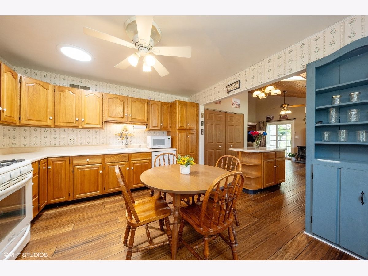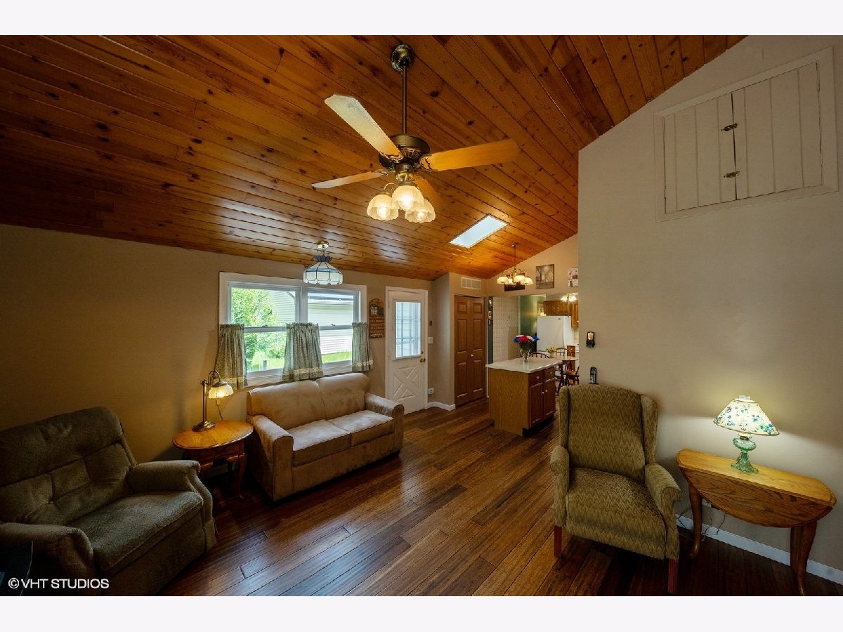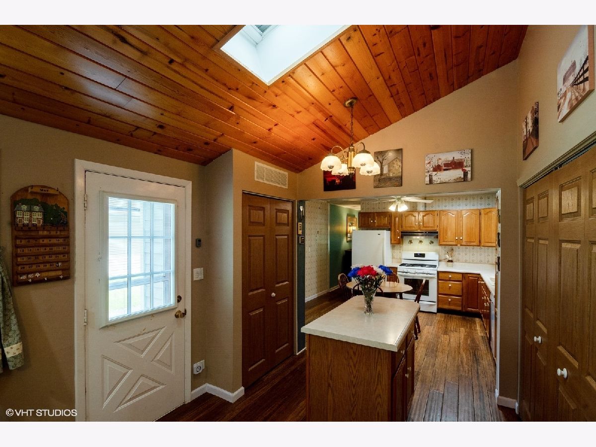Welcome Home! Discover this stunning 4-bedroom, 1.5-bath ranch nestled in the sought-after Kimball Hill neighborhood of Rolling Meadows, now awaiting its new owners. This cherished home, lovingly maintained by its original owner, is ready for someone new to make it their own. As you approach, you'll be greeted by a charming front porch complete with a swing, perfect for enjoying your morning coffee or relaxing in the evening. Inside, a spacious dining room featuring elegant bamboo flooring that extends throughout the main living areas. The kitchen is equipped with an eat-in area and an island that flows into the living room, where vaulted ceilings and skylights create an open and airy atmosphere. This cozy space is ideal for relaxation and gathering with family and friends. The home offers four generously sized bedrooms, providing ample space for family, guests, or a home office. It includes a full bathroom and an additional convenient half-bath. Step outside to a delightful back deck with a canopy, overlooking a large yard that's perfect for gardening and entertaining guests. The 2.5-car garage offers abundant storage space for vehicles, tools, and more.This beautiful home is brimming with potential and ready for your personal touch. Bring your decorating ideas and make this charming residence your own. Roof installed 2023*