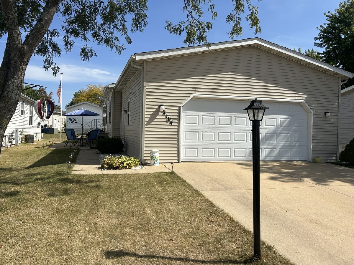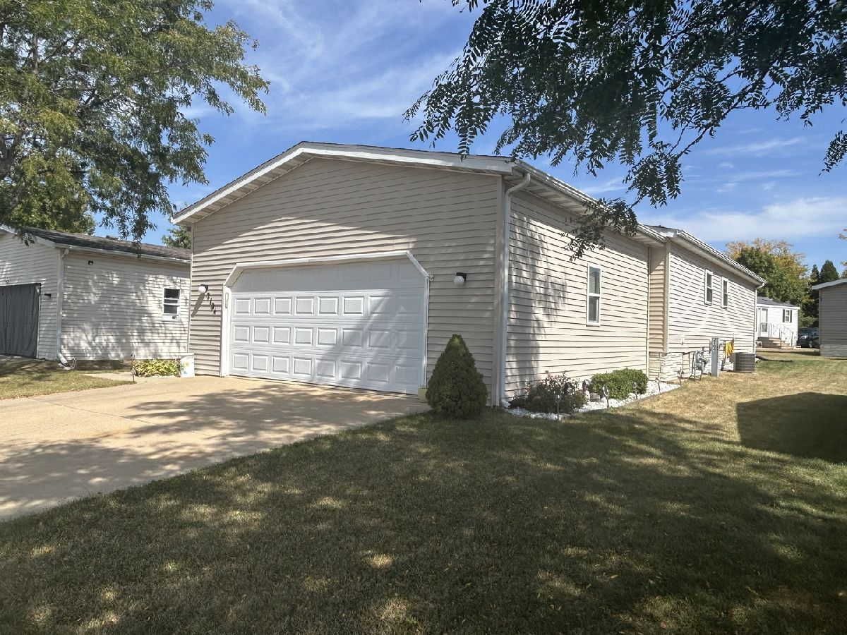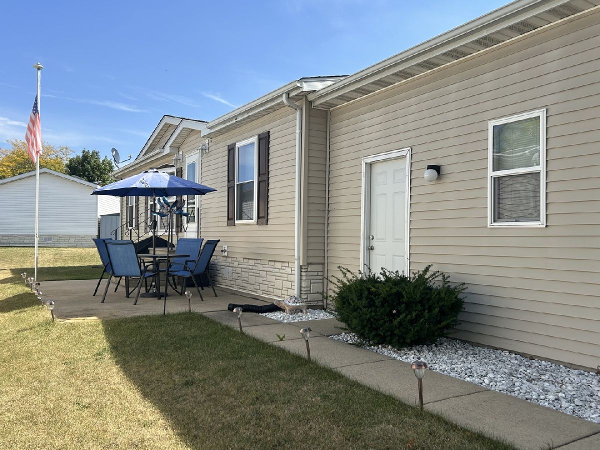 Experience the comfort of home in this move-in ready mobile home. The spacious great room seamlessly opens to a large, eat-in kitchen featuring abundant countertop space-perfect for all your culinary needs. Two bedrooms and a full bath are located on one side, while the primary suite includes a full bath with a step-in shower on the other side. The laundry room comes equipped with a washer, dryer, and water softener. Outside, you'll find a large attached garage complete with a workbench and toolbox,plus a cozy patio for outdoor relaxation. Enjoy the peace of mind of a new roof installed in 2022. Located in Four Seasons Mobile Home Park, where amenities include a pool,playground, and easy access to main roads for your convenience
