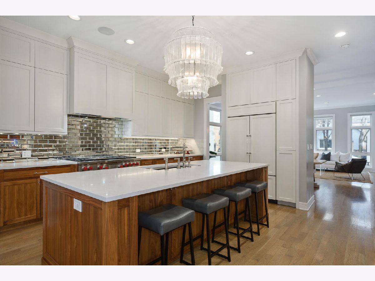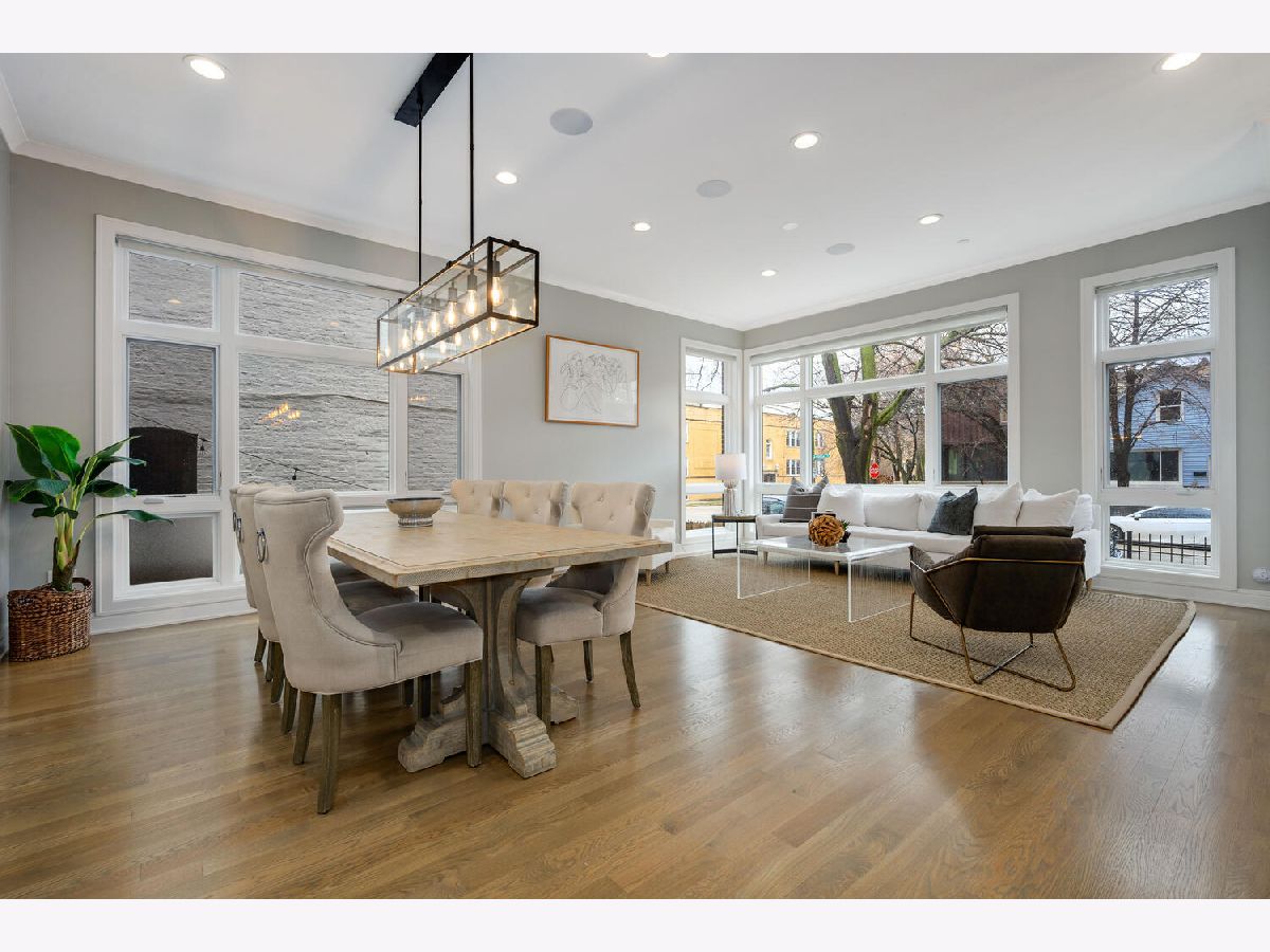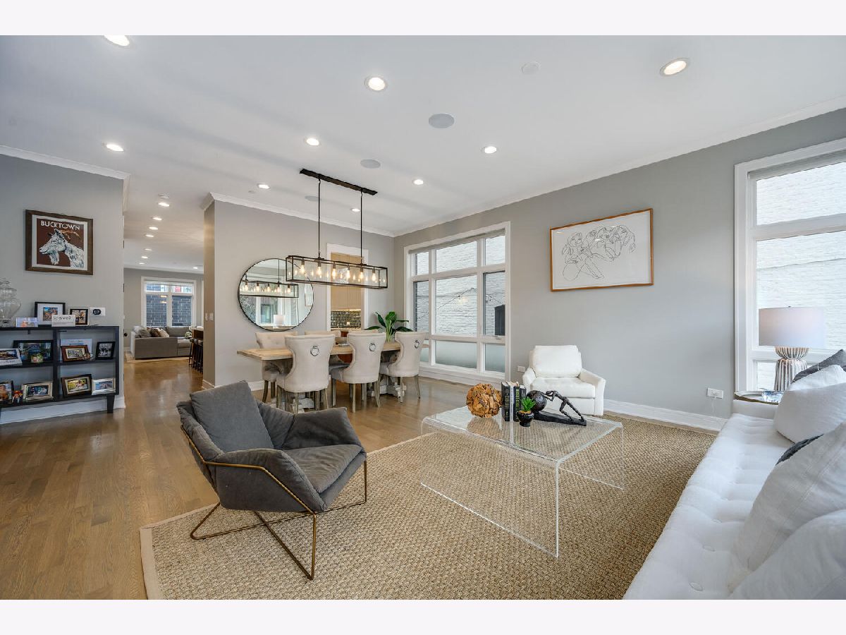 Absolutely Stunning 6 bedroom, 3.2 bath all brick Bucktown Single family home on oversized 30 foot lot is in pristine condition and has loads of designer upgrades. Ideal floorplan offers 4 bedrooms on same level, showcase living room, formal dining room and huge kitchen great room with fireplace, extra bar with wine refrigerator, Subzero, Wolf, Bosch along with chic appointments. Huge lower level with giant recreation room, heated floors, motorized shades, stone baths, jaw dropping king sized primary suite has separate tub, heated stone floors, great shower and extra large professionally outfitted walk in closet. Top Level features pop up with wet bar, beverage refrigerator and custom tricked out rooftop deck has incredible pergola with adjustable shutters., glass partitions, cafe lighting, composite decking material and turf! 2.5 car garage has rooftop turf plus fenced in yard so amazing outdoor space! Pulaski school and Holstein park out right outside the door! Must See!