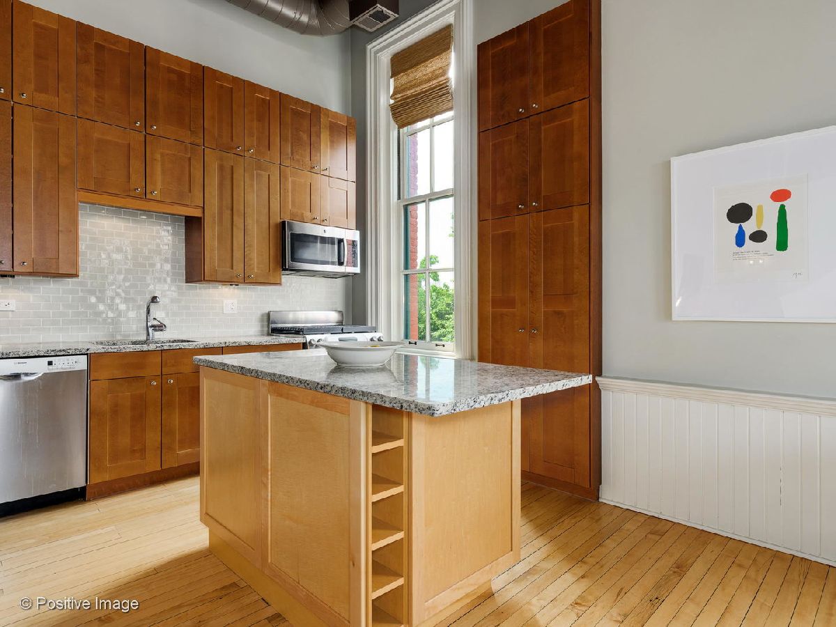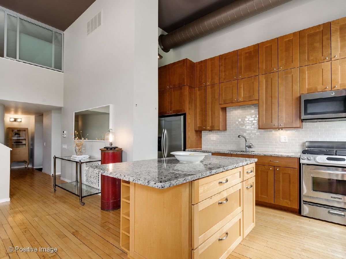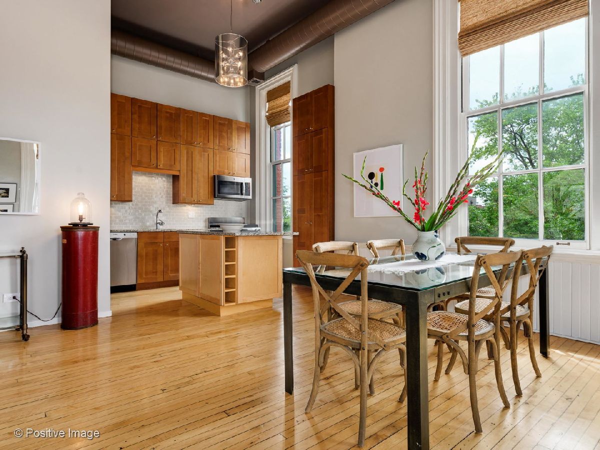 Nestled in the historical landmarked Headley School, this stunning 2 bedroom / 2 bathroom home exudes sophistication and charm. With soaring 15' ceiling heights and large beautiful windows, this corner unit is flooded with natural light and overlooks Magnolia Street, an idyllic, tree-lined Lincoln Park Street. Renovated to perfection, blending vintage details including the original hardwood floors with modern updates like the newer gorgeous kitchen with incredible cabinet space. Coveted floor plan with huge open kitchen, dining and living room fabulous for entertaining or spending a cozy day at home by the wood-burning fireplace. Luxurious master suite with dramatic light fixture, three closets, spa-quality newer bathroom with large shower and private balcony perfect for enjoying morning and afternoon sun. The large second bedroom is lofted upstairs with windows so you can keep it completely enclosed. Lots of space perfect for a bedroom plus office! Second newer full bathroom on the main level. Take the elevator all the way to roof and enjoy the shared roof deck with 360-degree city views. Attached garage parking included. Steps from Oscar Mayer school, Sweet Mandy B's, all of Armitage shopping and dining and the train! Absolutely not to be missed!