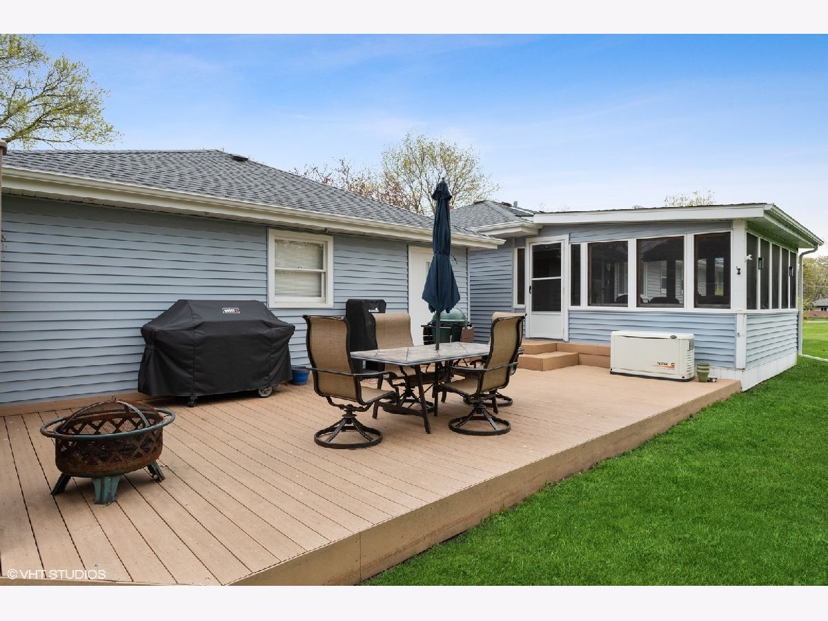 Excellent location, close to shopping and restaurants while still maintaining privacy in unincorporated Palatine. Updated ranch home with refinished hardwood flooring, three bedrooms, 2.5 bathrooms, and finished walkout basement. All newer windows, newer stainless steel appliances, plus refreshed kitchen and master bathroom. Quartz countertops. Retreat to the comfortable screened-in three-season room looking out out on the expansive, almost one acre yard and maintenance free deck. Plenty of storage for all your toys in the 2.5 car garage or the two vast outbuildings with electric. Whole house generator. Highly ranked Lake Zurich School District 95.