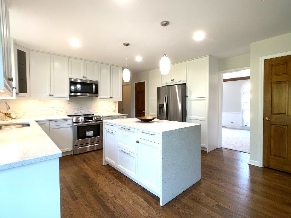 BEAUTIFUL BRICK FRONT HOUSE WITH 4 BEDROOMS AND 2.5 BATH. BRAND NEW REMODELD KITCHEN AND MASTERBATHROOM. KITCHEN W QUARTZ CENTER ISLAND, ALL NEW SS KITCHEN APPLIANCES, WHITE CABINETS. ALL NEW CARPET AND NEW NUTURE COLOR PAINT THROUGH THE HOUSE. NEW FINISHED HARDWOODFLOOR IN FOYER, DINNET, KITCHEN. 1ST FLOOR DEN, FAMILY ROOM WITH COZY FIREPLACE, LARGE MASTER SUITE W SITTING RM AND 2ND FIREPLACE. MASTER BATHROOM WITH SEPRATE SHOWING AND SOAKING TUB, TWO SINK AND TWO WALKIN CLOSETS. NICE VIEW BACKYARD FACING SEVEN GABLES PARK! PAVER BRICK PATIO, DECK, NEW FENCE 2020. CLOSE TO SHOPPING, DINNING, PARK DISTRICT WATER PARK, COMMUNITY CENTER, AND EXPRESSWAY I-88, 355. Excellent school district 200. NEW AC...New washer and Dryer will delivery soon