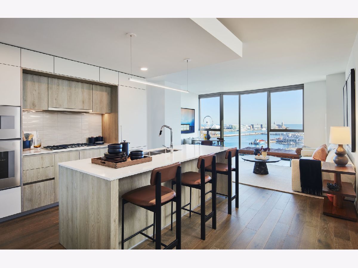 **SOLD BEFORE PRINT**New model residences unveiled in Lakeshore East's newest lakefront building, Cirrus Condominiums, with closings commencing March 2022. Situated at the intersection where Lake Michigan meets the Chicago River and gateway to the City, Cirrus is the crown jewel of Lakeshore East where you can live better with over 48,000 square feet of resort-style wellness amenities adjacent to Chicago's new Cascade Park. Residence 2704 is a split two bedroom, two bathroom home with incredible eastern exposure overlooking Lake Michigan, DuSable Harbor, and Navy Pier through floor to ceiling windows. Entry through a separated foyer with a designated pantry space and opportunity for accentuated dining area in the great room. Interiors are designed by Kaufman O'Neil with wide plank white oak hardwood floors throughout, custom modern Snaidero cabinetry, Dornbracht fixtures, and quartz countertops with decorative tile backsplash. Appliance package includes Gaggenau gas cooktop, integrated cabinet panel refrigerator and wall/speed oven, integrated cabinet panel Bosch dishwasher, Franke stainless steel undermount sink complete with disposal. At Cirrus Condominiums, it's not only about your home space, but rather the lifestyle, with incomparable resort-style wellness amenities incorporating all aspects of nature with greenery, water, fire, and sky. The amenity space on the 41st floor has a spectacular terrace for outdoor entertaining opportunities including the lawn, fire pit, grilling station with adjacent alfresco dining, and rooftop seating. Indoor entertaining includes a chef's table, demonstration kitchen, and a private dining room/wine lounge, all while basking in one-of-a-kind views of Lake Michigan, DuSable Harbor, and of course, fireworks at Navy Pier. Other outdoor amenities include a pool with pool lounge, firepit, and grilling stations overlooking Lake Michigan. A wide variety of indoor active amenities staffed by a wellness concierge include a wet lounge, indoor lap pool with hydrotherapy pool, state of the art fitness center, strength studio, motion studio, and locker rooms with steam rooms. Relax in the planted winter garden conservatory overlooking Cascade Park or utilize the massage room or salon. Kids enjoy their own splash pad and kid's club. There are several work from home spaces, both private and conference rooms available, along with multiple lounge areas. Work on your hobbies in the maker space or play music in the jam room equipped with a baby grand piano, electric drums and string instruments. Watch a movie or the big game in the screening room or challenge friends to billiards, shuffleboard, or simulated sports options available in the sports simulator room. Cirrus is a pet friendly building with indoor dog run and pet spa along with the outdoor Bark Park. There is also a bike room with bike wash that has easy access to the new bike/pedestrian trails out to the lakefront. Cirrus Condominiums, offering one-to-four-bedroom residences, is the crown jewel of the Lakeshore East neighborhood, part of the final four-acre parcel of the Lakeshore East masterplan community. In addition to enjoying multiple everyday conveniences in the neighborhood, residents are moments away from Maggie Daley Park and Millennium Park. Cirrus Condominiums is a LEED Gold Certified building and also Fitwel Certified for Wellness. Parking available for purchase and HOA Fee. Schedule your personal tour today, available either in person or virtual. Matterport link showing the model home, not actual residence.