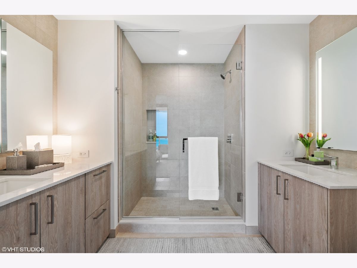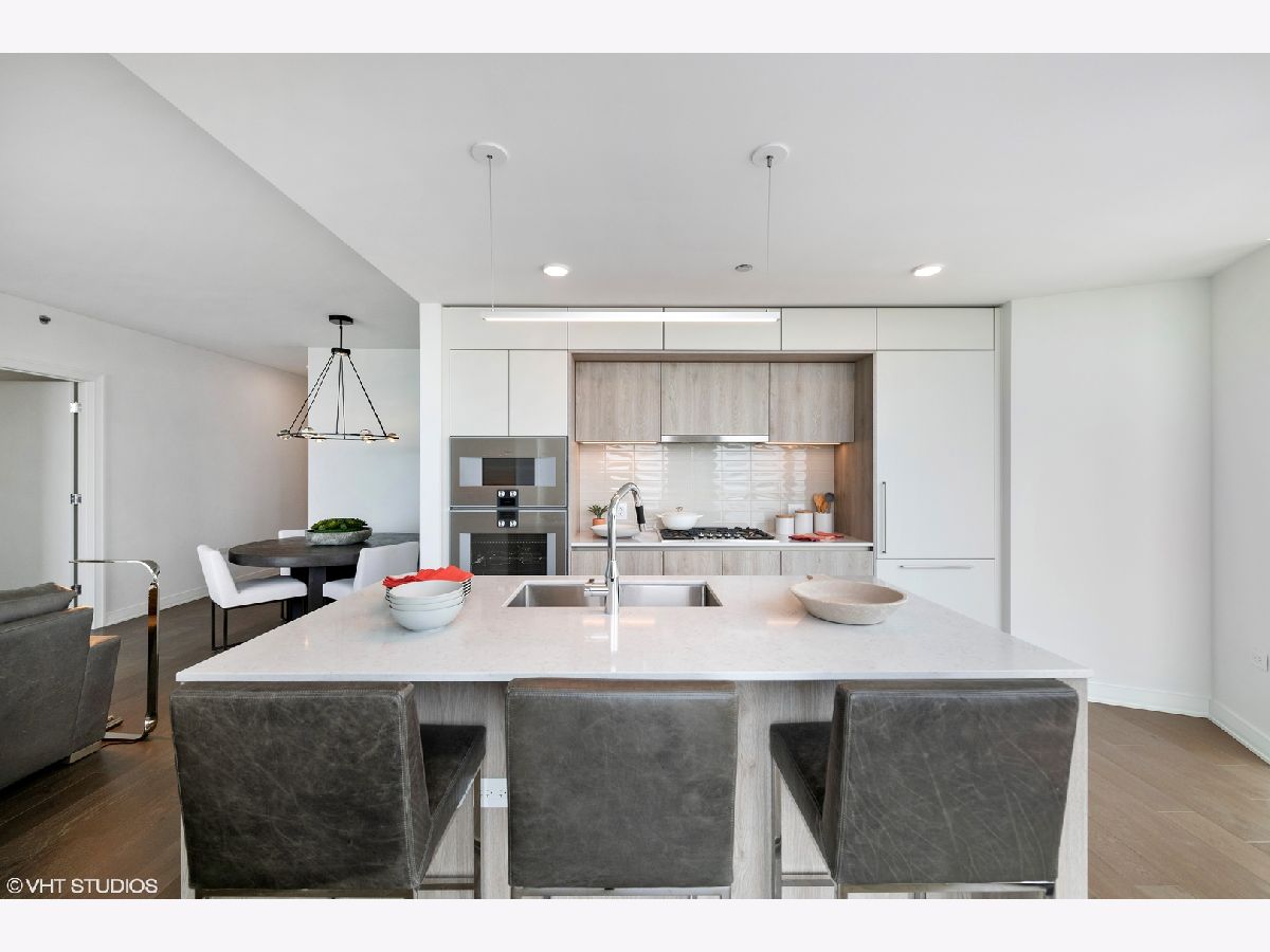 New model residences unveiled in Lakeshore East's newest lakefront building, Cirrus Condominiums. Situated at the intersection where Lake Michigan meets the Chicago River. Cirrus is the crown jewel of Lakeshore East with 48,000 square feet of resort-style amenities. 1208 -- Interiors designed by Kaufman O'Neil include wide-plank, engineered, wood floors throughout, custom imported Italian cabinetry by Snaidero, Dornbracht fixtures, and quartz countertops. Panelized appliance package includes Gaggenau gas cooktop, integrated cabinet panel refrigerator and wall/speed oven, integrated cabinet panel Bosch dishwasher. Incomparable resort-style and wellness amenities including indoor lap pool with hydrotherapy pool, state of the art fitness center, strength studio, motion studio all staffed by a wellness concierge with programmed fitness classes including yoga, Pilates and spin. The amenity space on the 41st floor has a spectacular terrace for outdoor entertaining including the lawn, fire pit, grilling station alfresco dining, and rooftop seating. Indoor entertaining includes a chef's table, demonstration kitchen, and a private dining room/wine lounge, all with in one-of-a-kind views of Lake Michigan, DuSable Harbor, and Navy Pier. Outdoor amenities include a pool with pool lounge, firepit, and grilling stations overlooking Lake Michigan. Kids enjoy their own indoor splash pad and kid's club. There are several work from home spaces, both private and conference rooms available, along with multiple lounge areas. Entertainment amenities include a soundproof jam room, movie in the screening room, billiards, shuffleboard, or simulated golf and sports screen and a maker's room. Cirrus is a pet friendly building with indoor dog run and pet spa along with the outdoor Bark Park. Parking available for purchase and additional HOA fee. *Residence photos shown are from the model unit.