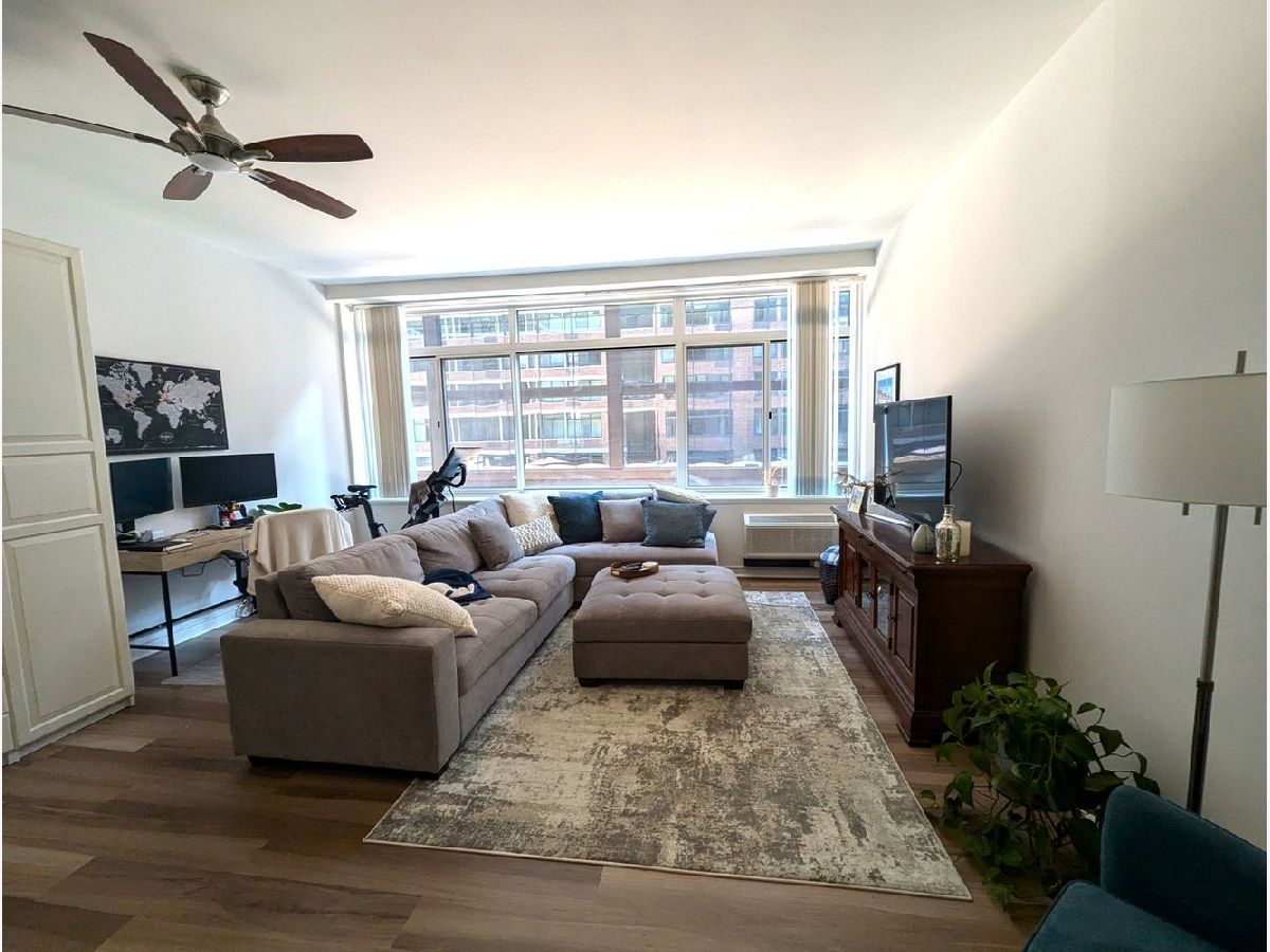Great opportunity to own a very large Streeterville 1 Bedroom condo. Bright and sunny south facing unit with high ceilings, neutral decor and a spacious updated separate kitchen with dishwasher. Newer hardwood style floors throughout. Substantial closet space and a bedroom large enough to fit a king-sized bed. Large white cabinet in the living room is included. Building features 24 hour door staff, receiving room, and fantastic fully equipped gym with indoor pool, sundeck, tennis, basketball and racquetball courts. Within a block of 211 E Ohio are over a dozen restaurants and a Whole Foods grocery. Super convenient location within minutes of Michigan Ave, the lakefront, Northwestern Hospital and Law School. Direct access to all highways, Lake Shore Drive and Rapid Transit make this a perfect location for commuters. Investor and pet friendly. Deeded parking available for 25 Grand. Unit is currently leased until 8/31/25. Allow 48 hours for showings.