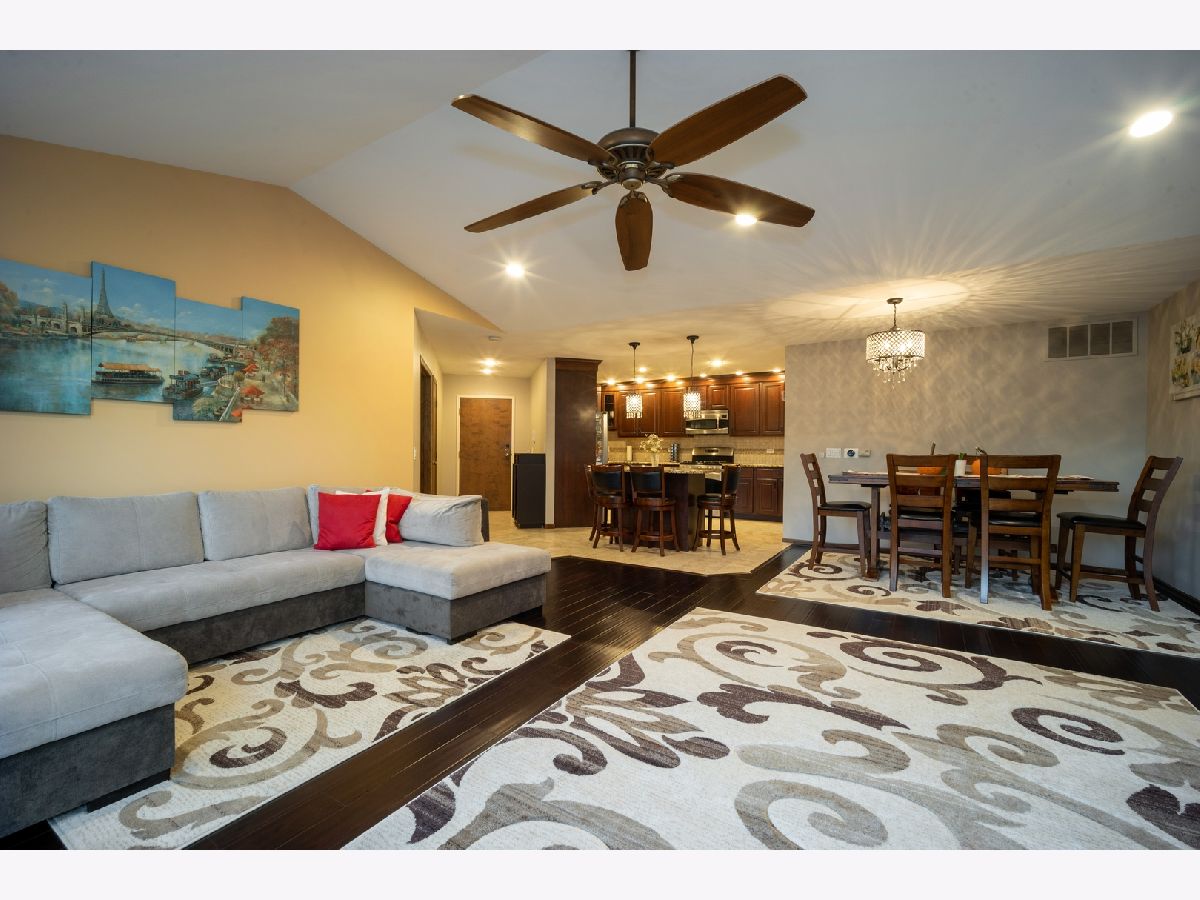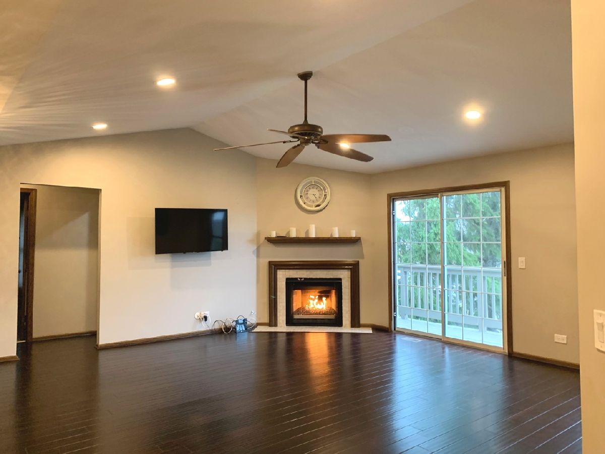 This rare contemporary unit is the largest model in the popular Fox Run subdivision! This Westminster model has 3 bedrooms, 2 full baths, an excellent floor plan, and over 1500sq feet of living space. Spacious living room complete with a gorgeous fireplace, beautiful vaulted ceilings, and hardwood flooring. The lovely balcony off the living room with a view of the trees is a great place to relax. The modern open-concept kitchen features an island and stainless-steel appliances, ceramic flooring, newer cabinets, gleaming countertops, and plenty of seating room to host dinner guests. The HUGE master bedroom features wall-to-wall closet space and a full master bath with a walk-in shower and extended vanity. Convenient in-unit laundry. The attached 1-car garage has lots of storage, plus a long driveway and additional guest parking available. This desired neighborhood will have you nearby highly rated schools, local parks, the forest preserve, a golf course, great shopping and restaurants, and more. For peace of mind 12 month HOME WARRANTY INCLUDED! This opportunity doesn't come often - make this gorgeous condo your home today!