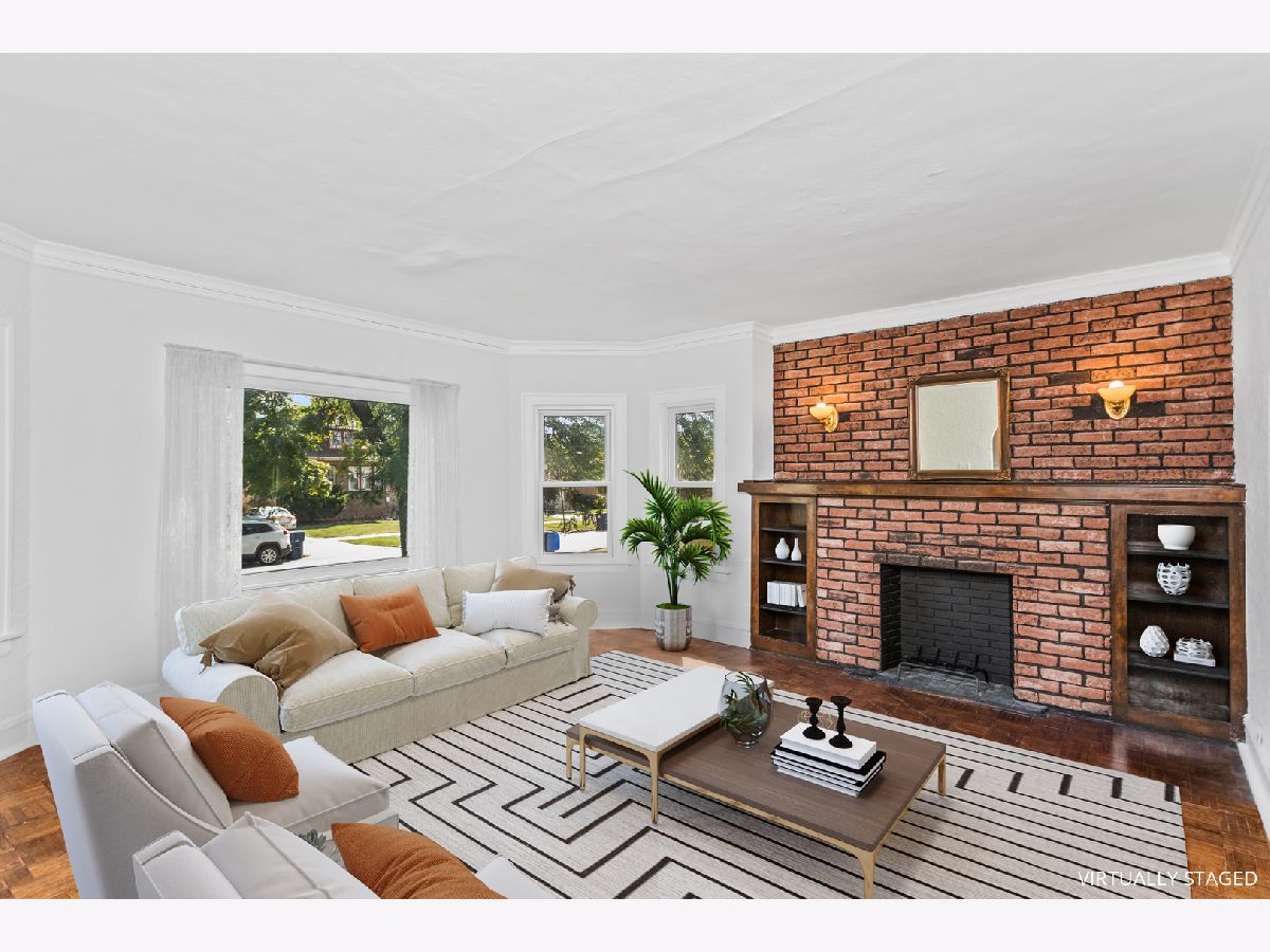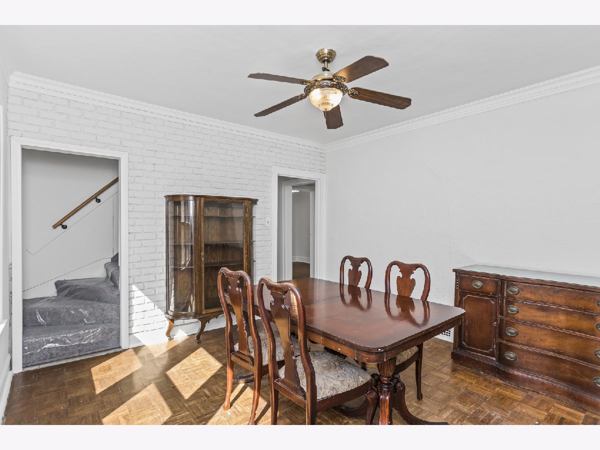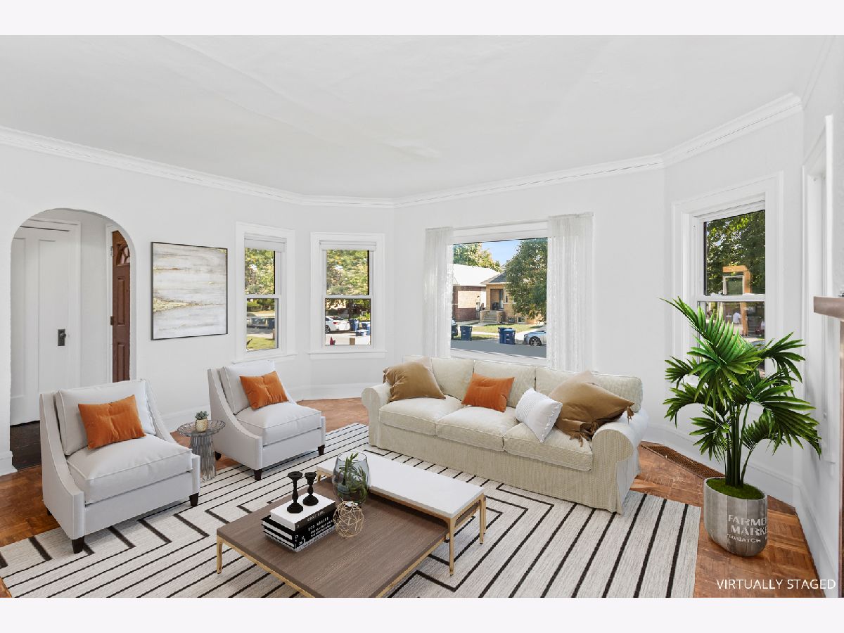 This lovely 4 bed, 1.5 bath brick bungalow sits on a quiet street and has plenty of ample and versatile living space! Freshly painted throughout (2024). The generous living room is filled with natural light and boasts a faux fireplace flanked by original bookcases and an oak mantel. The separate dining room has plenty of space for gatherings. The large kitchen awaits your ideas and has a new ceiling and light fixture (2024). New hardwood floors installed (after the photos were taken) in living room, dining room, hallway and kitchen (2025). The two bedrooms and full bath on the first floor are perfect for guests, bedrooms, and/or a home office. The sunny enclosed back porch has been freshly painted and overlooks the back yard. Newly carpeted stairs take you to the second floor with two more large bedrooms, each with generous closets and cozy new carpet (2024). Another half bath nestled between the bedrooms has new tile flooring and completes this level of the home. The full high-and-dry basement has been painted (floor, ceiling, and walls) and the water heater is new as well (2024). Updates to electrical service (2025). One car garage and gated driveway provides parking for several cars. All Maywood inspection items will be completed prior to closing-only exterior paint is left and will be done as soon as weather permits.