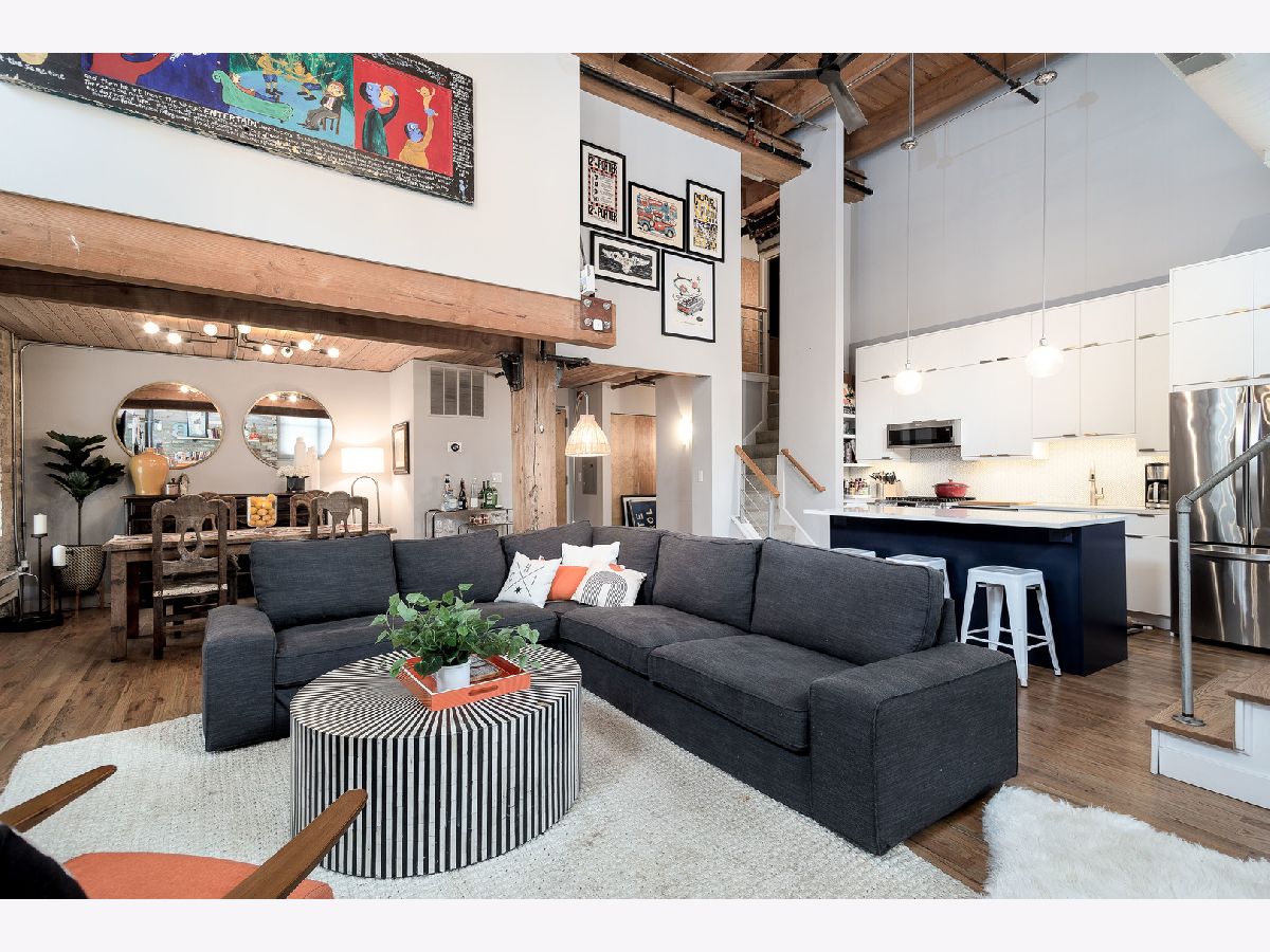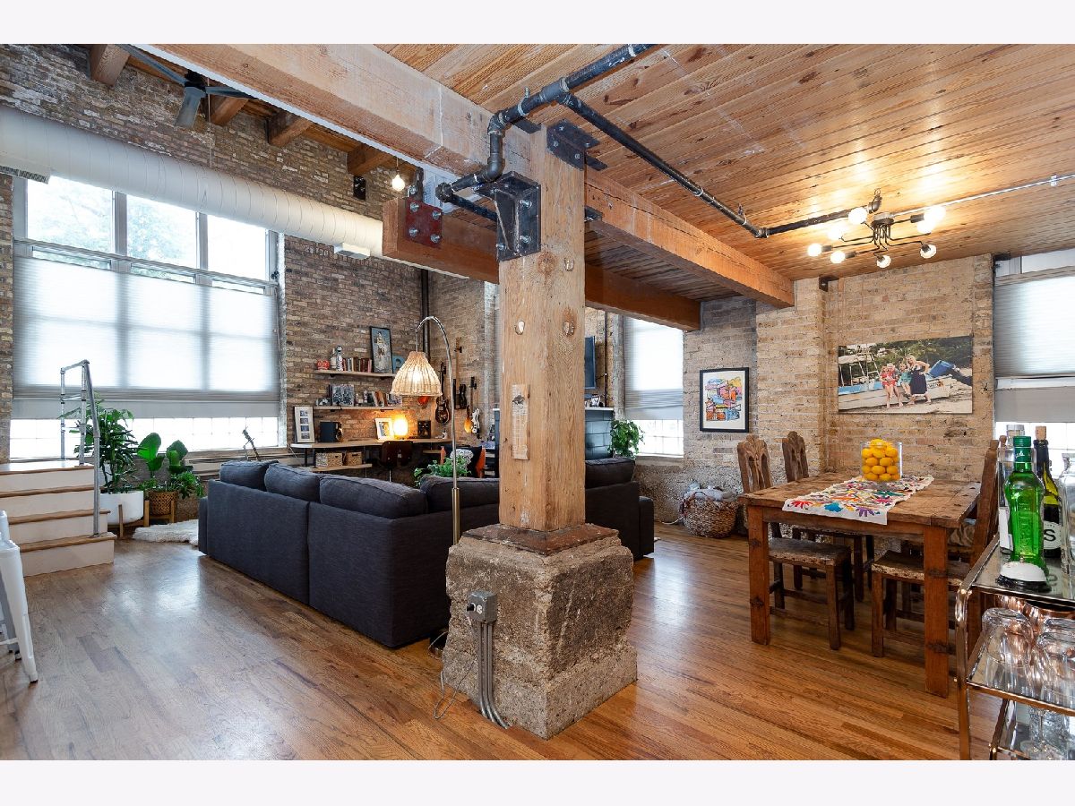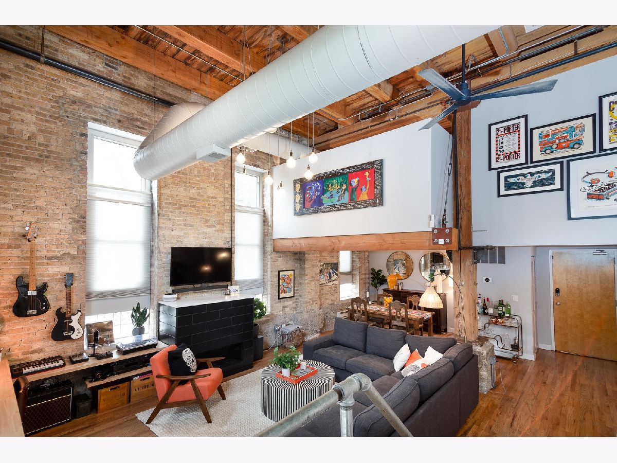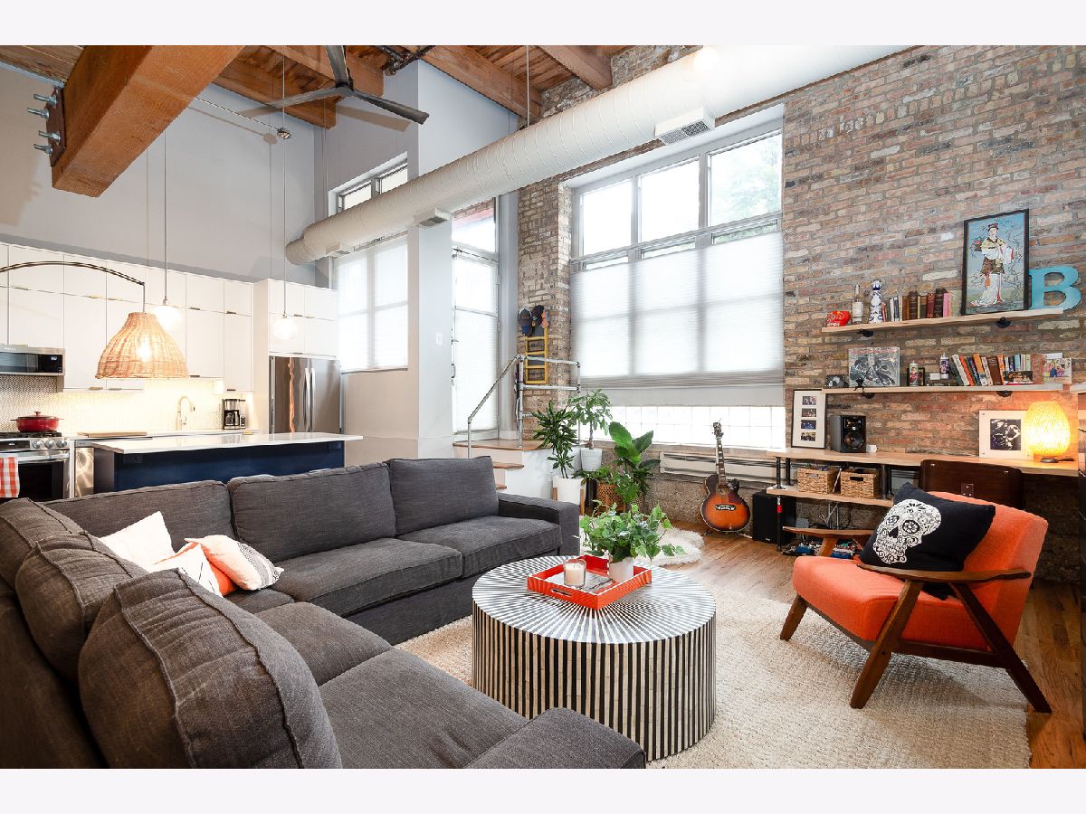 Prepare to fall in love with this incredible timber and exposed brick loft located on a beautiful tree-lined street in the heart of Bucktown just steps away from the 606. This corner duplex, with an open floorplan, features soaring 18-foot ceilings with ascending windows, chef's kitchen with stainless steel appliances, quartz countertops, backsplash and island. The sun-drenched, spacious living/dining area includes remote controlled modern fireplace and custom lighting. The private patio is perfect for grilling and entertaining. Fully enclosed second bedroom on main level with custom bookshelves/desk and updated bathroom. Primary bedroom on second level with abundant closet space and bathroom with double vanity, soaker tub and separate shower. Additional features include refinished hardwood floors, in-unit washer/dryer and garage parking included in price. Fantastic location with easy access to Blue-Line, expressway, 606 trail, parks, and all the shops, restaurants and nightlife Bucktown has to offer.