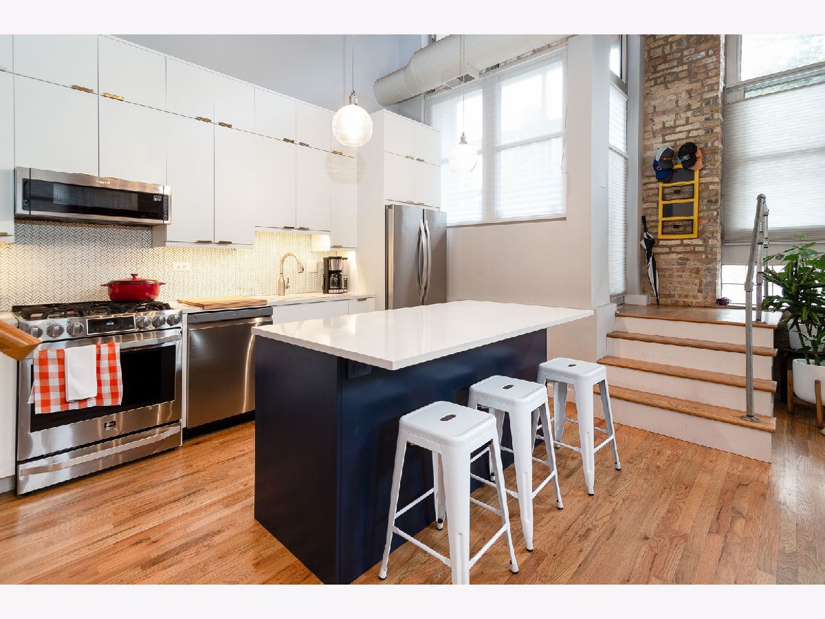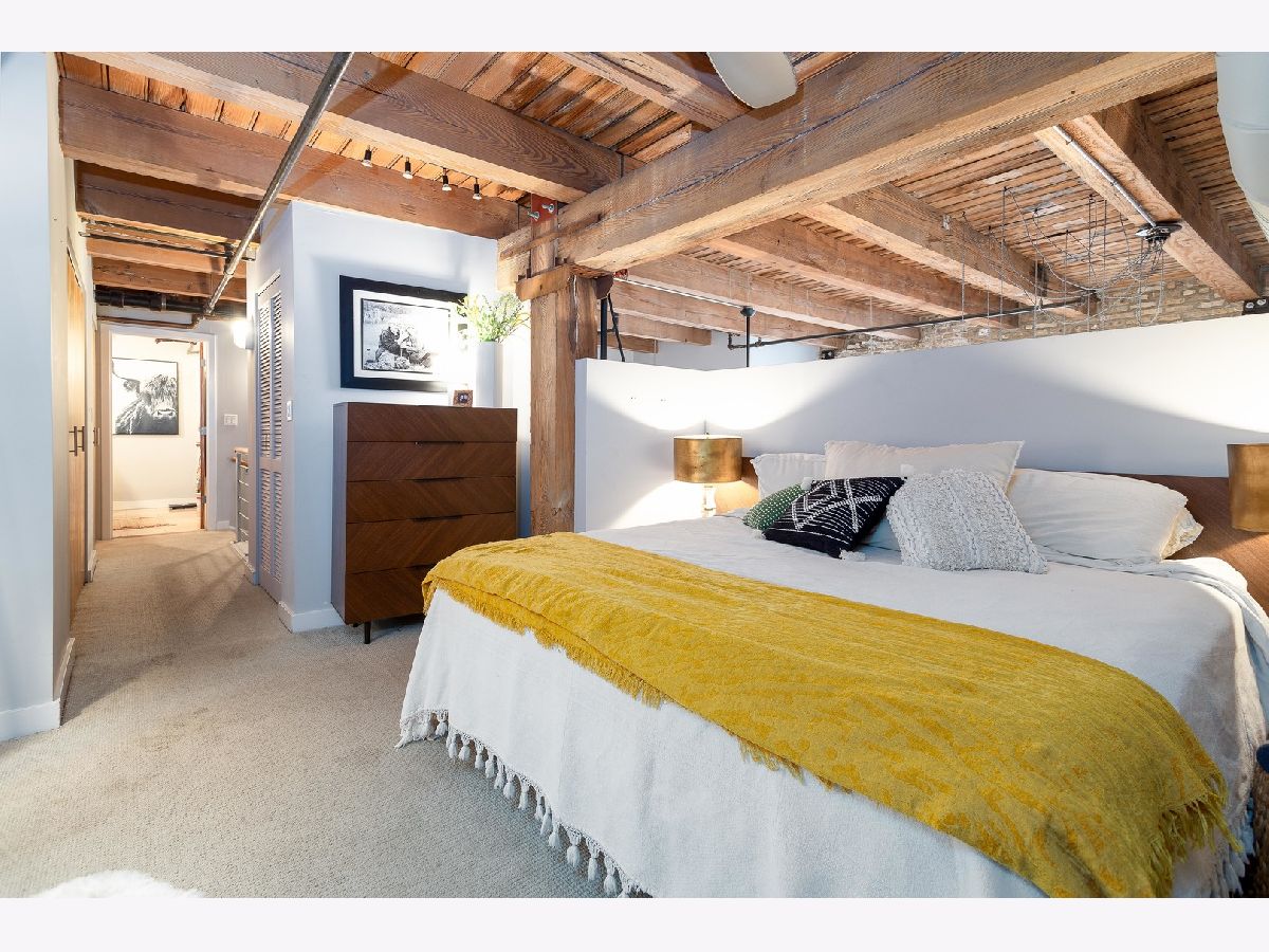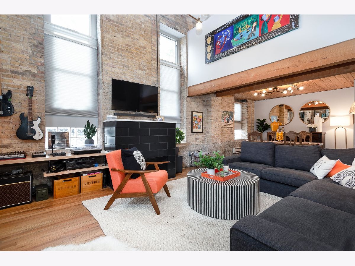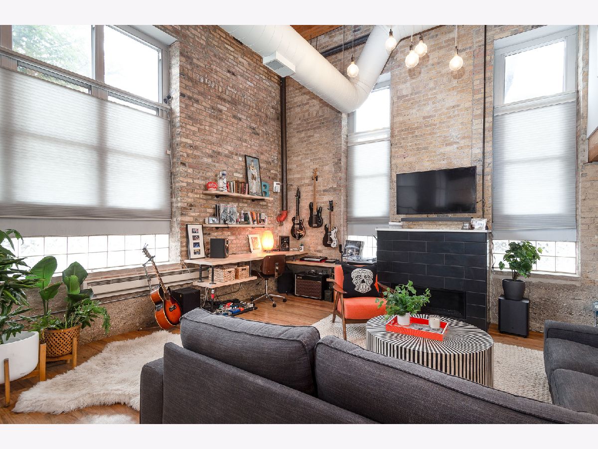 Prepare to fall in love with this incredible timber and exposed brick loft located on a beautiful tree-lined street in the heart of Bucktown just steps away from the 606. This corner duplex, with an open floorplan, features soaring 18-foot ceilings with ascending windows, chef's kitchen with stainless steel appliances, quartz countertops, backsplash and island. The sun-drenched, spacious living/dining area includes remote controlled modern fireplace and custom lighting. The private patio is perfect for grilling and entertaining. Fully enclosed second bedroom on main level with custom bookshelves/desk and updated bathroom. Primary bedroom on second level with abundant closet space and bathroom with double vanity, soaker tub and separate shower. Additional features include refinished hardwood floors, in-unit washer/dryer and garage parking included in price. Fantastic location with easy access to Blue-Line, expressway, 606 trail, parks, and all the shops, restaurants and nightlife Bucktown has to offer.