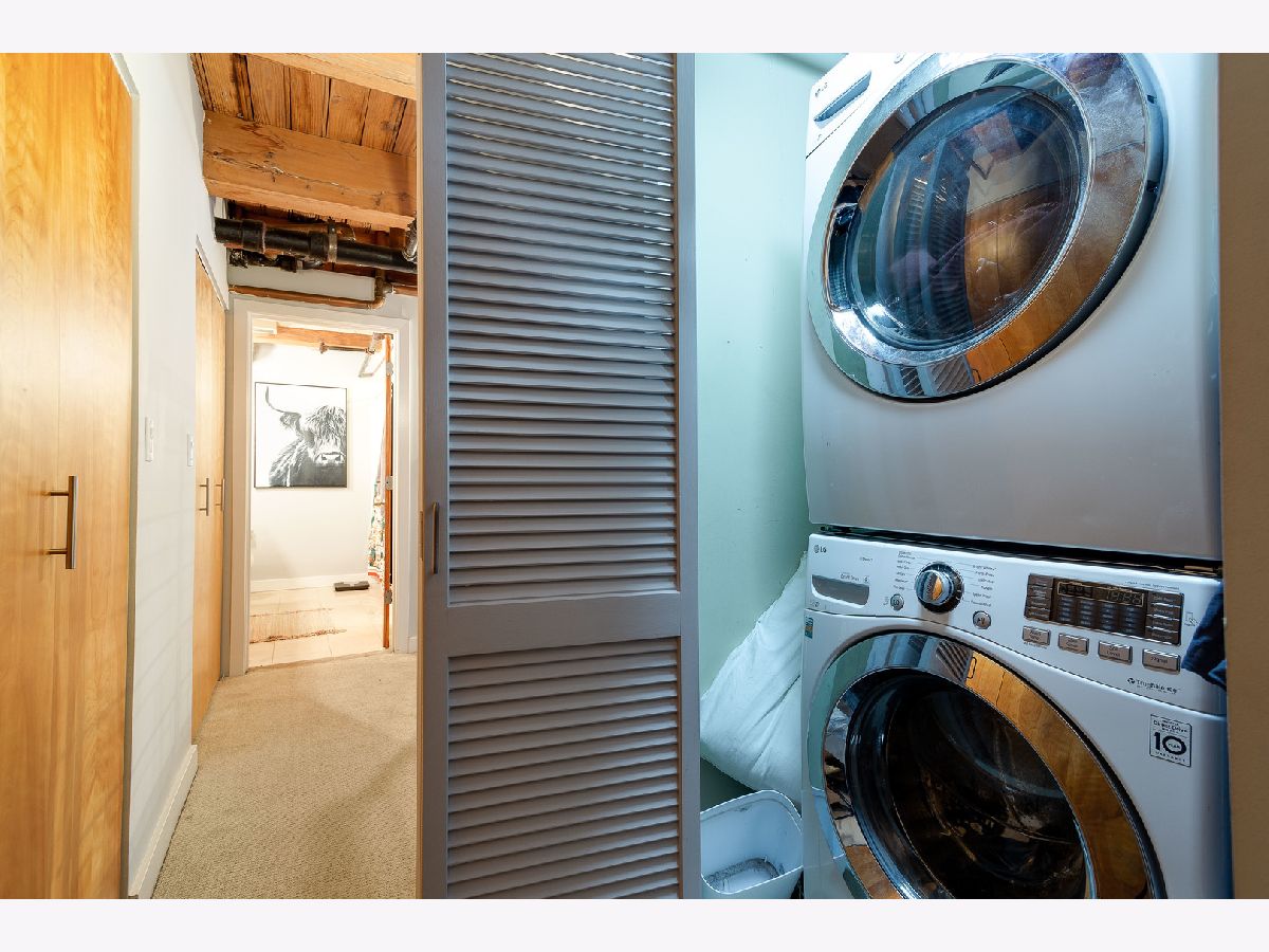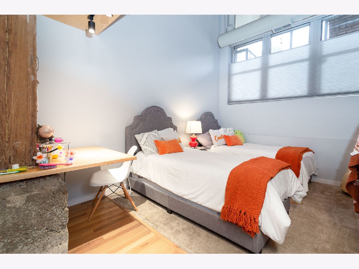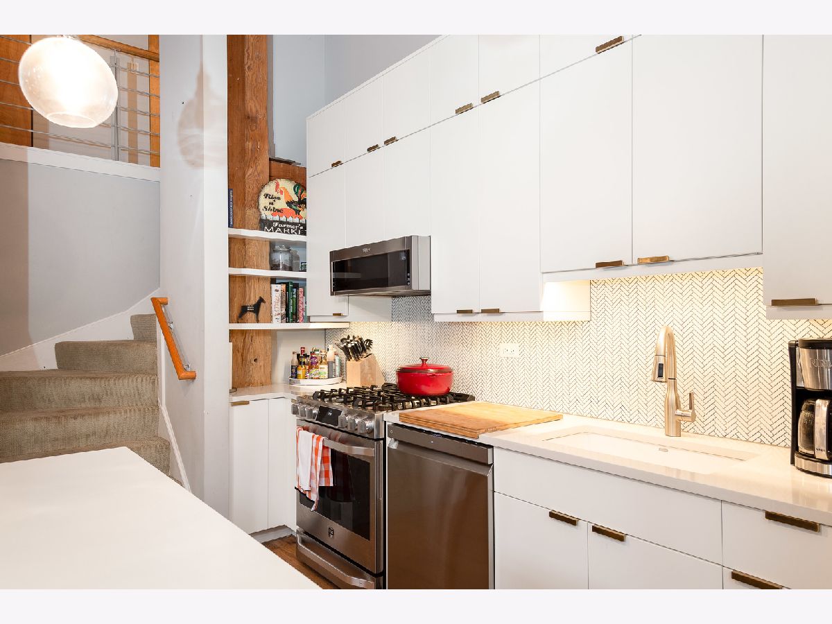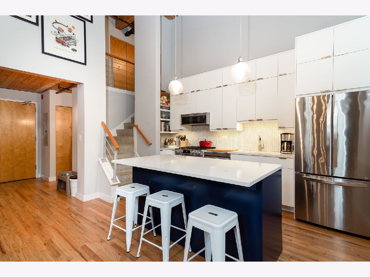 Prepare to fall in love with this incredible timber and exposed brick loft located on a beautiful tree-lined street in the heart of Bucktown just steps away from the 606. This corner duplex, with an open floorplan, features soaring 18-foot ceilings with ascending windows, chef's kitchen with stainless steel appliances, quartz countertops, backsplash and island. The sun-drenched, spacious living/dining area includes remote controlled modern fireplace and custom lighting. The private patio is perfect for grilling and entertaining. Fully enclosed second bedroom on main level with custom bookshelves/desk and updated bathroom. Primary bedroom on second level with abundant closet space and bathroom with double vanity, soaker tub and separate shower. Additional features include refinished hardwood floors, in-unit washer/dryer and garage parking included in price. Fantastic location with easy access to Blue-Line, expressway, 606 trail, parks, and all the shops, restaurants and nightlife Bucktown has to offer.