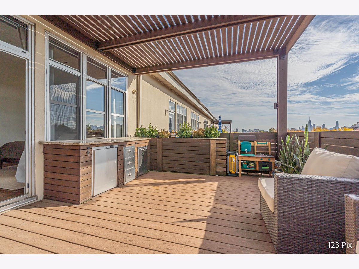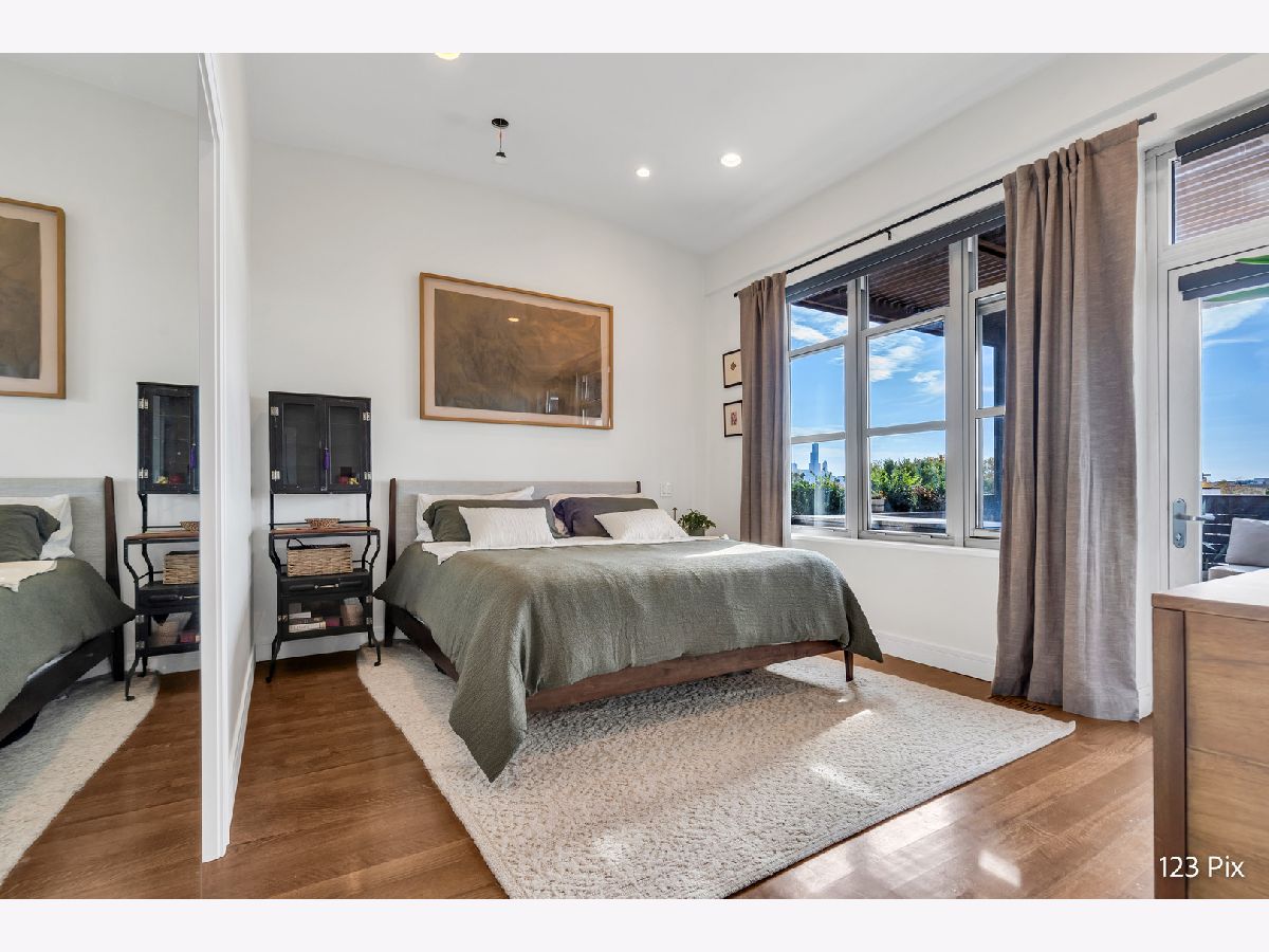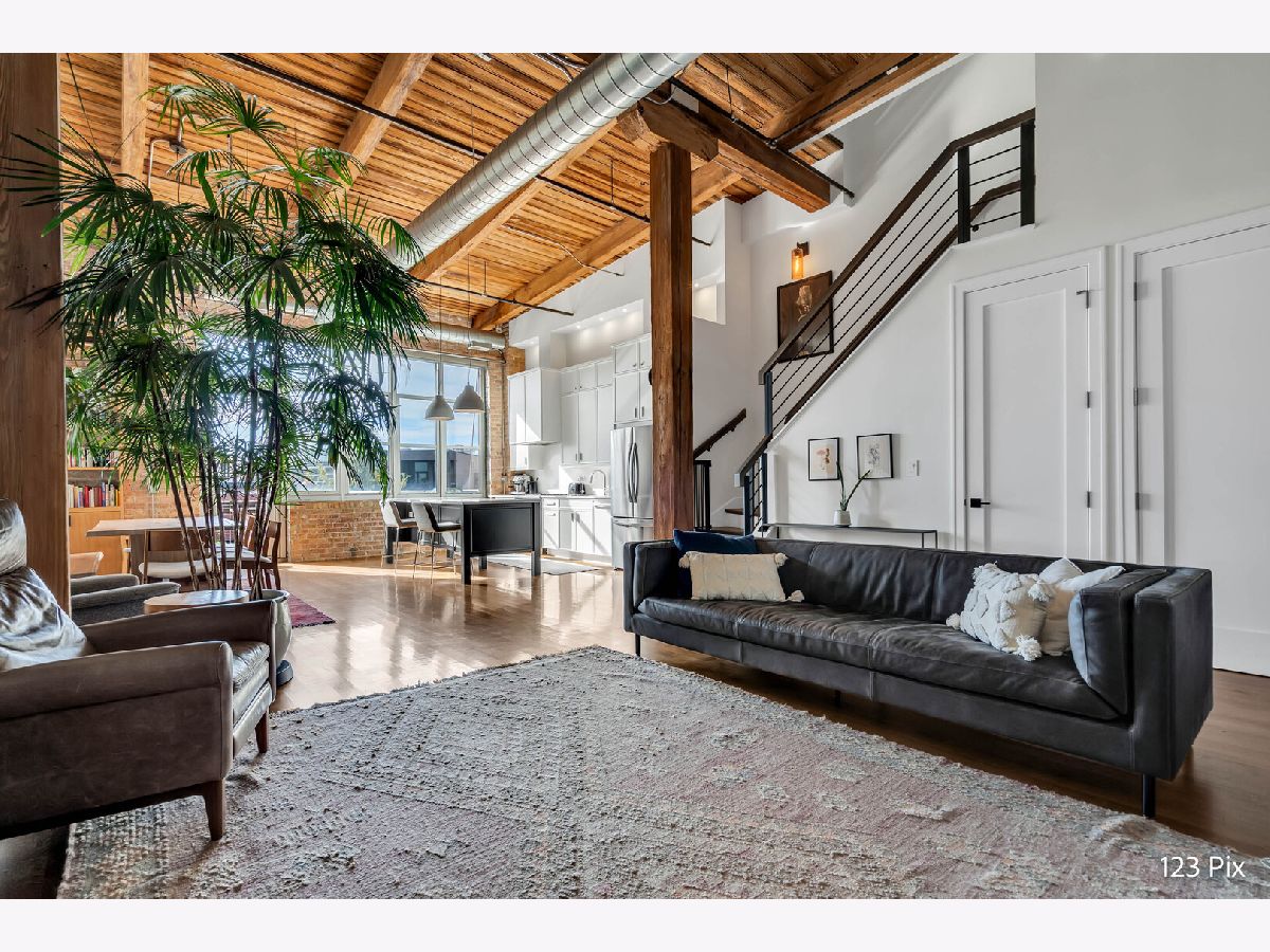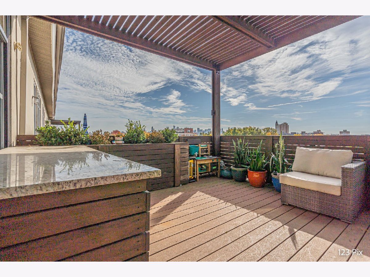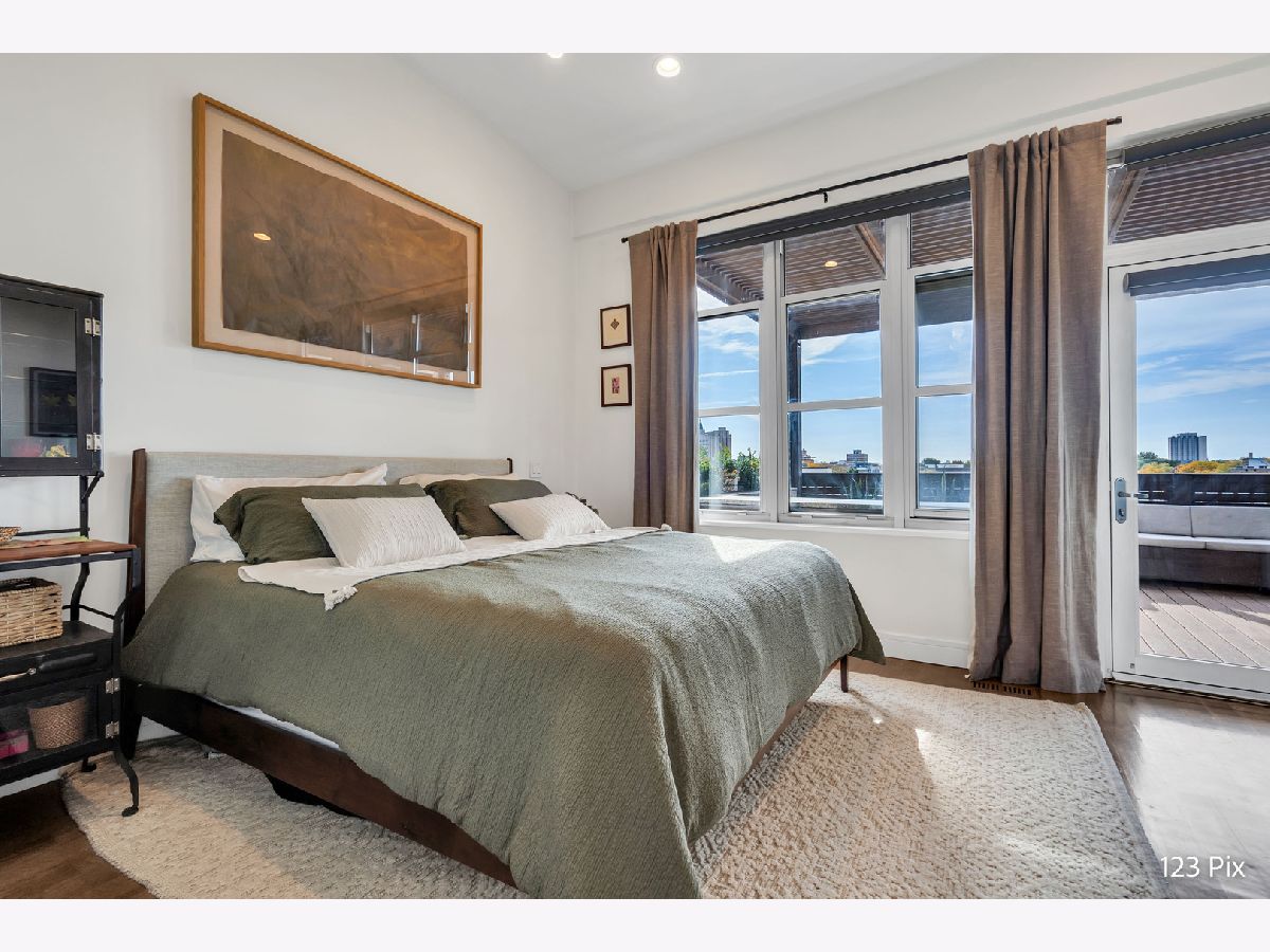 Welcome to a stunning, fully renovated two-story penthouse loft in the heart of Bucktown. The open-concept main level features 18-foot ceilings, douglas fir beams, new white oak hardwood floors, and huge southern facing windows that flood the space with natural light. The kitchen has newer stainless steel appliances, tons of cabinet space, and a large island for cooking and entertaining. The dining, kitchen, and living area leads to a private balcony directly over the 606 trail and has a gas grill / seating area / planters. In addition, the first floor has a built-in bookshelf, walk-in pantry, large closet, bathroom, and dedicated work from home space. On the second floor, there are two light-filled bedrooms. Each has a bathroom and walk-in closet.The master bath is en-suite with a freestanding tub, Italian marble shower, custom-built dual-vanity with Grohe fixtures, inset medicine cabinets, heated floors, and heated towel rack. The hallway has a third walk-in closet, deep linen closet, and laundry area. Lastly, step outside to the furnished rooftop patio with a panoramic view of Chicago. Additional features include an indoor parking spot, elevator, shared (building) guest parking, and ample free outdoor parking (no more driving around looking for spots!). The building is steps from Damen Avenue, Wicker Park, and Logan Square, with easy access to a variety of restaurants, shops, grocery, daycares, and parks/playgrounds.