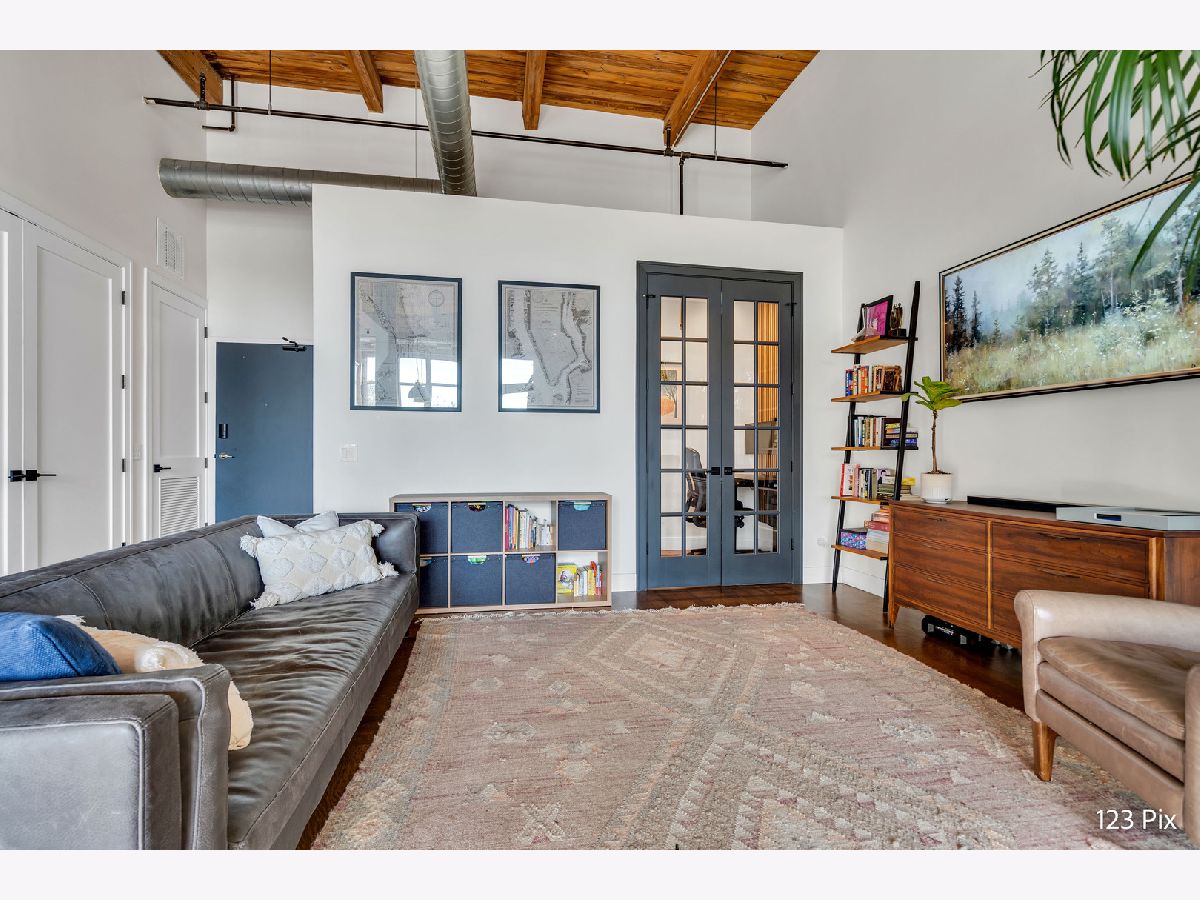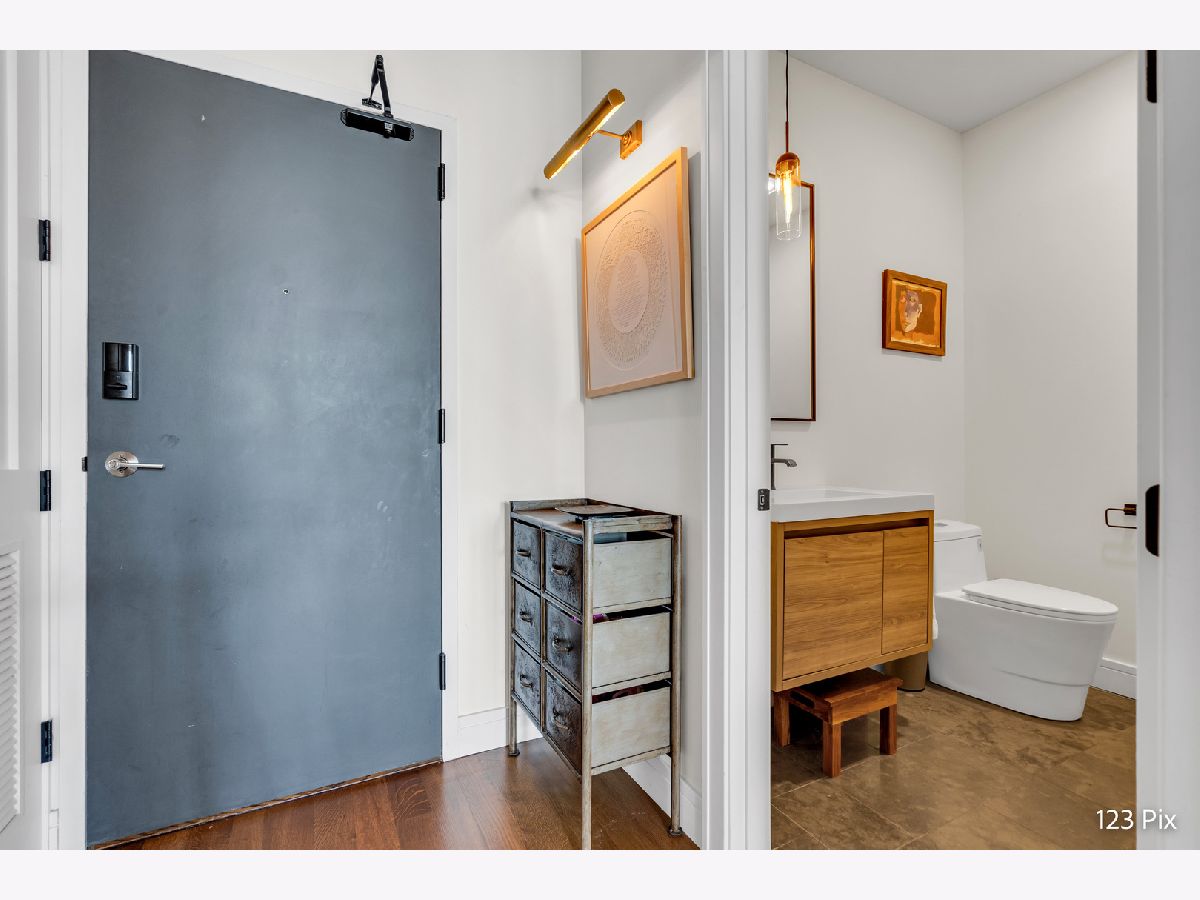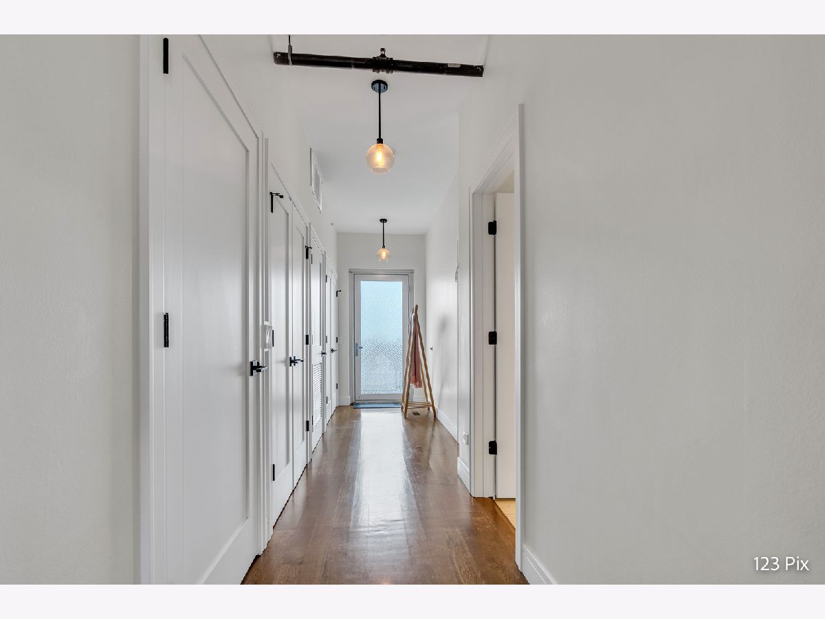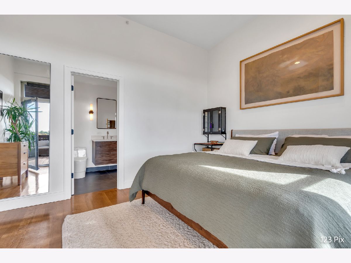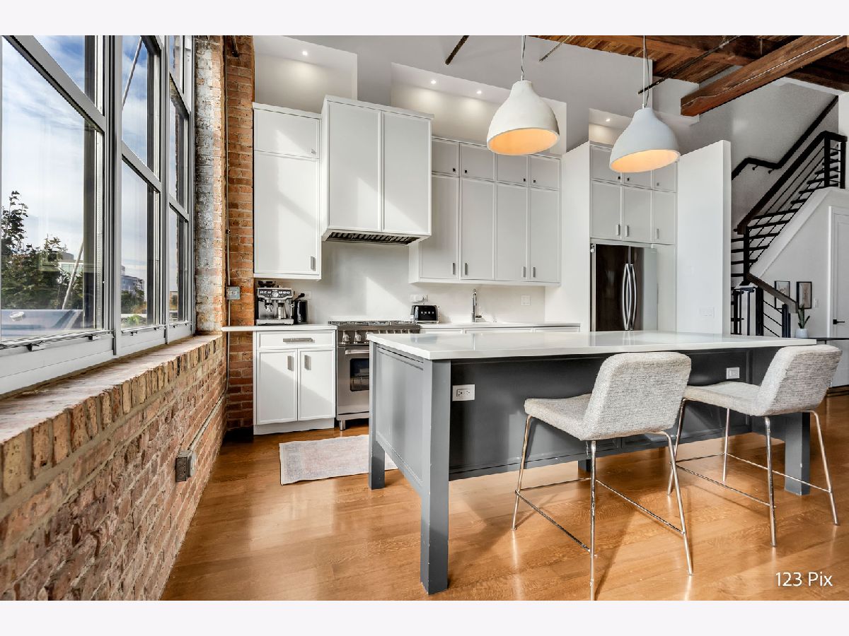 Welcome to a stunning, fully renovated two-story penthouse loft in the heart of Bucktown. The open-concept main level features 18-foot ceilings, douglas fir beams, new white oak hardwood floors, and huge southern facing windows that flood the space with natural light. The kitchen has newer stainless steel appliances, tons of cabinet space, and a large island for cooking and entertaining. The dining, kitchen, and living area leads to a private balcony directly over the 606 trail and has a gas grill / seating area / planters. In addition, the first floor has a built-in bookshelf, walk-in pantry, large closet, bathroom, and dedicated work from home space. On the second floor, there are two light-filled bedrooms. Each has a bathroom and walk-in closet.The master bath is en-suite with a freestanding tub, Italian marble shower, custom-built dual-vanity with Grohe fixtures, inset medicine cabinets, heated floors, and heated towel rack. The hallway has a third walk-in closet, deep linen closet, and laundry area. Lastly, step outside to the furnished rooftop patio with a panoramic view of Chicago. Additional features include an indoor parking spot, elevator, shared (building) guest parking, and ample free outdoor parking (no more driving around looking for spots!). The building is steps from Damen Avenue, Wicker Park, and Logan Square, with easy access to a variety of restaurants, shops, grocery, daycares, and parks/playgrounds.