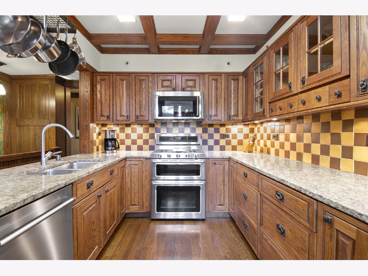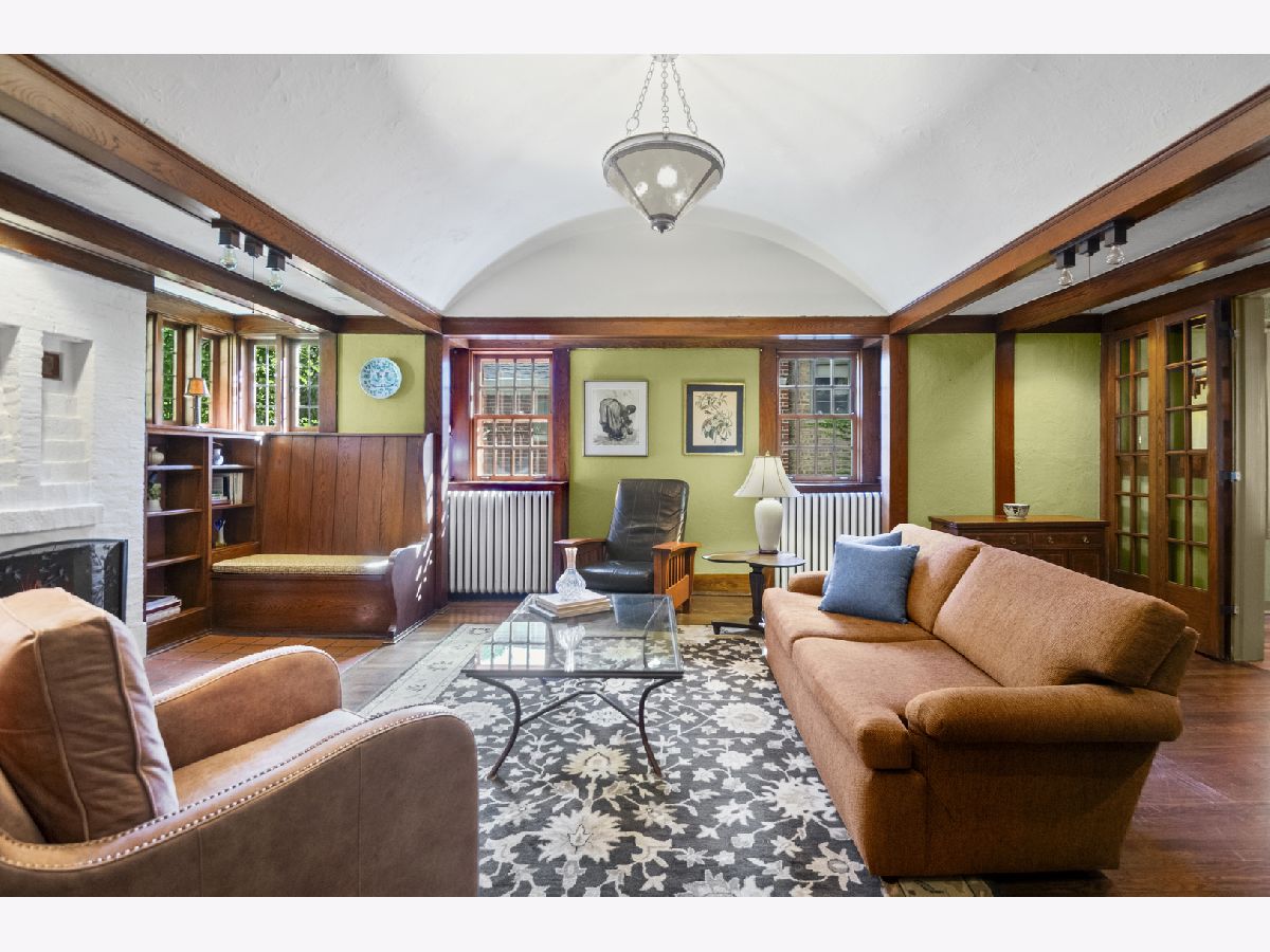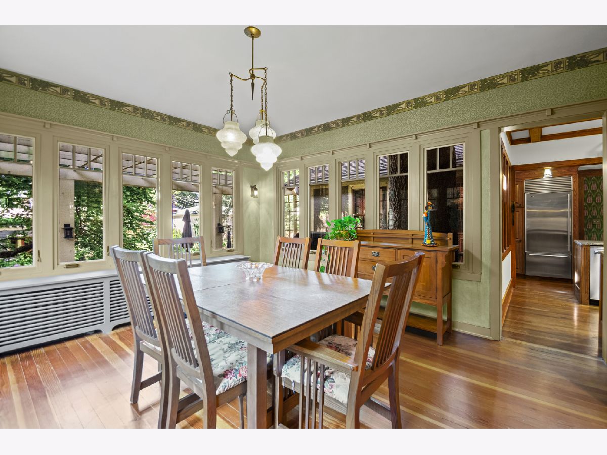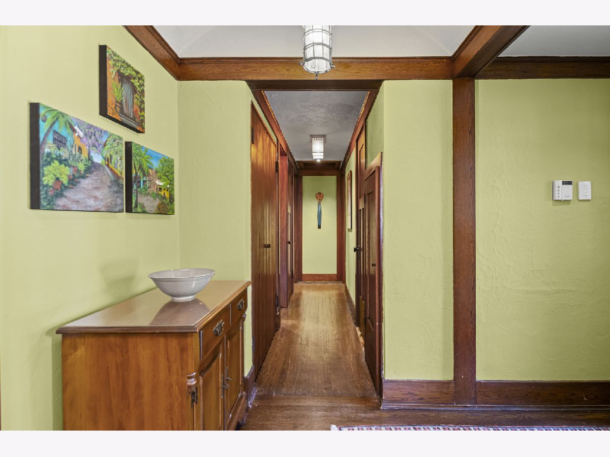 This rare 1911 Craftsman-Style 3 BR / 2 BA bungalow is a true gem in West Ridge, unlike anything else on the Far North Side. Built around a towering red oak tree, this U-shaped stucco home features striking architectural details by renowned architect George W. Maher. Post-and-beam entry porch opens to a barrel-vaulted foyer and living room that make a dramatic first impression with natural oak woodwork, original leaded glass windows and an inglenook gas fireplace with built-in oak benches and bookcases. Separated by French doors, the bright dining room is surrounded on three sides by casement windows, filling the space with abundant natural light. Renovated kitchen offers oak cabinetry with glass-front doors, granite countertops, and a square tile backsplash, complemented by Arts and Crafts inspired pendant lighting and decorative borders, along with a Sub-Zero refrigerator and SS appliances (oven, dishwasher, microwave less than 5 years old). This home was made for entertaining! A back door off the kitchen opens to a generously sized Trex deck (new in 2023) and a beautifully landscaped backyard. The spacious outdoor area features a brick paver patio, tranquil pond, potting shed and a two-car garage - perfect for gatherings or everyday enjoyment. All three bedrooms are generously sized and conveniently located on the first floor, along with a full bathroom - renovated in 2010 to complement the home's vintage charm with the original tub, pedestal sink, classic subway tile, and sconces. Light-filled lower level features an expansive family room w/decorative fireplace and built-in bookshelves (perfect as a home office or additional bedroom), full bath with walk-in shower, large laundry room with chute and ample storage. All big projects are already done for you - roof (2018), water heater (2021), boiler and central air (2022). Only minutes away from Indian Boundary Park, local grocery stores, restaurants, CTA and just 5 blocks to the Metra. This home is meticulously maintained and thoughtfully designed, this remarkable opportunity should not be missed!