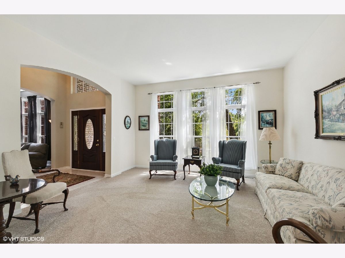 SELLER is willing to pay $5,000 towards Buyer's CLOSING COSTS!! Introducing a stunning brick home that embodies the epitome of your desires-an oasis nestled among mature trees in a serene cul-de-sac. This 3600 square foot masterpiece exudes quality craftsmanship and opulent details on every level. Prepare to be captivated by the dramatic 2-story entrance, complemented by a breathtaking front door that sets the tone for what lies within. Curved archways and pillars elegantly separate the formal living and dining rooms, creating an ambiance of refined sophistication. A first-floor den offers an ideal space for a home office, ensuring both functionality and comfort. Prepare to be utterly awestruck by the updated kitchen-a culinary haven that surpasses expectations. 42" custom cabinets, accentuated by under-cabinet lighting, gracefully meet granite countertops and a grand island with a breakfast bar. With an eat-in area and soaring ceilings, this kitchen effortlessly transitions into the oversized family room. Here, natural light streams through large arched windows flanking two sets of French doors, which lead to a private backyard retreat. Custom built-ins, a gas/woodburning fireplace, and newly finished hardwood floors crown this space in elegant allure. Searching for a first-floor primary suite or the perfect in-law arrangement? Look no further-this home offers not one, but two primary suites. The first-floor suite boasts dramatic ceilings, a walk-in closet with thoughtfully designed built-ins, and a luxurious bath. Dual vanity, soaker tub, separate shower, and neutral decor create an indulgent sanctuary. A first-floor laundry room boasts 42" cabinets for additional storage and a sink for your convenience. Ascend the open curved staircase to discover the allure of the second floor-a grand retreat poised as the second Master suite. Adorned with an elegant gas fireplace and tray ceilings, this suite features a generously sized dream closet complete with custom built-in organization. Luxuriate in another lavish bath, featuring a jacuzzi tub as the focal point between dual vanity sinks. A separate shower with a seat and vaulted ceiling, accented by relaxing lighting, completes this heavenly escape. The 3rd and 4th bedrooms offer ample space and share a neutral hall bath with a dual vanity and tub/shower combo. For those seeking additional space, venture down to the full, unfinished basement with a roughed-in bath, providing ample storage and awaiting your personal touch. A host of new or newer updates envelop the home: Roof (2019), Zoned Central Air (2018), Zoned furnace (2017), 75-gallon hot water heater (2016), brand new carpeting throughout the home in July 2023, and a fresh coat of neutral-colored paint adorning every room. Beyond the interior, a 3-car finished side load garage, private flat backyard, and much more await. Don't miss this opportunity to transform this house into your paradise. Seize the moment and make this extraordinary home yours today!