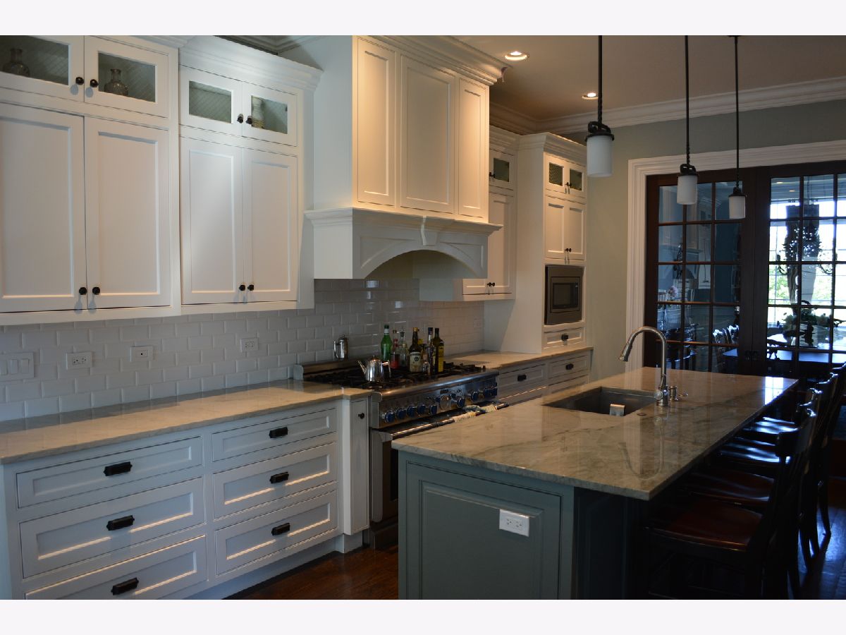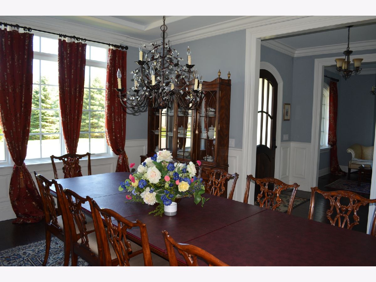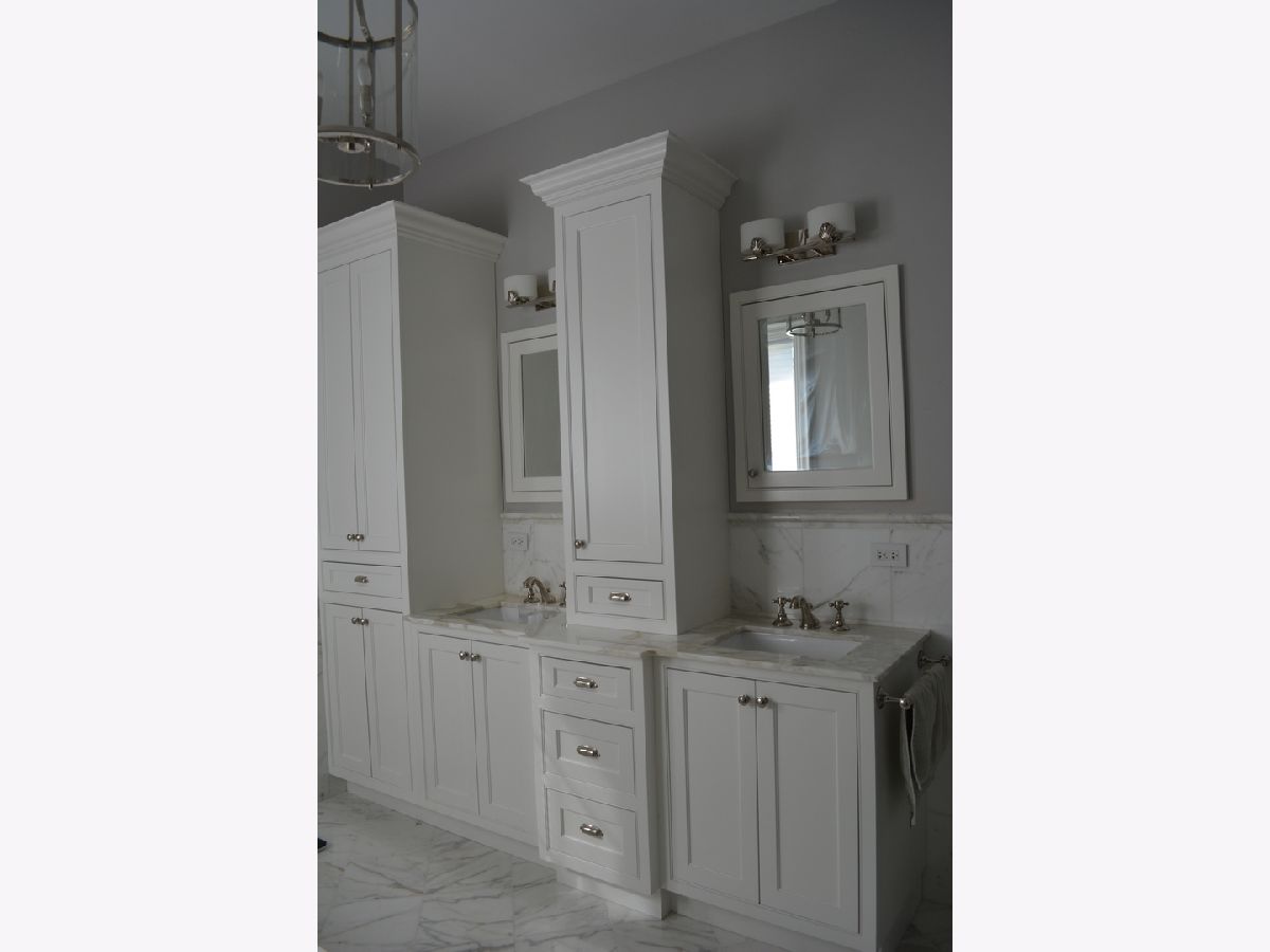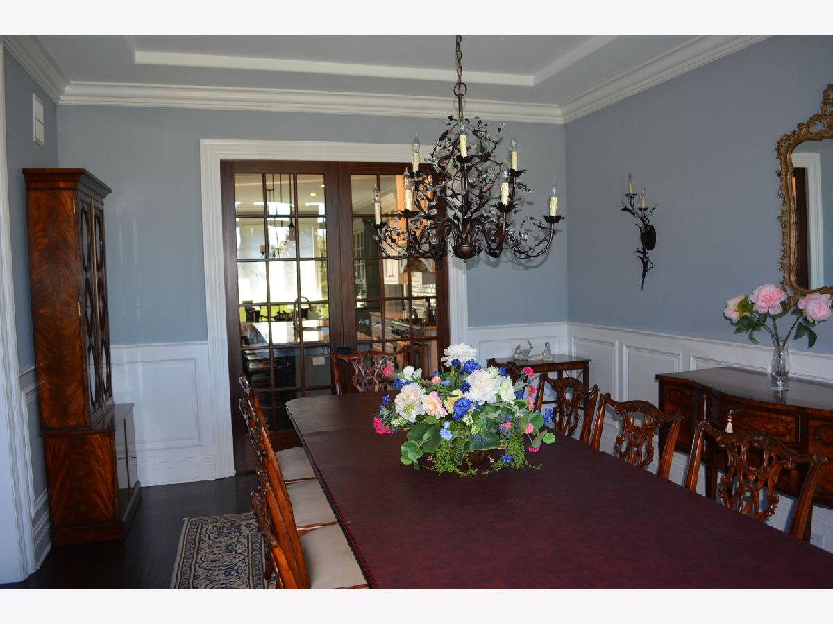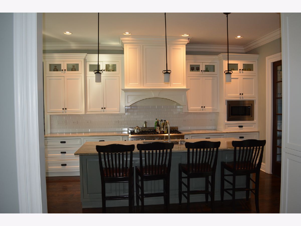 This classic five year old English cottage style stone and brick house features five bedrooms and five and a half bathrooms with Rohl plumbing fixtures Two master suites one up - one down. Ten foot ceilings on the first and second floors. Extensive molding selection include extra wide casing, raised paneling. Crown moldings throughout the house. Mahogany eight foot doors. Custom built ins Traditional kitchen features Thermador and Bosch appliances custom kitchen cabinets with quartzite tops.Hardwood floors throughout both levels. Finished basement with custom bar. A truly custom home. Owner is IL licensed real estate agent.