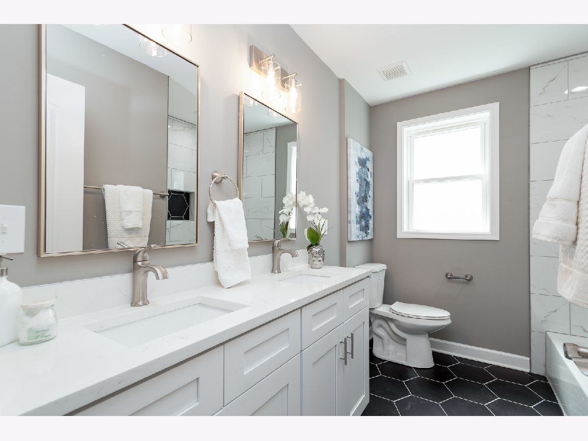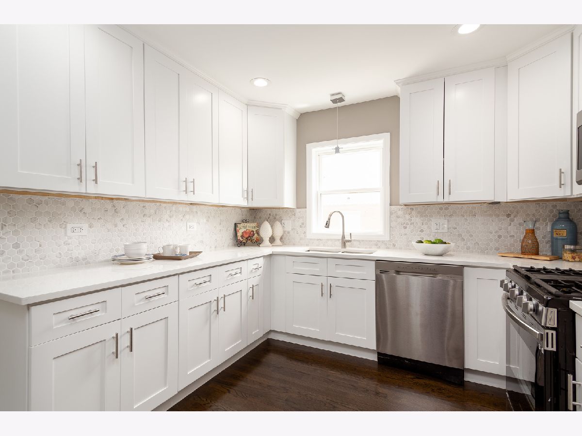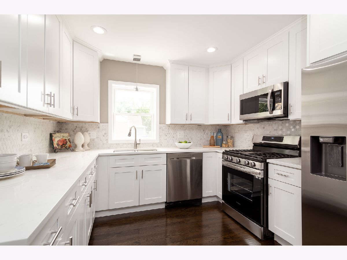Charming rehabbed brick ranch in Evanston! All new kitchen, baths, fixtures, finishes and more. Sun filled living room/dining room with large picture window. On trend kitchen with white shaker cabinetry, quartz countertops, hexagon mosaic tile backsplash, and stainless Samsung appliances. Adjoining family room with access to yard. Three main level bedrooms + all new full bathroom with dual vanities and tub. Finished basement with spacious recreation room, office, 4th bedroom, new full bath with shower, laundry room with hook-up, and utilities. Great outdoor space! Oversized yard with concrete patio and detached two-car garage. Conveniently located near restaurants, shopping, fitness centers, groceries and more. Easy access to public transportation. Steps from James Park recreation area offering a playground, athletic fields, basketball and tennis courts, and gardens.