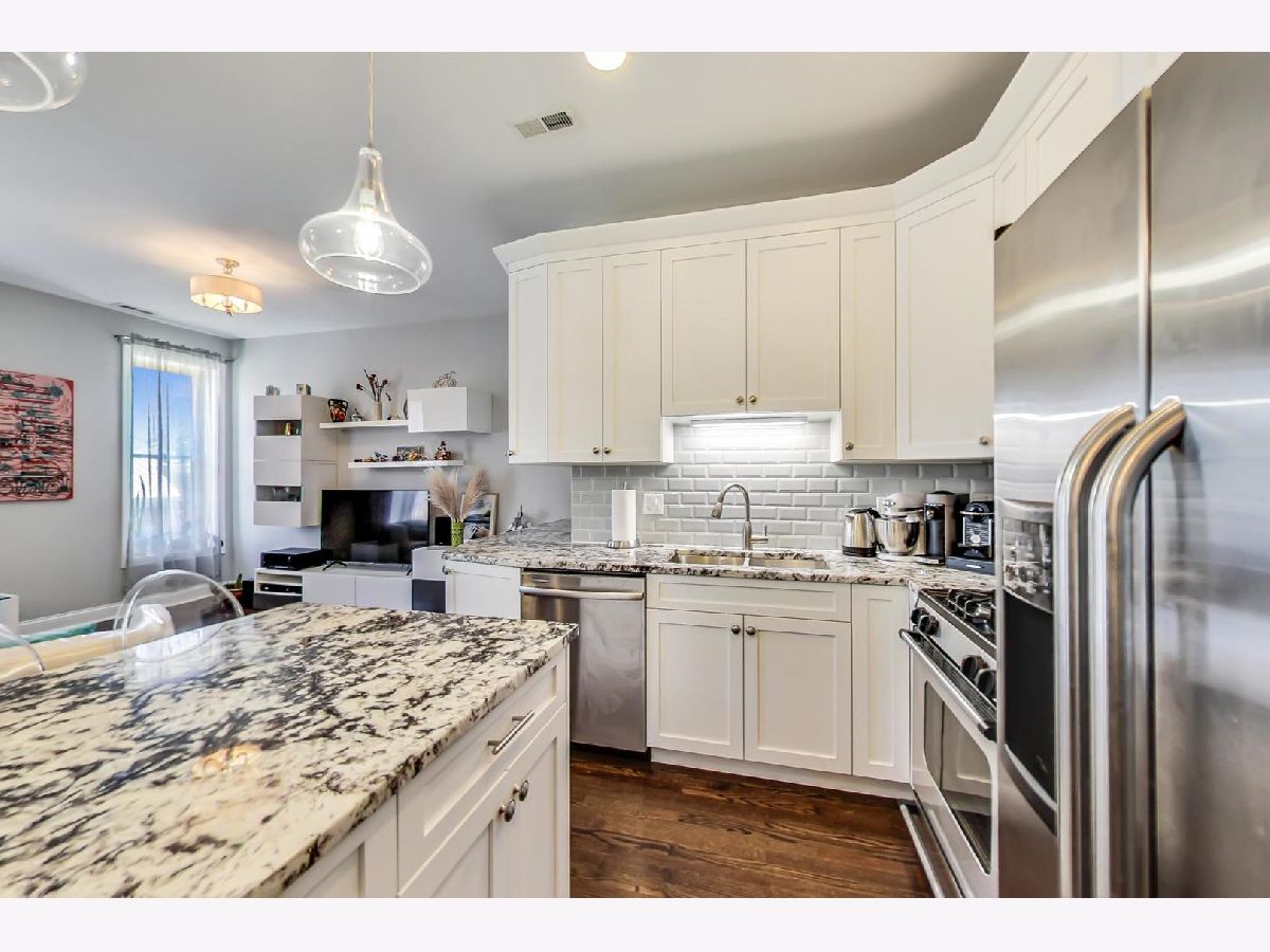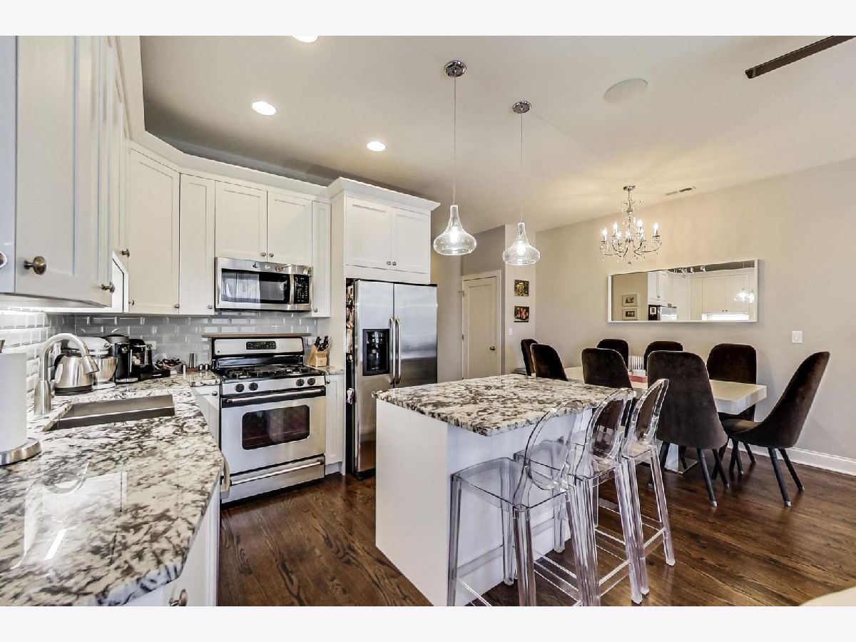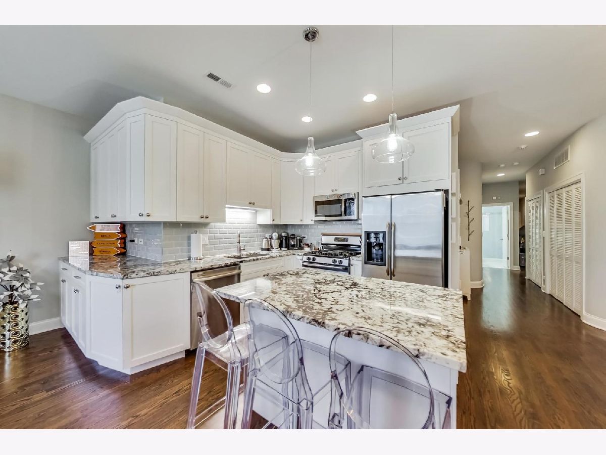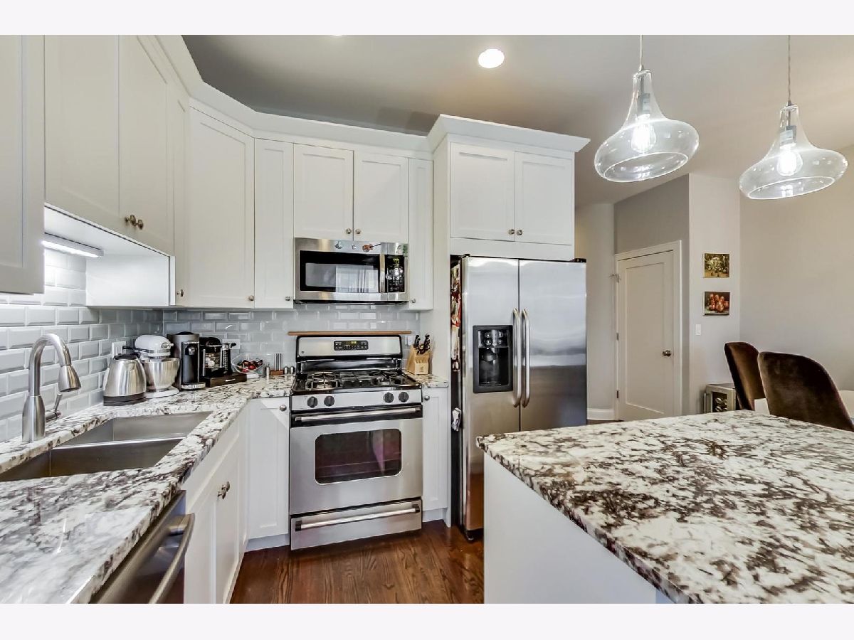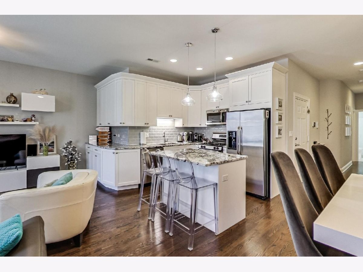 Impressive, modern, extra wide 2 bed/2 bath condo extensively remodeled in 2017. Renovation includes: electrical, drywall, insulation, kitchen, baths, lighting, A/C, roof. This sleek condo offers an amazing, sun-filled open floor plan perfect for entertaining! Living-room with gas fireplace, spacious dinning with room for a large table and 8 chairs. Stunning chef's kitchen including granite countertops, 42' cabinets and SS appliances. Enjoy the Chicago summer breeze from the Juliette balcony in the living room, and a nice evening on the private balcony in a spacious master bedroom equipped with an en suite bath featuring marble tile and countertop. Generous second bedroom and bath. Gleaming hardwood floors through out the condo. Nest Thermostat. Xfinity security system rented- could be transferred. Parking included. Perfect, central location in a desirable Ukrainian Village near grocery stores, popular restaurants, incredible Chicago Ave entertainment and easy transportation. Short commute to the highways and downtown Chicago. OPEN on SAT 6/19 from 11-12:30pm.