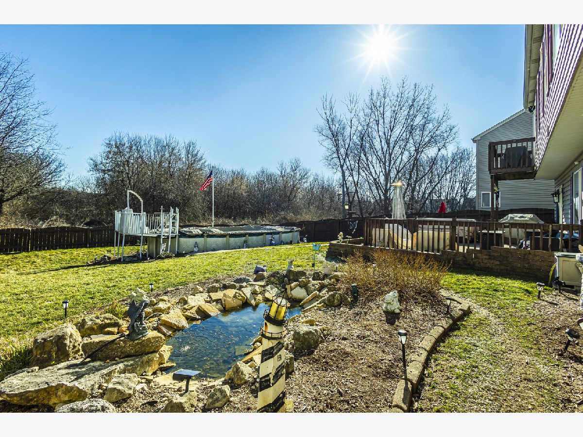 Welcome to your dream home in the serene Misty Creek Subdivision! This stunning 4-bedroom, 2.5-bathroom residence boasts an inviting open floor plan with 9' ceilings, offering a spacious and airy ambiance throughout. The heart of the home is the gourmet kitchen featuring hardwood floors, walk-in pantry, and 42" hickory cabinets, which opens to the main floor family room. Retreat to the primary bedroom, featuring a walk-in closet currently utilized as an office space. Enjoy the convenience of a balcony off the eating area, ideal for morning coffee or evening relaxation. Entertain guests in the elegant formal dining room. The lower level presents the ultimate family retreat, complete with a built-in bar and sauna, creating the perfect atmosphere for gatherings. Step outside to discover the expansive yard with an extended concrete patio, above ground swimming pool, koi pond and jacuzzi, creating an outdoor oasis for endless enjoyment and entertainment. Embrace tranquil views of the pond from the comfort of your own backyard. With a vast laundry room and a walk-out basement, this home combines comfort, luxury, and convenience in every detail. The roof is just 5 years old, and with the added solar panels, savings accrue, having been fully paid for.