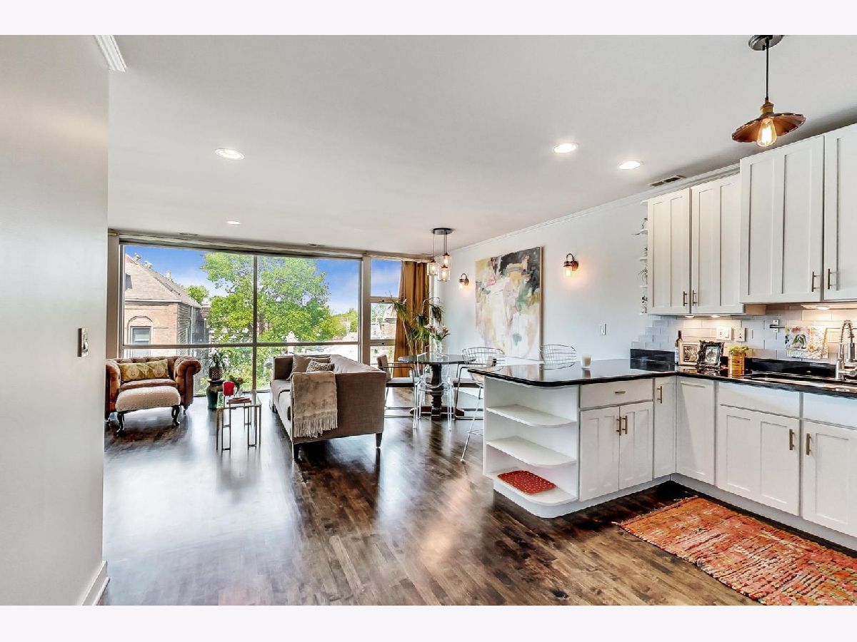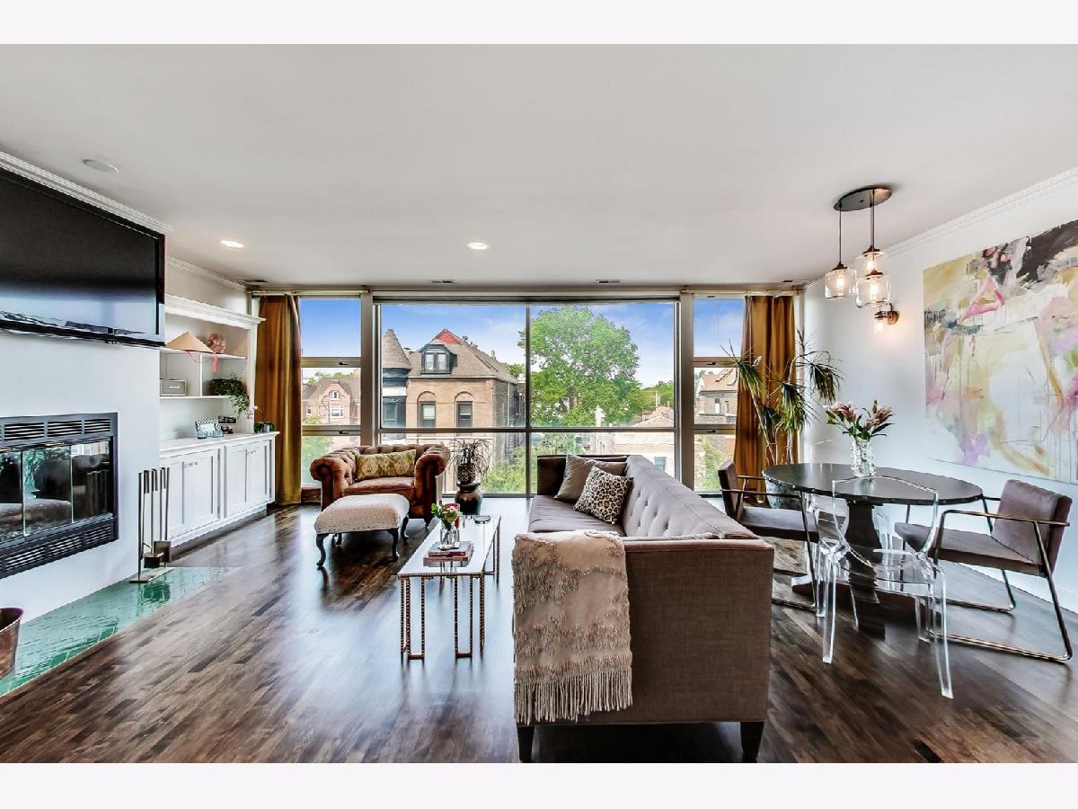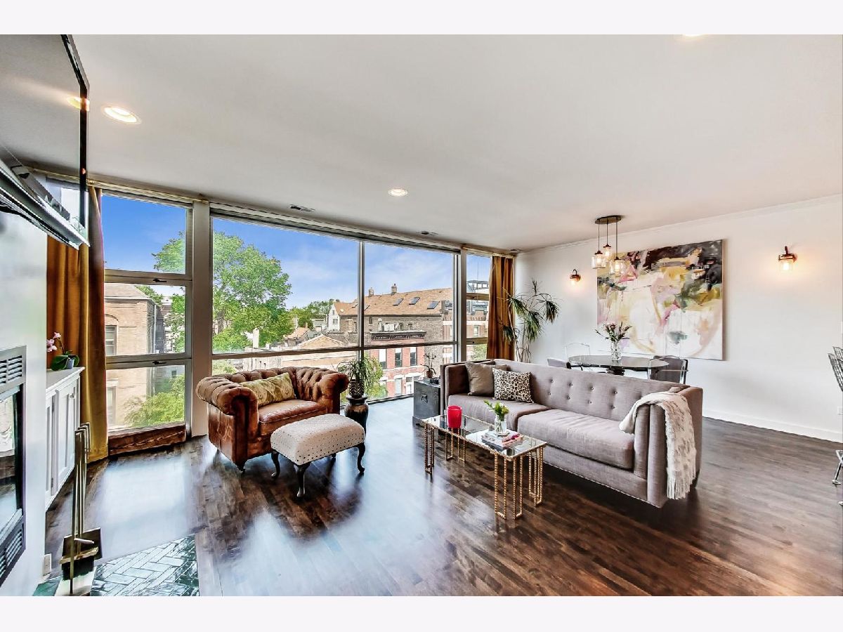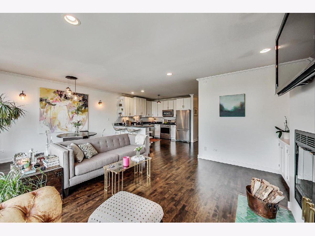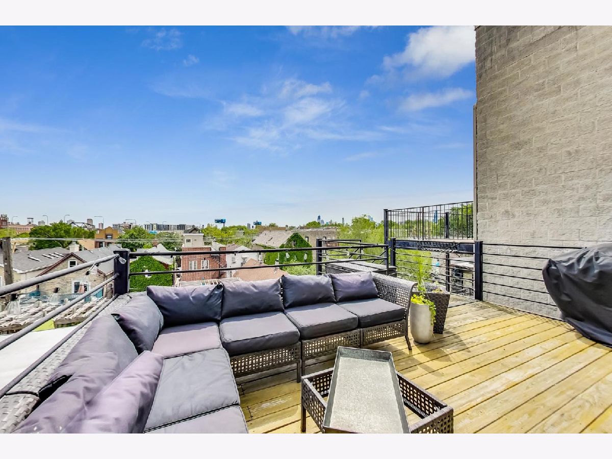 Stunning 2 bed/2 bath penthouse unit with EXCLUSIVE roof rights in prime Bucktown location. Floor to ceiling windows allow amazing light into the open living, dining and kitchen space. Hardwood floors and many recent updates throughout the unit, including updated lighting, refreshed fireplace surround, stainless steel kitchen appliances (2019), luxurious primary bath with marble tile, heated floors, free standing soaking tub, plus separate shower (2019), and a chic hall bath (2020). Great layout with bedrooms at back of unit, both with access to the generous size deck which boasts a skyline view. Good storage space throughout, including a custom walk-in closet in the primary bedroom and full size, in unit washer/dryer. A covered exterior parking space is also included in price! Unit must be owner occupied. Steps to fabulous restaurants and stores, plus easy access to the expressway and public transportation. Nothing to do but move in!