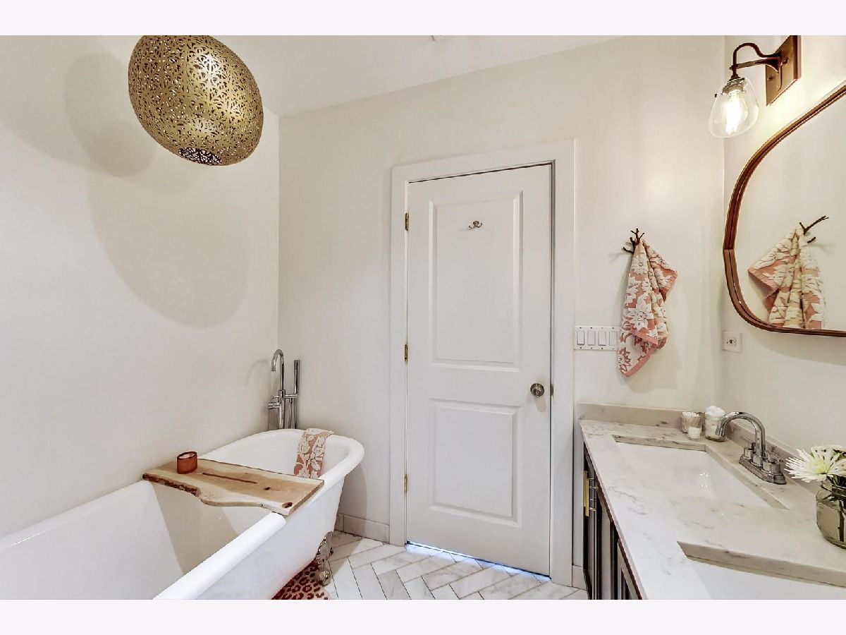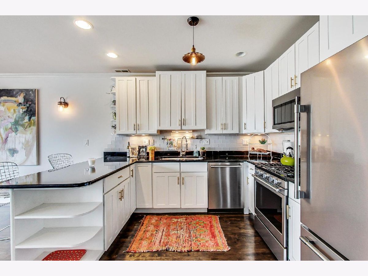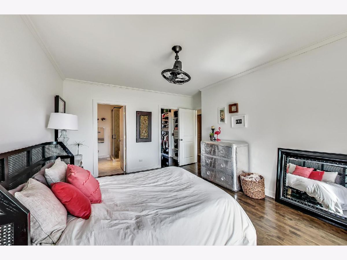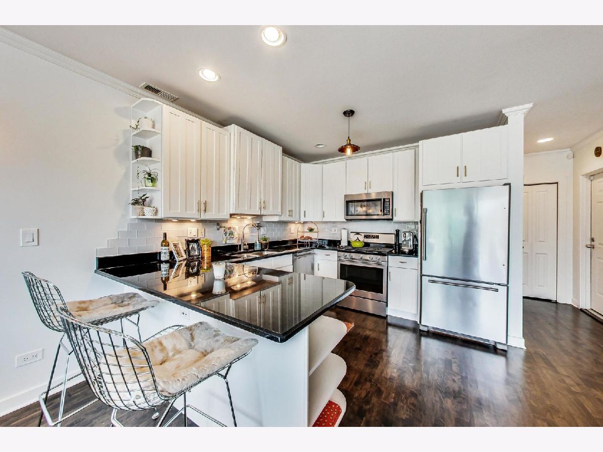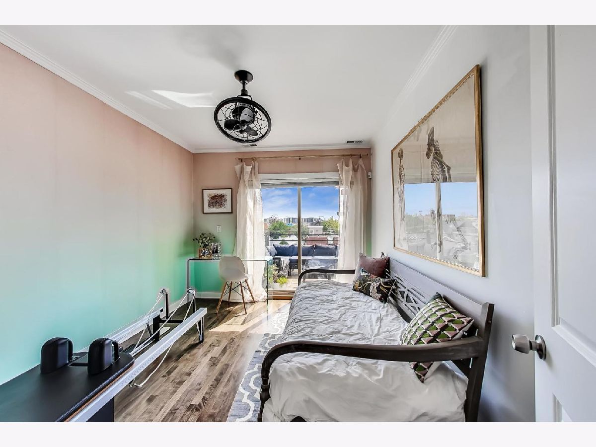 Stunning 2 bed/2 bath penthouse unit with EXCLUSIVE roof rights in prime Bucktown location. Floor to ceiling windows allow amazing light into the open living, dining and kitchen space. Hardwood floors and many recent updates throughout the unit, including updated lighting, refreshed fireplace surround, stainless steel kitchen appliances (2019), luxurious primary bath with marble tile, heated floors, free standing soaking tub, plus separate shower (2019), and a chic hall bath (2020). Great layout with bedrooms at back of unit, both with access to the generous size deck which boasts a skyline view. Good storage space throughout, including a custom walk-in closet in the primary bedroom and full size, in unit washer/dryer. A covered exterior parking space is also included in price! Unit must be owner occupied. Steps to fabulous restaurants and stores, plus easy access to the expressway and public transportation. Nothing to do but move in!