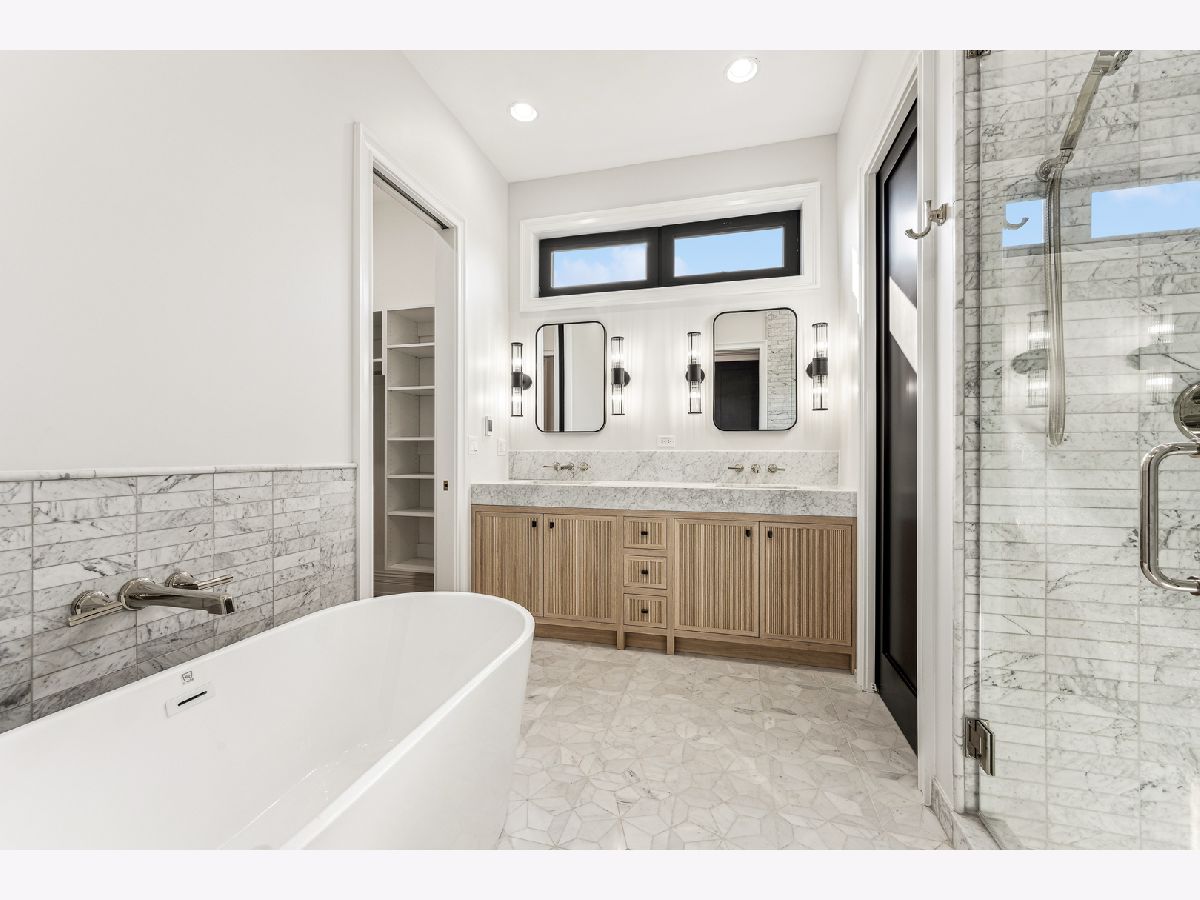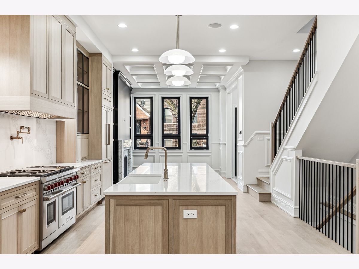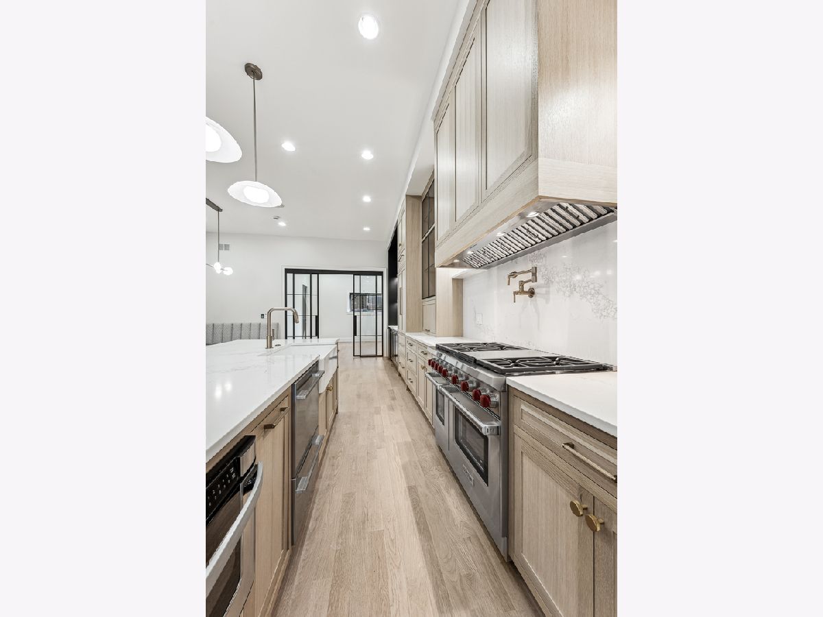 New Construction 2024! Welcome to your dream home in the highly coveted Bucktown neighborhood! This new construction residence is the epitome of modern luxury, with 5 bedrooms, 3.5 baths, built to pair modern and transitional styling with top-of-the-line finishes throughout. The first floor boasts a spacious kitchen with an adjoining butler's kitchen, rift-cut white oak inset cabinets, quartz countertops, a 10.5-foot island, and a 48" Wolf Professional range (with griddle and grill) and 60" hood adding . The first floor also features a separate front sitting area with a gas fireplace encased in custom cabinetry and coffered ceilings, as well as a built-in breakfast nook. Additionally, a separate family room with custom sliding steel glass doors completes this level. The second floor houses the primary suite with an additional gas fireplace, two substantial walk-in closets, and a luxurious 5-piece marble bath. This floor also houses two more generously sized bedrooms, a convenient second laundry area, and a second full bath. The fully finished basement, with impressive 9.5-foot ceilings, offers a spacious recreation room, a well-equipped wet bar, a generously sized main laundry room with option dog shower, two more bedrooms (4th and 5th), and an additional full bath with bedroom access. Enjoy hydroponic radiant in-floor heating (optional multi-zoned) throughout this level. For outdoor entertainment, you have a garage rooftop deck and a whole-house rooftop deck, both offering extensive space for hosting. The penthouse level includes a wet bar. Located in the perfect location within Bucktown, being steps from Holstein Park and two blocks from award winning Pulaski International School. Proximity to Western Ave, Highway 90/290, CTA buses and the Western Blue Line. Walking distance to restaurants, nightlife and coffee shops. 2-car garage with oversized overhead door and electric car 40AMP hookup perfect for any electric/hybrid car! There's still an opportunity for some minor customization and to make final selections with the aid of an in-house interior designer who has designed all of the builder's new construction homes. Completion Date - February 2024.