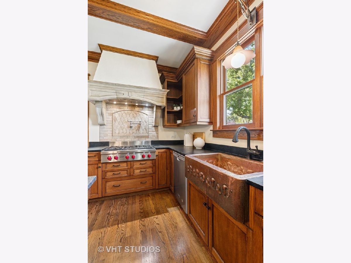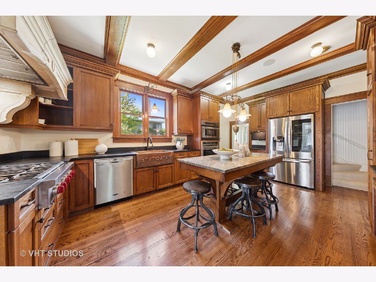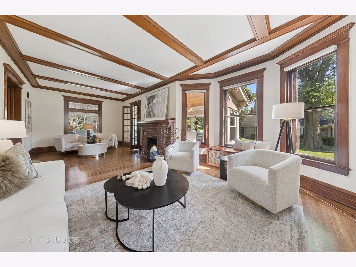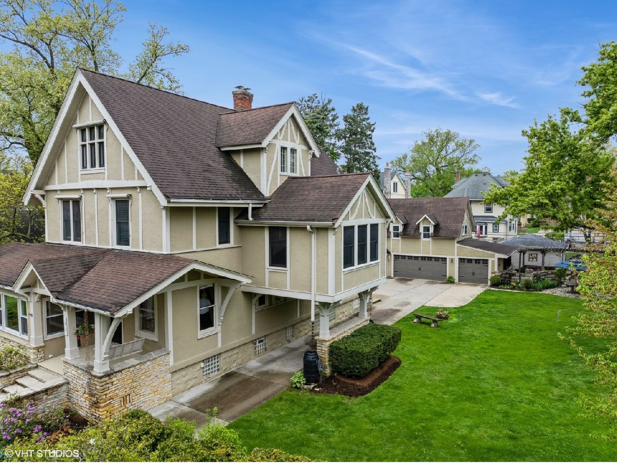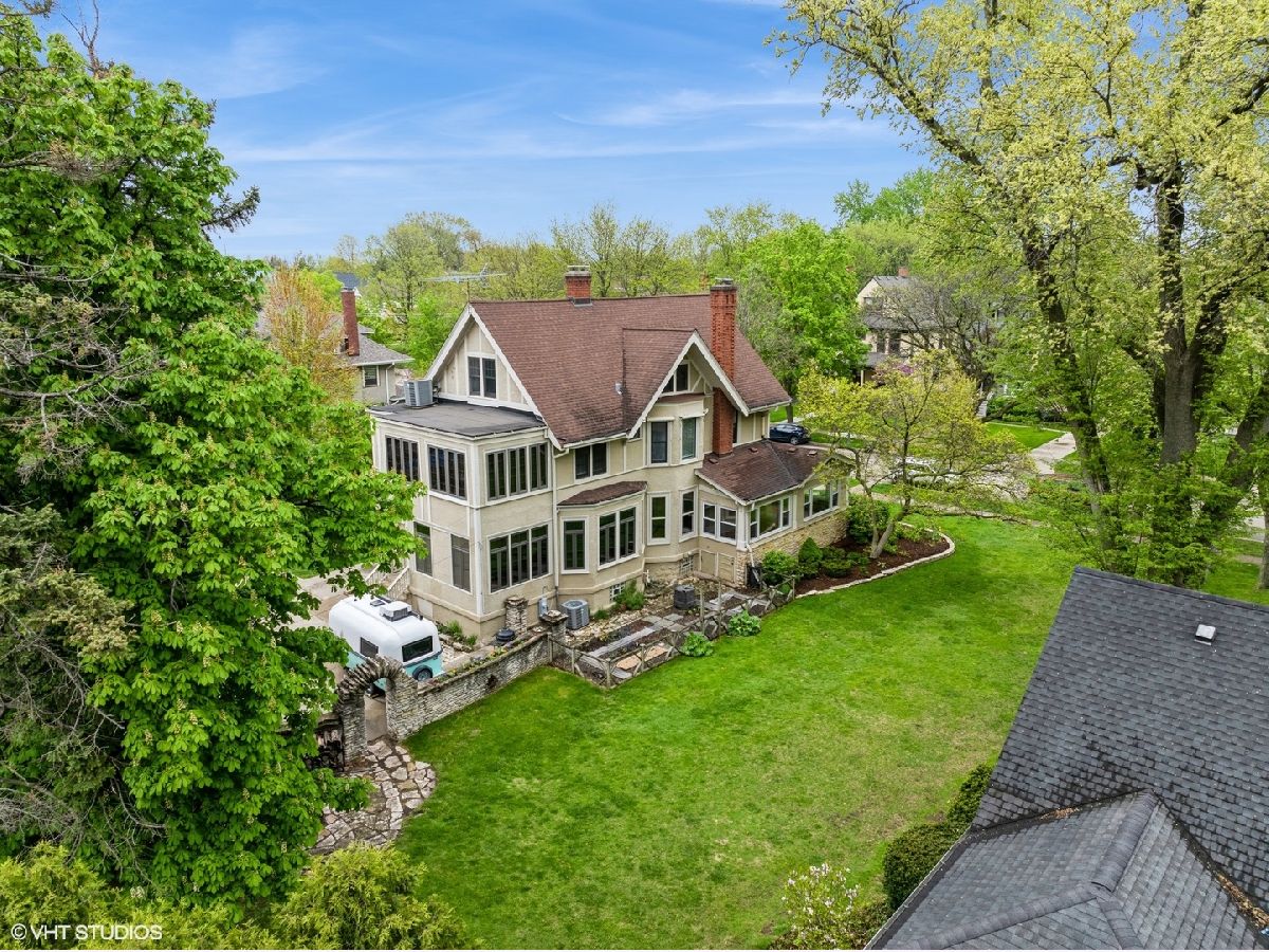 A once in a lifetime opportunity. This beloved La Grange property is on the market for the first time in 25 years. This 1887 beauty and the amazing yard have been lovingly restored and meticulously maintained. This home is an absolute joy to tour with craftmanship that rarely gets repeated today. Walking into the oversized foyer, your eye instantly goes to the ceiling - a beautiful mural that was hand painted by a previous owner of this home. The spacious living, dining, family and sun rooms blend seamless together, providing the home with a versatile and open layout. In the living room is a charming gas fireplace. The sunroom, an enclosed porch, is a sunny area to entertain or just enjoy the view. The family room is a cozy spot to watch a movie. The woodwork and detailing are stunning throughout the home, the wood floors are gorgeous and the vast amount of windows give every room natural light and beautiful views of the grounds. The kitchen is definitely the heart of this home. The 2007 remodel included solid wood custom cabinetry with glass doors, Wolf oven and cooktop, copper sink, custom hood, custom light fixture over the island with room for 8 or more barstools, the LG refrigerator is newer addition. A secondary staircase provides easy access upstairs and the large adjacent mudroom has locker style storage, backyard access and a dumbwaiter elevator that is original to the house, how cool is that. On the second level is the primary suite in addition to 3 other bedrooms, linen closet, a guest bathroom and laundry room. The primary suite includes a large bedroom, walk in closet and private bathroom with a beautiful claw foot tub, pedestal sinks and a separate shower. The long hallway gives each bedroom privacy and a few of the rooms even have attached working sinks, a nod to the original construction. Above the portico and between the first and second floor is a gorgeous window filled room that was once used as an artist studio. Currently a den, it would be a lovely office as well. The third floor has high ceilings and contains 2 large bedrooms, a living area and a full bathroom. The finished basement provides a secondary kitchen which is a fantastic addition when entertaining a catered event. The newly finished wine cellar is charming and has room to host an intimate dinner or a tasting. While this home is absolutely amazing - the grounds are incredible. Situated on 3 separate lots, the property enjoys a 140' impressive frontage with a 150' deep yard. The stonework throughout is substantial with multiple retaining walls, curved entrances and an enclosed pergola over the stone patio. It is an entertainer's dream. The yard has been professionally landscaped and maintained. The possibilities for the expansive side yards are endless. The large fenced in garden is on the south side of the home, taking advantage of the best sun exposure. Above the 4 car garage is a full coach house with a living area, kitchen, and bath. It would be a fantastic, private office or a lovely guest suite. Very few homes in La Grange offer this caliber of home within such a private setting. A short walk leads you into downtown La Grange, the Metra, schools and parks. Don't miss out on this incredible opportunity to live in your forever home.