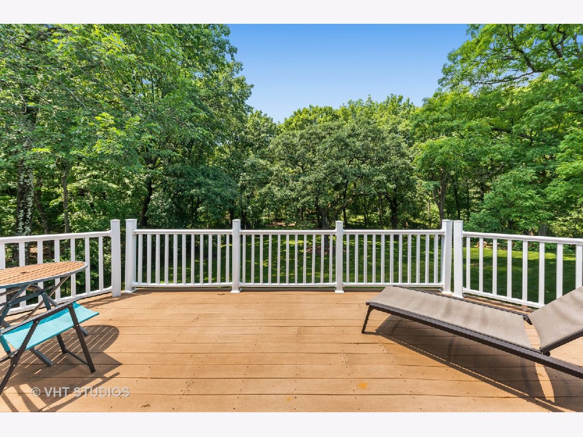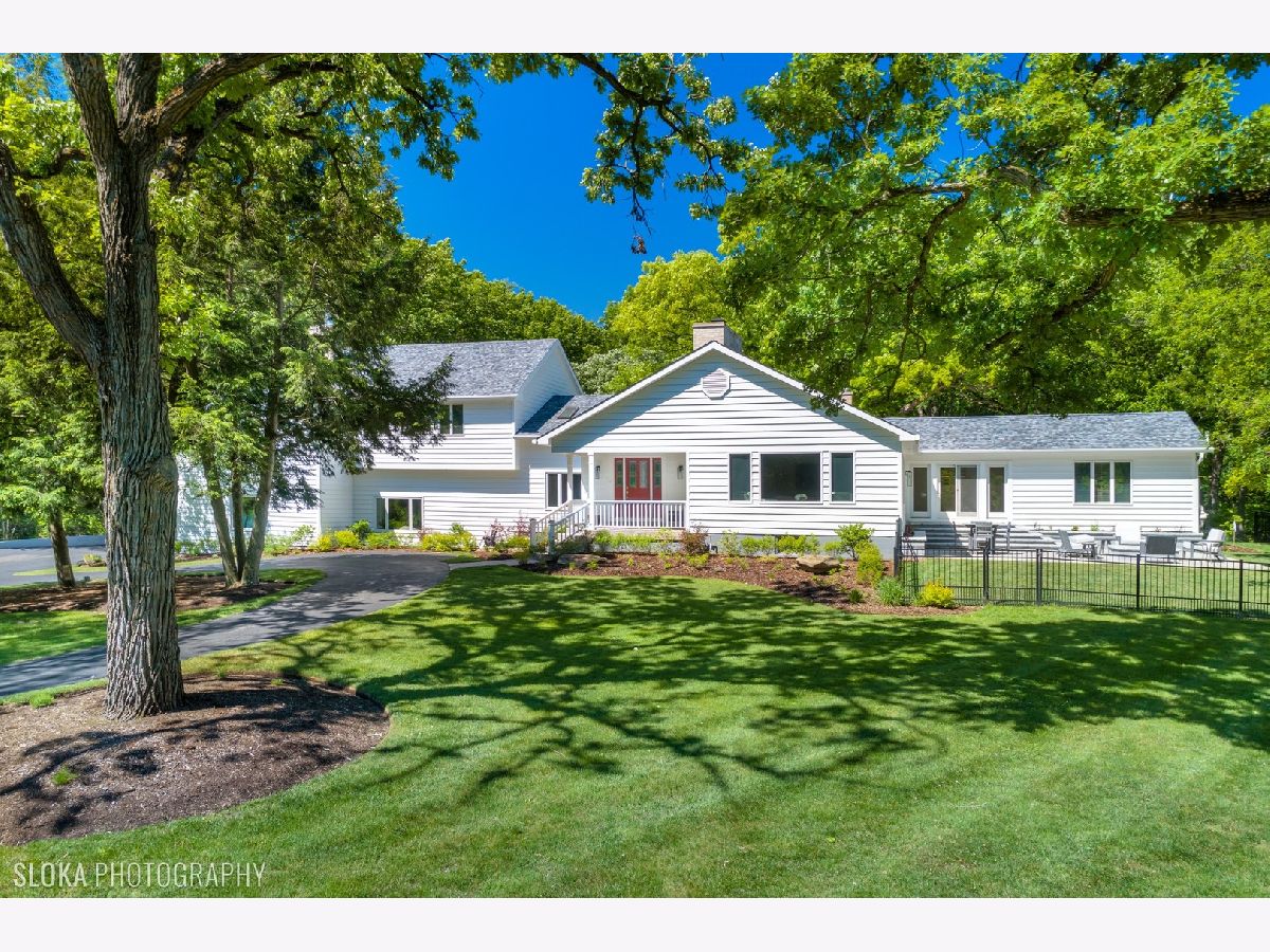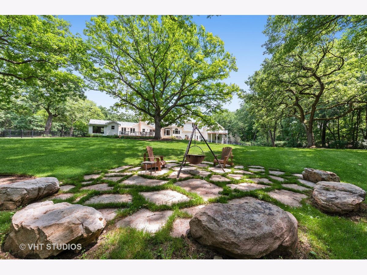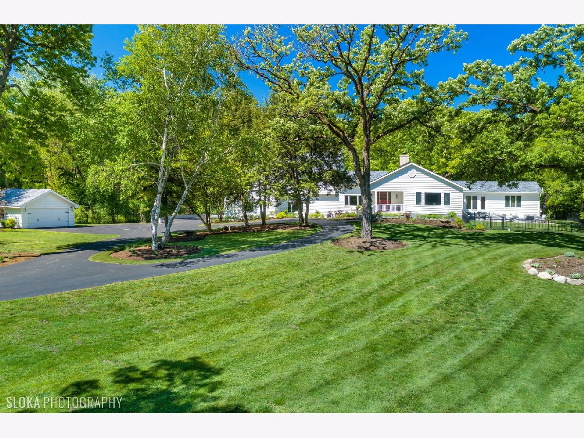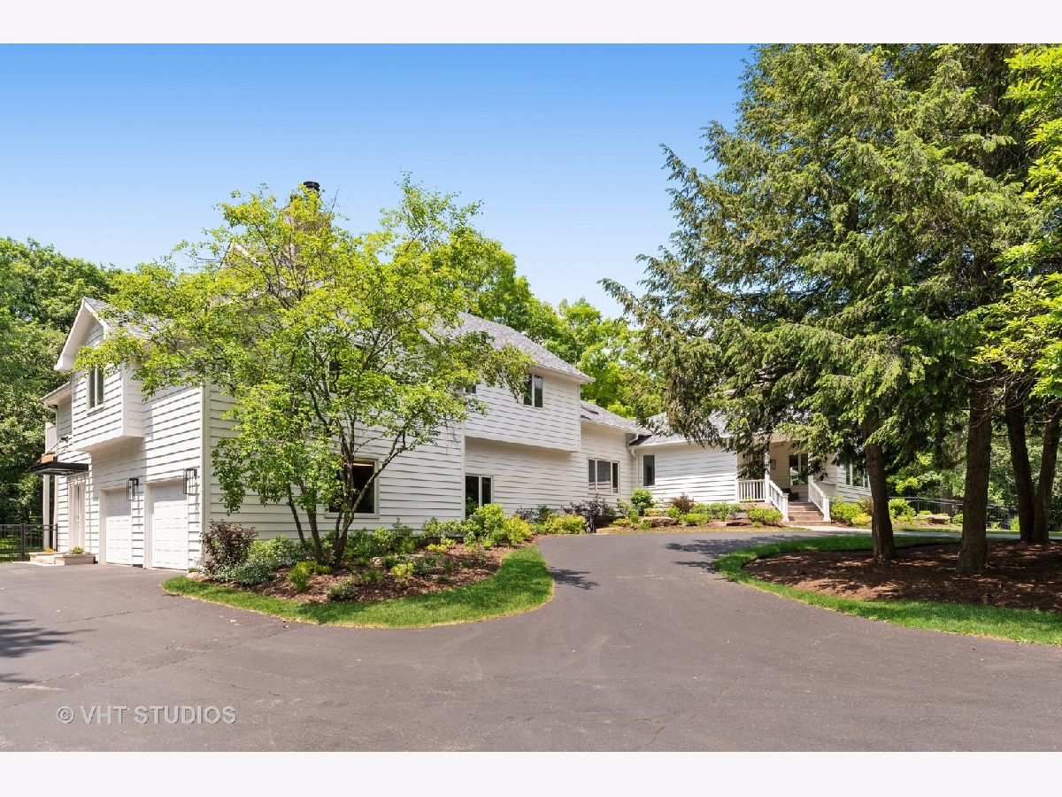 Nestled on a wooded 5-acre parcel with gated entry, this stunning farmhouse will charm you! Sunlight pours in from every direction in this light & bright home offering a wonderful open floor plan for today's living. Soaring ceilings, skylights, cozy fireplaces, hardwood floors and oversized windows offer picturesque views of the natural setting. Freshly painted, this turnkey home has been updated inside and out with newer baths, fabulous laundry room and surround sound throughout. An amazing outside renovation & expansion features a new deck, patio, built-in firepit, expanded parking and professional landscaping making the perfect space to relax and relish this private setting. Enjoy a magnificent blend of elegant entertaining spaces and comfortable living areas including large dining, family & living rooms! Chef's delight kitchen is sure to be a favorite gathering place with large island with breakfast bar and eating area with sliders to rear deck. The flexible floor plan features two first floor bedrooms & three full baths perfect for family, guests, au pair or a great work from home space! Well-appointed second level offers a superb primary suite with luxe bath, private balcony deck and huge walk-in closet. Two additional secondary bedrooms that share a Jack & Jill bath round out the second floor. Attached 2.5 car garage & detached 2 car garage provide plenty of space for cars & toys. Mature trees, sweeping lawns and gorgeous views of nature provide an idyllic backdrop for this quintessential Barrington Hills home that provides the space and privacy you desire! Enjoy easy access to nearby riding trails and just minutes to shopping, train & restaurants. Truly a magical place!