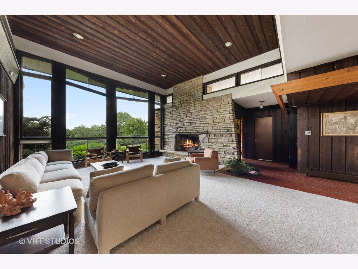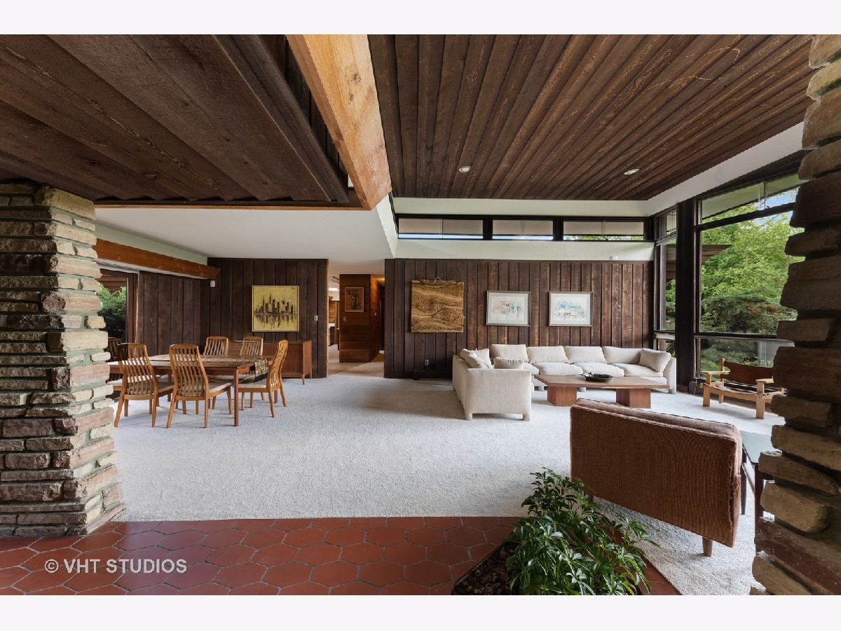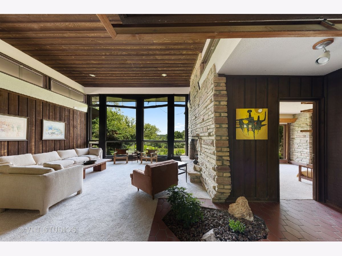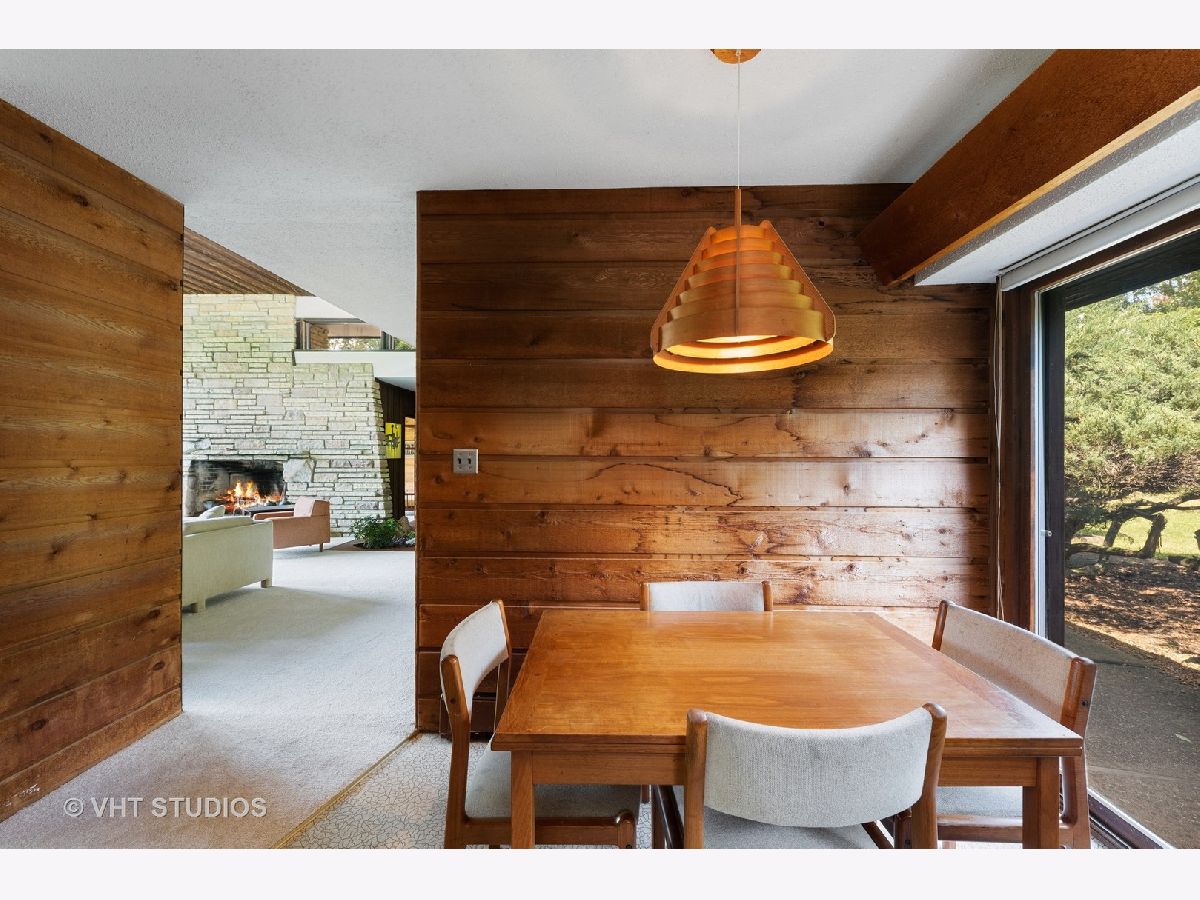 ** Multiple offers received. Highest & best offers are due by 3pm Central on Sunday, September 5th ** Arguably one of Don Tosi's most dynamic and purely modern designs, 212 Kimberly Road in North Barrington's ultra-desirable Biltmore subdivision is a remarkable MCM home on 7 acres that gently slope back towards the adjacent Honey Lake. Tosi was mentored and encouraged by renowned architect Bruce Goff who often stamped Tosi's plans (including those for 212 Kimberly). Built in 1949, the home features many wonderful details such as the angled stacked stone wing wall corners, a lofty, wood clad ceiling in the living room with clerestory windows, floor to ceiling glass in many rooms, cedar paneling in various spaces, exposed stone walls, beautiful angled & paneled roof overhangs, built-in furniture & shelving and much more. Originally designed as a 3-bedroom house, the home was modified & expanded by Tosi in the 1960s and now includes 4 bedrooms and 2 full baths in addition to the kitchen, dining room, living room and den (plus utility and laundry). A storage basement was added underneath the addition, and there's a lovely screened porch on the south side of the home to enjoy looking out over the vast acreage surrounding the house. At 2,415 square feet, the home is a comfortable scale and very easy to live in. Outside you'll find a wonderland of natural beauty, with acres of lawn, mature trees, a private forest and part of a pond at the west end of the property, adjacent to Honey Lake. Seasonal lake views could be year-round based on removal of certain trees and other foliage. Served by the highly-rated Barrington school district, 212 Kimberly Road is in a fantastic location with easy access to both Barrington and Lake Zurich and 10 minutes from the Barrington Metra station. Don't miss this opportunity to make a very special mid-century modern home yours for many years to come! Available for the first time since 1958, the home is being sold "as-is" by the family of the owners.