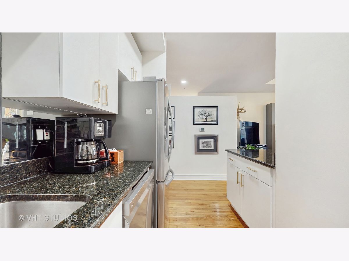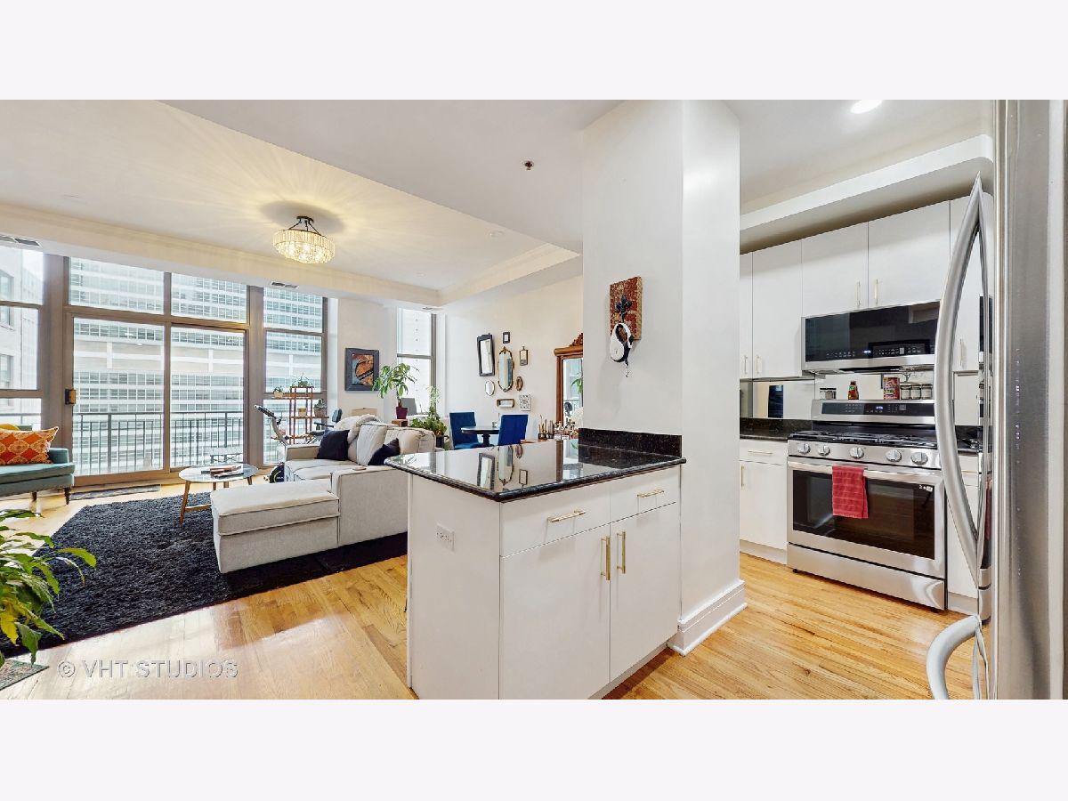 Welcome to 212 W Washington, formerly the Illinois Bell Telephone Company building and an amazing opportunity for homeowners to be in the middle of EVERYTHING - short distance to Michigan Avenue, the Art Institute, theater district, Millennium Park, restaurants, highway access, commuter trains and more! This gorgeous condo features a large dining & living area with open kitchen, white cabinets, granite countertops and breakfast island. Hardwood Floors & In-Unit Laundry. The primary bedroom boasts an en-suite bathroom with double vanities, as well as a walk-in closet. Recent updates (within the past 3 years) include: all kitchen appliances replaced (LG), all-in-one washer/dryer replaced, ceilings and cabinets repainted, new recessed lighting installed where there used to be track lighting, new light fixtures in the entryway/hallway/living room, and new tile in both bathrooms. This beautiful vintage building includes a beautiful lobby, 24 hour door staff, a fitness center, dog run, and a garden terrace. Pet friendly, owners must phone a minimum 4 years before renting. No current or planned specials. Deeded Garage Parking for additional $25K.
