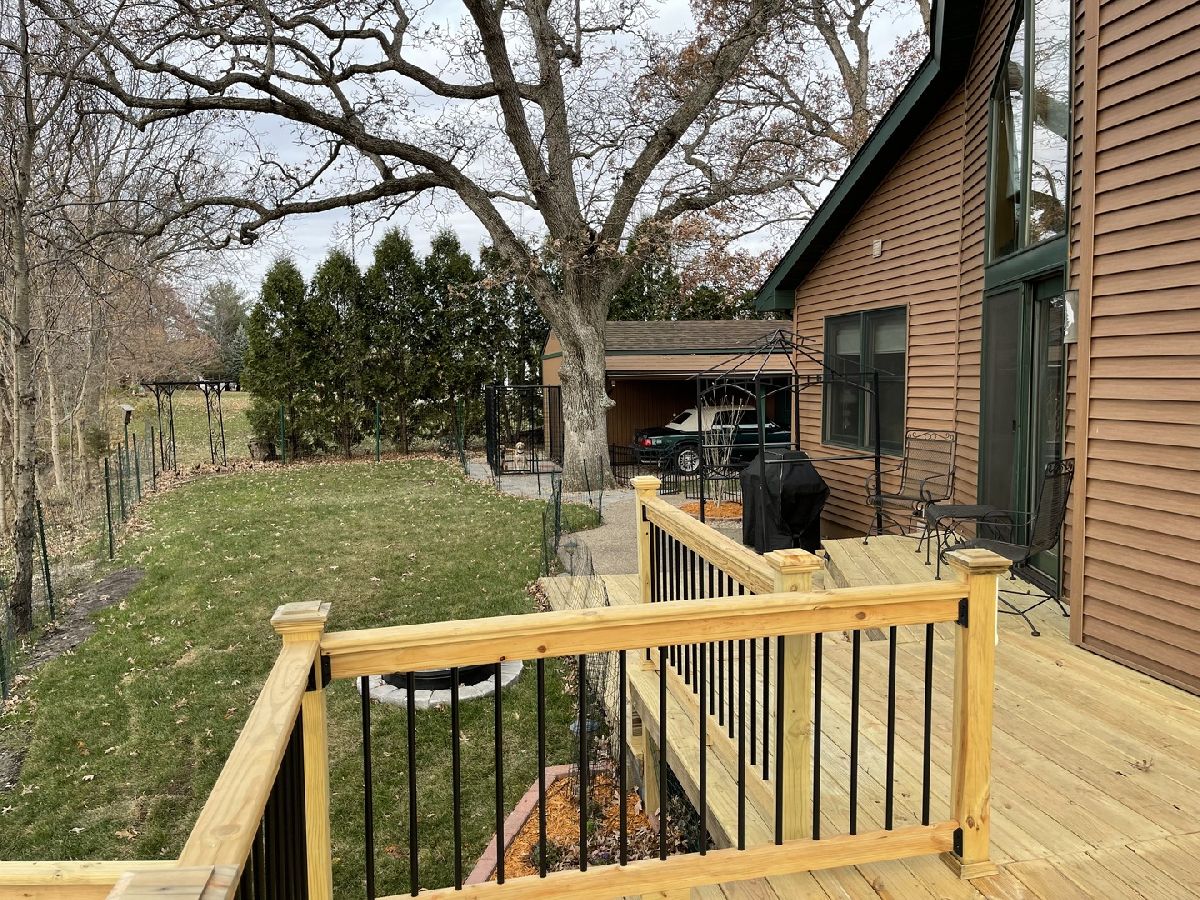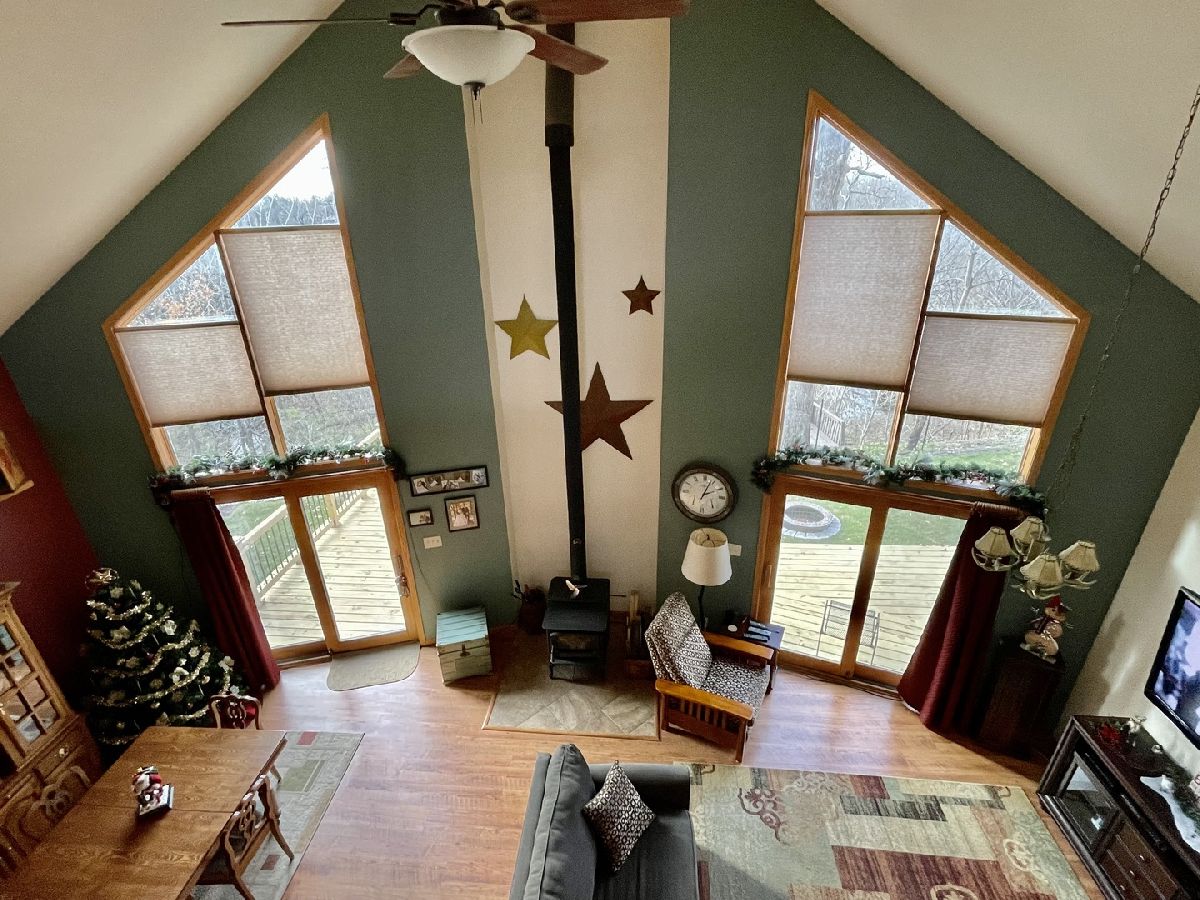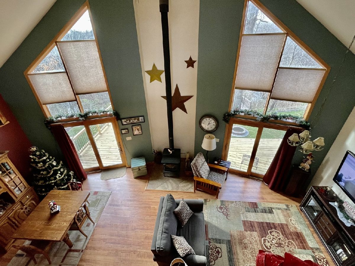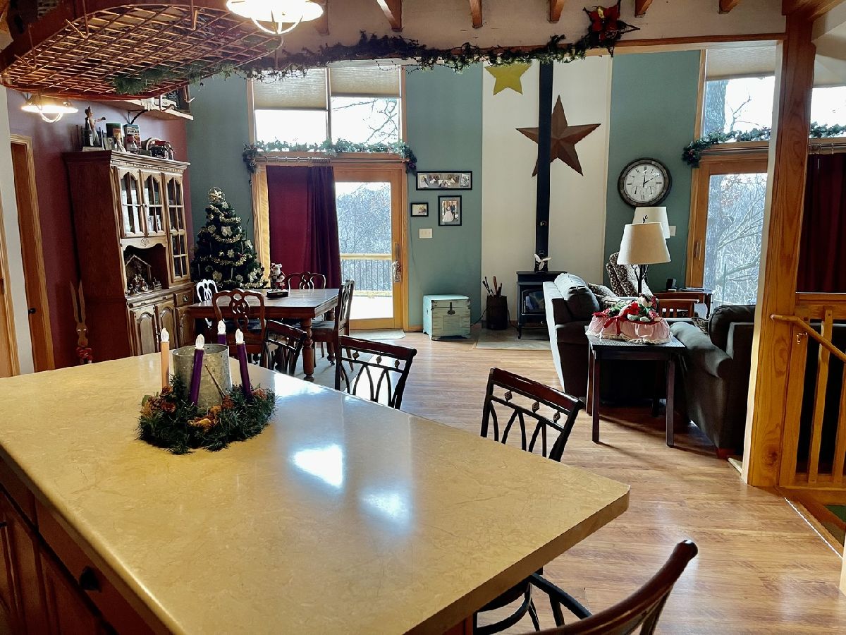 Quality throughout this immaculate 4 bedroom, 2 bathroom home on approximately 1 acre. Features include lovely front heated sunroom, open floor plan, large kitchen with center island, double sink, plenty of cabinets, new appliances. Grand living room, high vaulted ceiling, floor to ceiling windows, woodburning stove with sliding glass doors on both sides to new deck with beautiful view overlooking timber and creek. Master bedroom has full bathroom, and walk-in closet. 2 other bedrooms and full bathroom. Main level laundry (washing machine does not stay). Grand staircase to loft. Partially finished lower level has 11x26 bedroom and family room. Attached 2 car garage with extra storage area and sink. 2 sheds - one could be 3rd garage. Patio, fenced area in back yard. Has fiber optic internet services. Water heater (2018) Water Softener (2018)