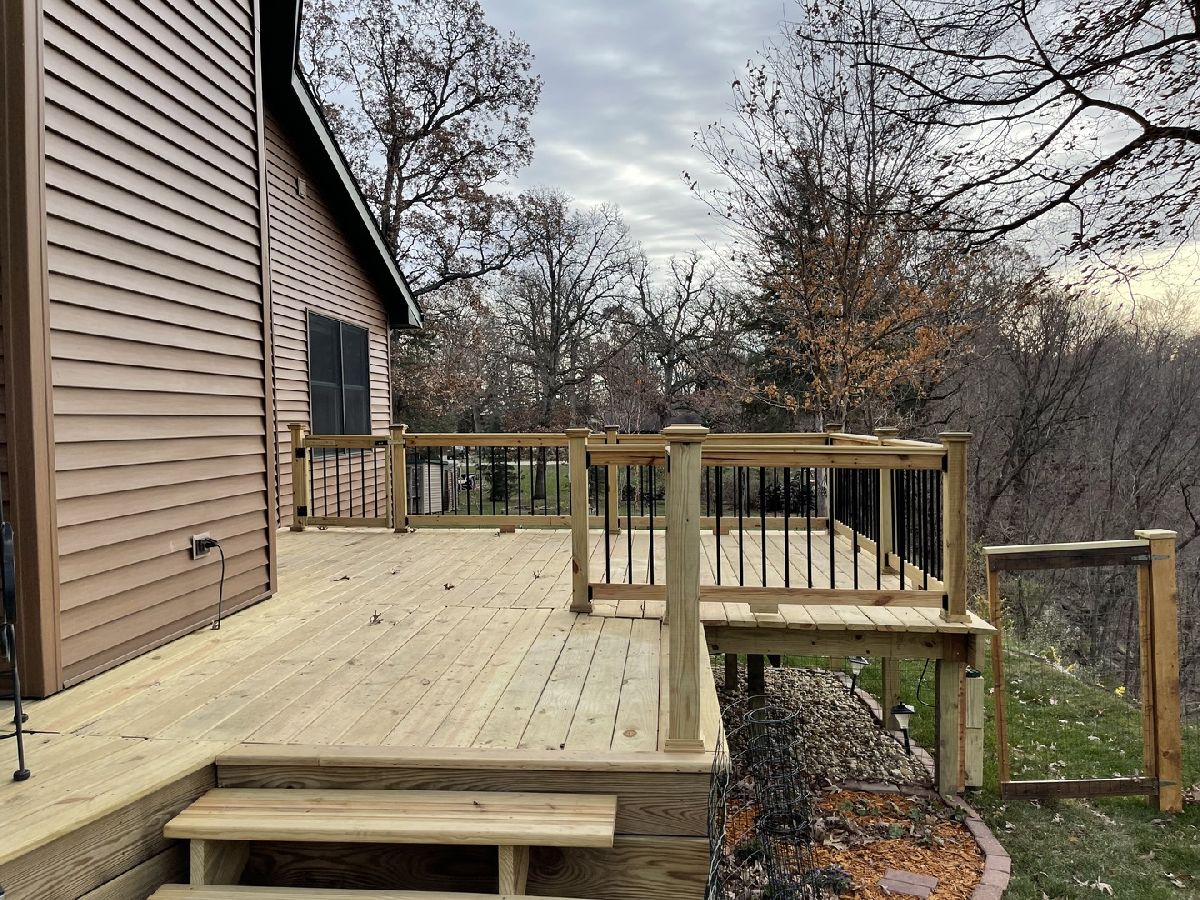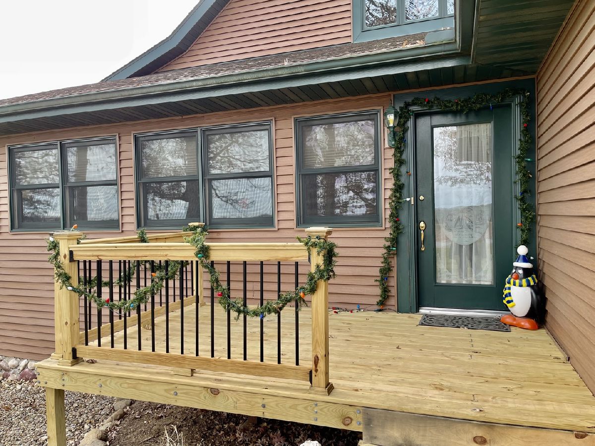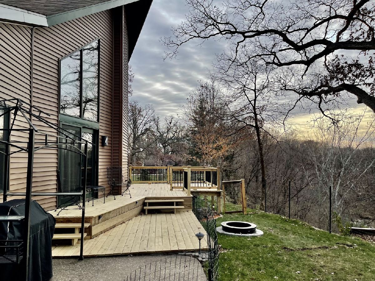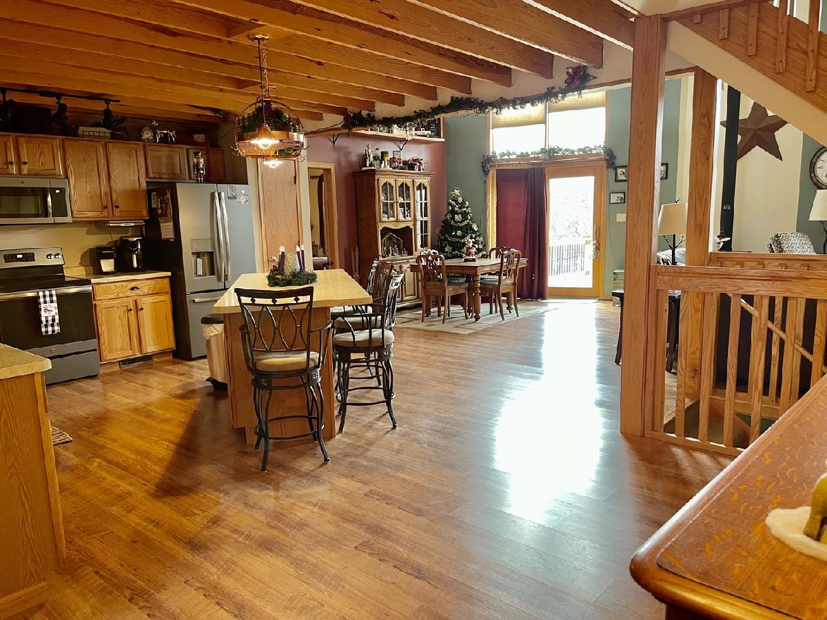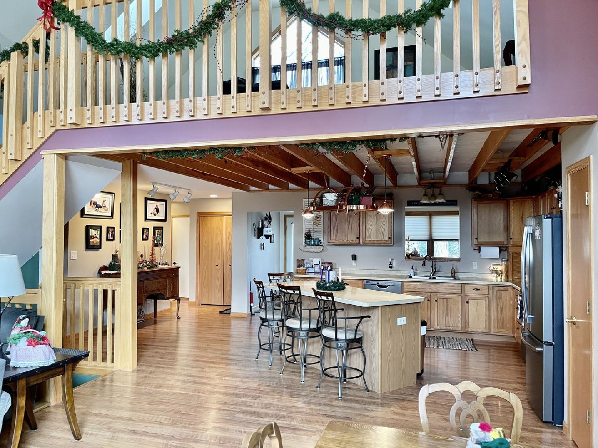Quality throughout this immaculate 4 bedroom, 2 bathroom home on approximately 1 acre. Features include lovely front heated sunroom, open floor plan, large kitchen with center island, double sink, plenty of cabinets, new appliances. Grand living room, high vaulted ceiling, floor to ceiling windows, woodburning stove with sliding glass doors on both sides to new deck with beautiful view overlooking timber and creek. Master bedroom has full bathroom, and walk-in closet. 2 other bedrooms and full bathroom. Main level laundry (washing machine does not stay). Grand staircase to loft. Partially finished lower level has 11x26 bedroom and family room. Attached 2 car garage with extra storage area and sink. 2 sheds - one could be 3rd garage. Patio, fenced area in back yard. Has fiber optic internet services. Water heater (2018) Water Softener (2018)