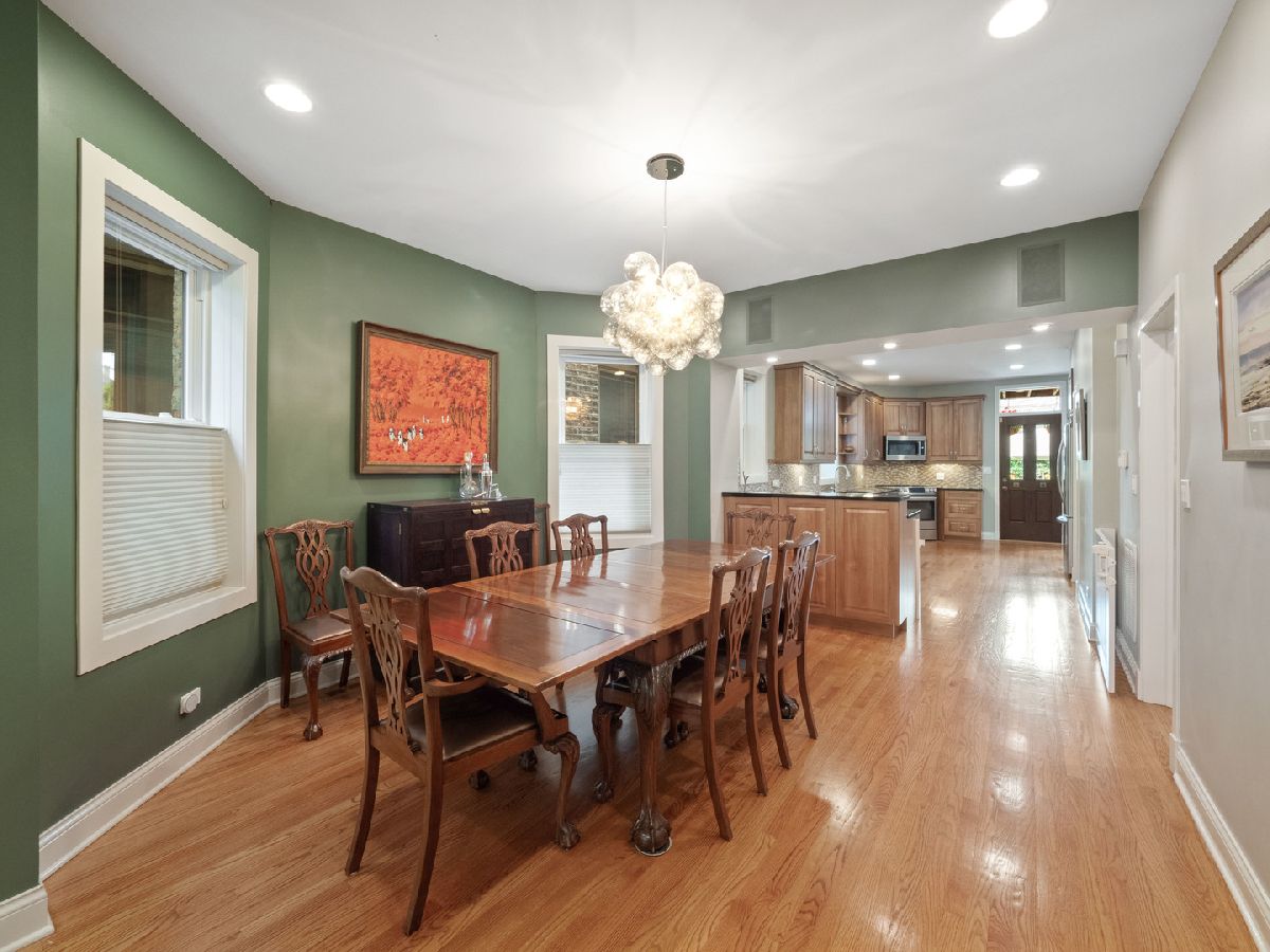 Meticulously maintained home nestled in the heart of North Center's Bell School district with a perfect blend of vintage charm and eco-friendly details. With 6 bedrooms, 3-1/2 baths and an open floor plan, it is ideal for entertaining as well as day-to-day living. Bay windows brighten the living room and overlook the front garden and tree-lined street. Ample dining room leads to the heart of the home -- its spacious kitchen with quality appliances, plenty of cabinets and countertop space to inspire your inner chef. Completing the main level are a breakfast room, guest bedroom/office and newly renovated powder room. Upstairs, you'll discover the generous primary bedroom with walk-in closet and ensuite bath, as well as two more well-appointed bedrooms served by a second bathroom, plus an office/flex space with access to the back deck. The lower level centers on a comfortable family room and also includes a guest room with adjacent full bath and sitting room, creating an ideal retreat for visitors. The 6th bedroom, currently used as workout space, offers walk-out access to the well-landscaped rear yard and adjacent deck, which combine to create an urban oasis to relax, play or entertain. The home is equipped with zoned heat and a/c, electric car home charging station, irrigation system for front and rear gardens. Steps to shops, restaurants, Trader Joe's and the CTA Brown Line.