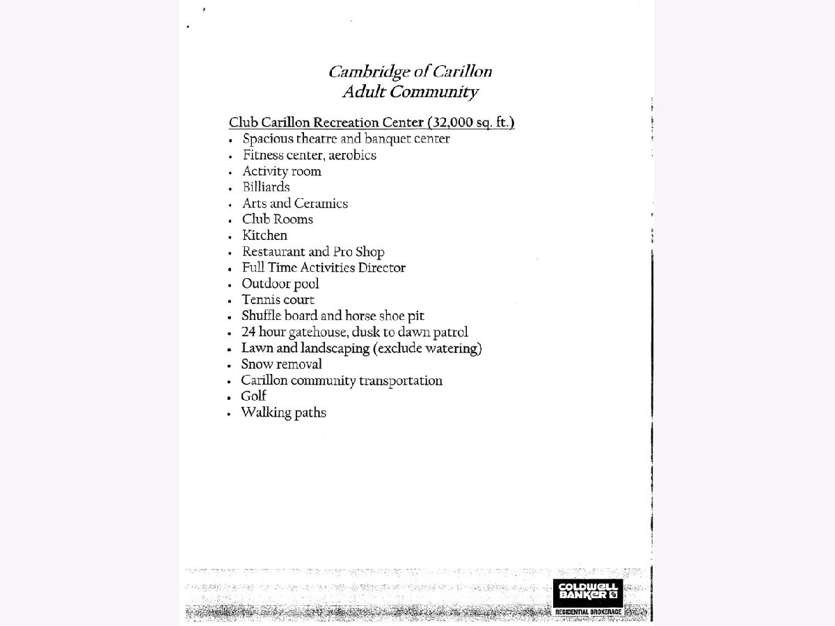 Very rarely available Mission Hills Model. Come see this 1600 square foot ranch in the Carillon 55+ community. 3 bedrooms and 2 full bathrooms. This home is move in ready, has been meticulously maintained and is neutrally decorated. Furnace and A/C replaced in 2019, All appliances replaced in 2011 and are in excellent working condition in addition to being clean. Newer luxury vinyl plank flooring in kitchen, laundry room and bathrooms. Carpet is clean and in excellent condition. Roof replaced 2005 and in good shape!