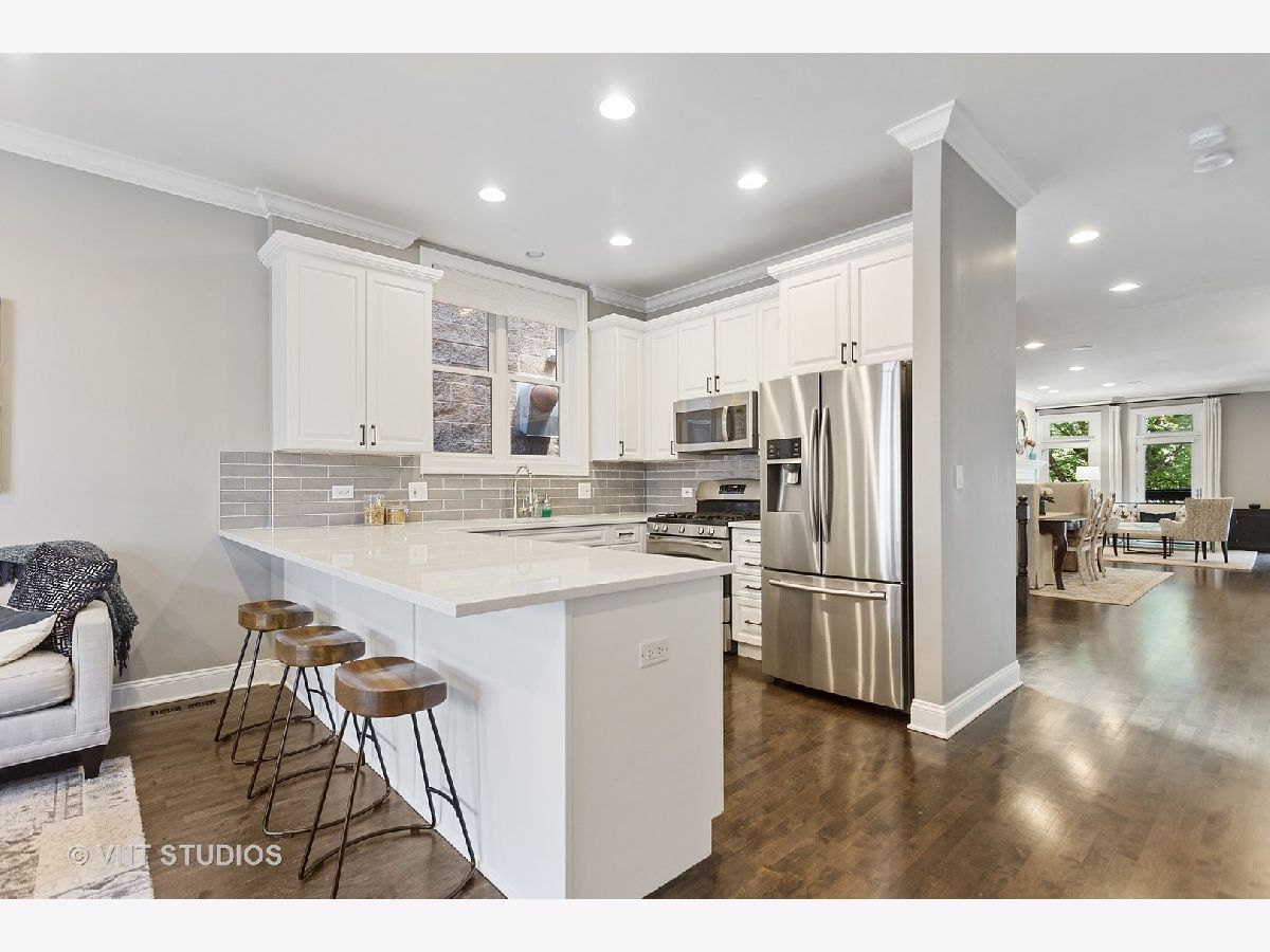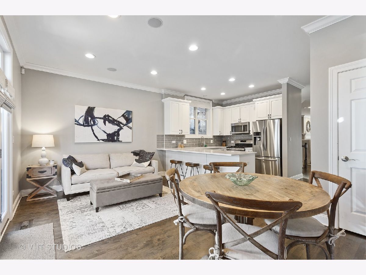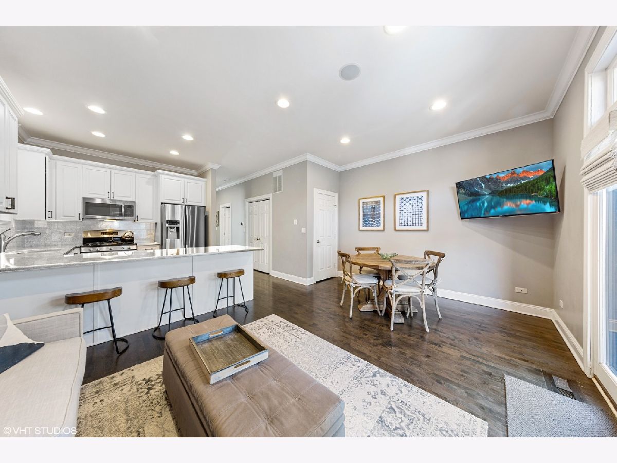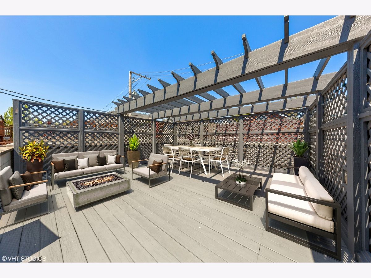 Bucktown SFH with Many Brand New Updates at Great Price Point! Spacious Floor Plan, Massive Full Finished Basement and Amazing Outdoor Space! Spacious 4 bed/ 3.5 bath single family home with a expansive floor plan, has a massive full finished basement and amazing outdoor space! Located on one of Bucktown's most desired blocks in prime location just minutes to North & Damen/ Blue Line EL! Outdoor spaces (4) include a garage-top deck built-out with a cedar pergola structure, a rear deck off kitchen/ family room perfect for grilling, a front patio and a private deck off of master suite overlooking garage deck. Bright south facing formal living room with floor-to-ceiling windows overlooks beautiful tree lined street and is flooded with natural light all day! Open concept floor plan with high ceilings and separate living/ dining room. Features dark stained solid maple hardwood flooring (main level & 2nd level), gas log fireplace, recessed lighting, crown molding and custom window treatments. Rare to find...huge oversized lower level recreation room (can be separated into 2 larges areas) with brand new carpeting, full built-in "wet bar", gas fireplace with marble surround, and walk-out patio, plus 4th bedroom and 3rd full bathroom, great for guests, nanny or an in-law suite. Updated white kitchen with quartz counters, glass tile backsplash, deep single bowl ss sink, stainless steel appliances & long peninsula with breakfast bar overhang. Family room off kitchen has a spacious eating area. Kitchen opens onto a rear deck leading to additional 400+ sf garage deck with cedar pergola, perfect for entertaining. Stunning center staircase with hardwood treads & modern banister gives the home an extra-wide full width floor plan. Massive glass block wall in staircase brings in tons of natural light into the center of home. Three spacious bedrooms on the 2nd floor (See Floor Plan). Master suite is flooded with natural light, has vaulted ceilings, spacious enough for a king size bed, multiple dressers and has two (2) separate organized "walk-in" closets (plus private deck). Spa-like natural stone master bathroom with skylights, double vanity, large whirlpool tub and separate frameless steam shower. 2nd bedroom is large enough for 2 kids (currently used as such) & has vaulted cathedral ceilings like master suite). Full size washer & dryer on upstairs / bedroom level. 2-car garage with extra room for storage. Just minutes to 90/94 expressway and easy to Damen, North Ave & Armitage buses and Blue line "L" station. Best location in Bucktown right off the "606 Trail", close to several neighborhood parks, library, "Six Corners" entertainment, nightlife, retail shops and too many restaurants to list. Must see pics, won't last long!