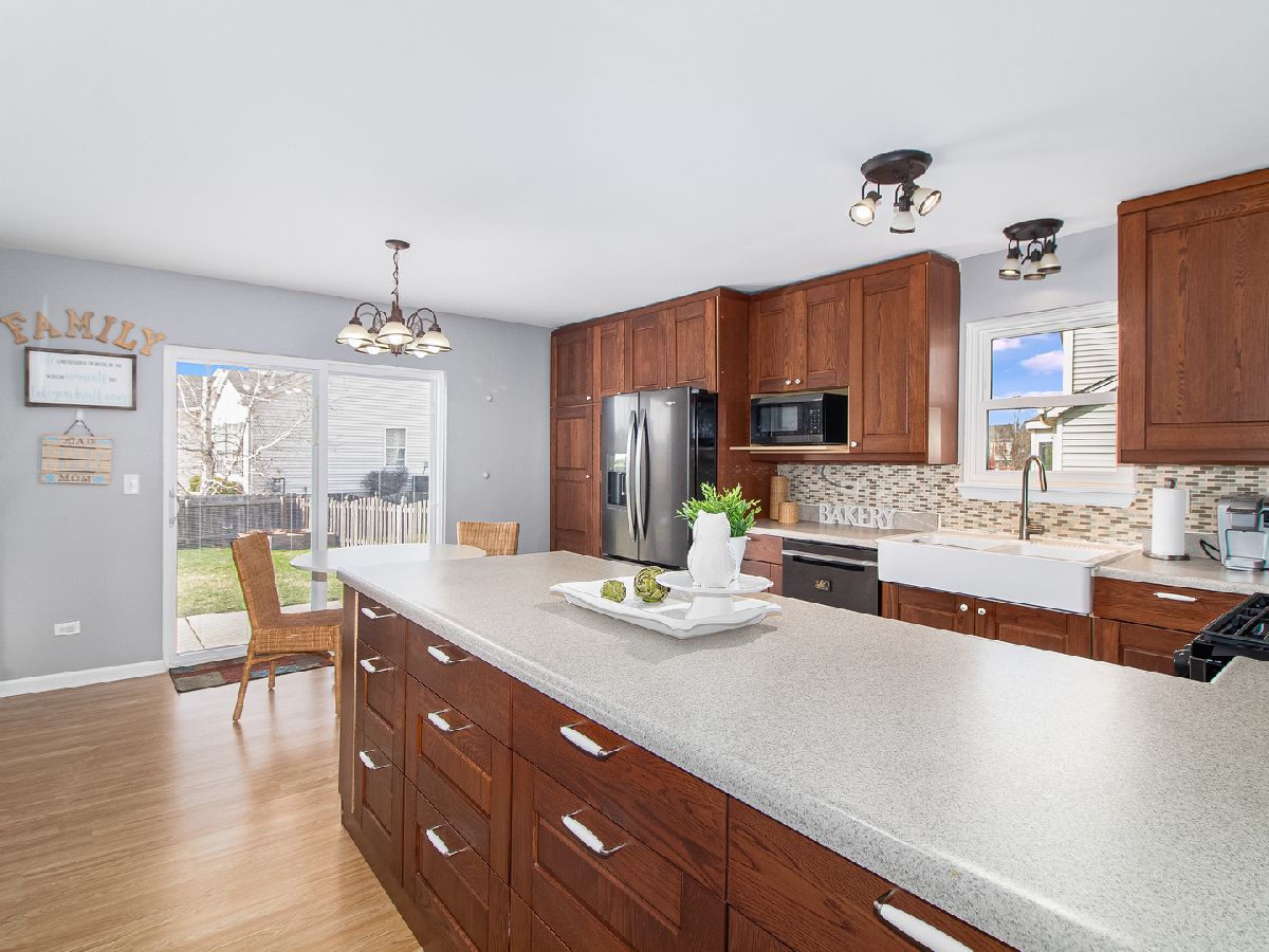Welcome Home! Comfortable and bright split level boasts 4 bedrooms and 2 1/2 baths. Living room/ dining room combo with custom built-in buffet. Beautiful updated kitchen has it all: farm sink, tons of cabinet space, all new stainless appliances and room for a table. Sliding door from the kitchen leads to a spacious patio and large fenced backyard. Master bedroom has a walk-in closet and full bath with a shower. There's a roomy family room on the lower level and also a 4th bedroom, half bath and the laundry room. The garage was recently insulated and dry walled for a fresh finished look. Nest thermostat, Remo doorbell and 4 exterior security cameras included. Current homeowner is 100% exempt from property taxes - this exemption will run through the year for 2020 - providing a significant saving for the buyer. This home is move-in ready, don't miss it!