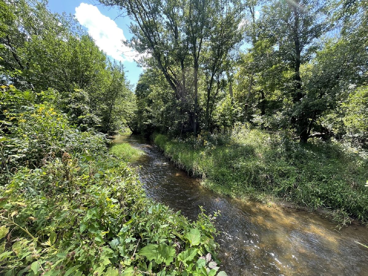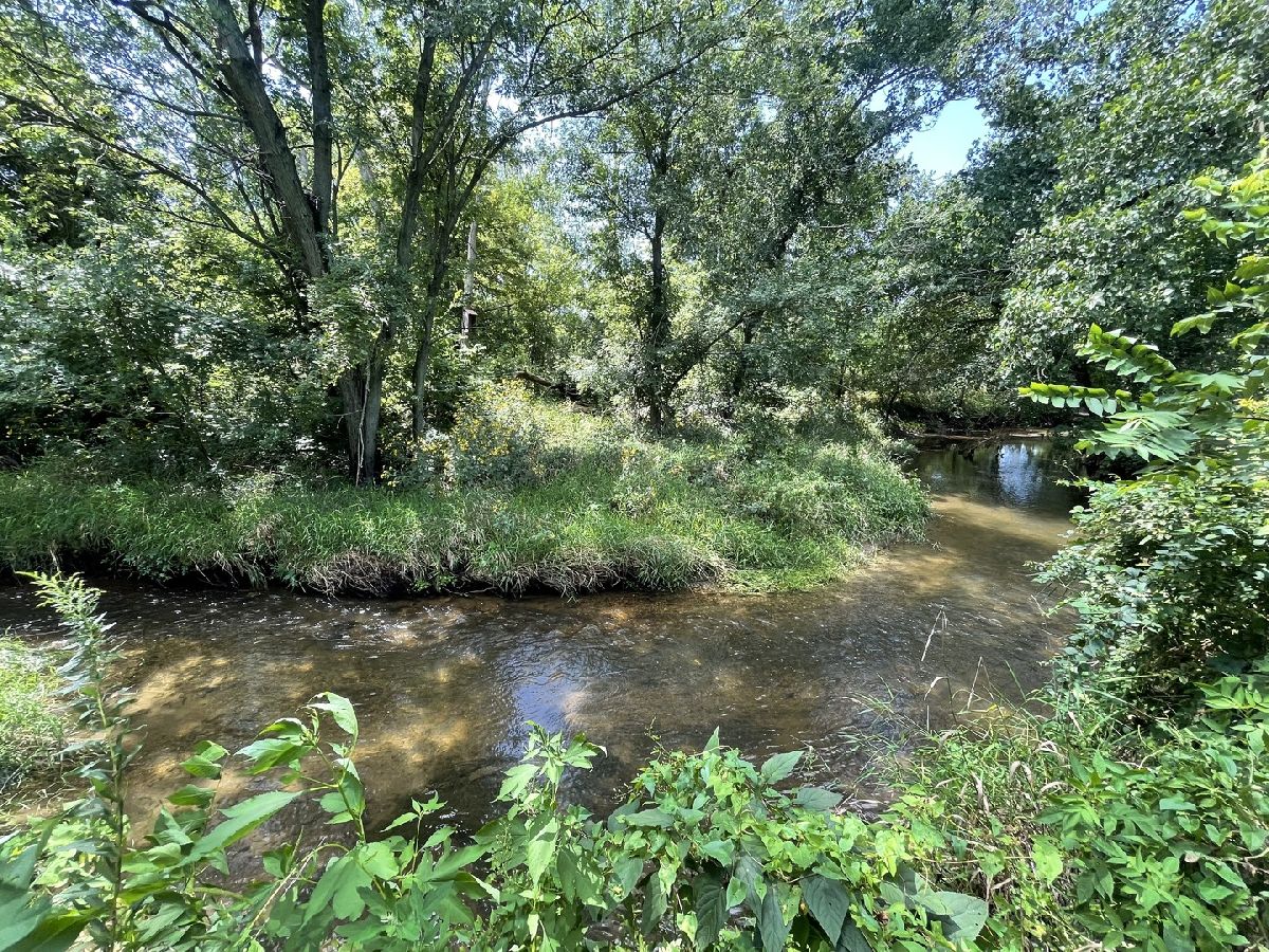 Well-kept, private, and ready to move in! This house has 3 bedrooms, 2 bathrooms, and sits on over an acre of land. You'll notice its charm right away with a porch swing by the front door. The living room is spacious and great for gatherings. The kitchen has lots of cabinets, white appliances, and a dining area with views of the backyard. A bedroom and bathroom on the main floor make this a great long-term home. The laundry room is also on the first floor. Upstairs, there are 2 large bedrooms with ample closet space and another full bathroom. Outside is a nature lover's paradise. Relax, have fun, and enjoy the fenced backyard with a big patio and pergola. Just beyond the fence is the creek that runs through the property. The separate 2-car garage and shed are perfect for storage. Close to the Old Plank Road Trail, downtown Frankfort, eateries, shops, and top-notch schools. Don't miss out - set up a showing today. This home is a true gem!