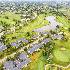 Welcoming and warm end unit located between the 4th green and 5th Tee of the Blue Golf Course in the desirable Carillon resort styled community, an active 55+ adult gated community featuring 24/7 guard services, clubhouse, indoor and outdoor pools, tennis, bocce and shuffle-board courts, 27-hole golf course, and much more! This two-bedroom, two bathroom home has 9ft ceilings, large master bedroom with walk-in closet and an en-suite master bath with double sinks, both a soaker tub and separate shower equipped with support bars. New laminate flooring i kitchen and foyer. new roof, air conditioner (2023), washer/dryer (2022).