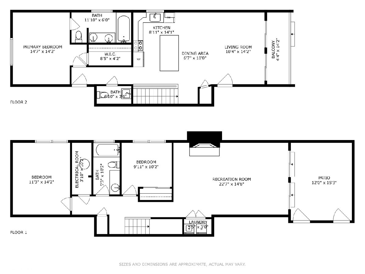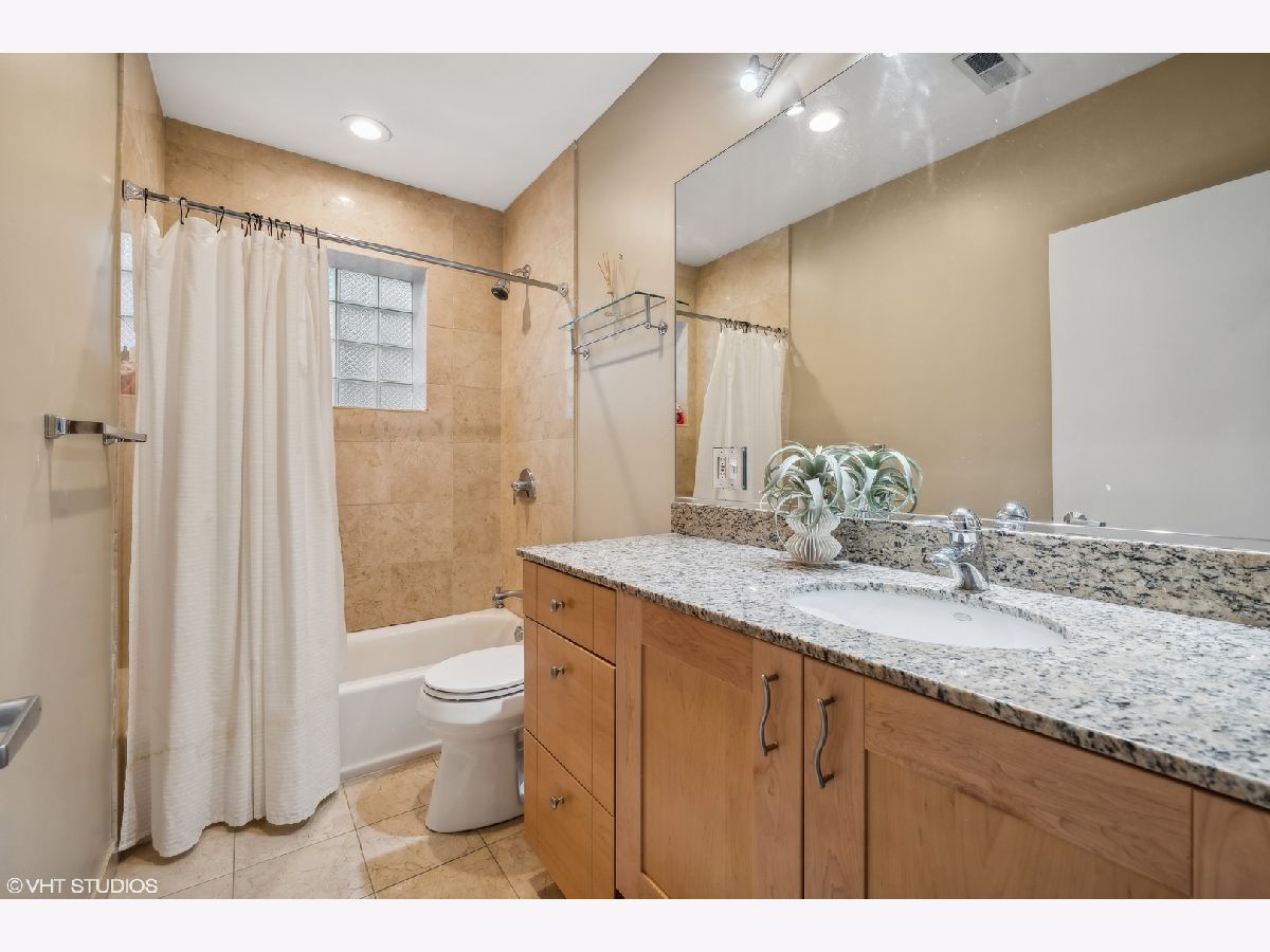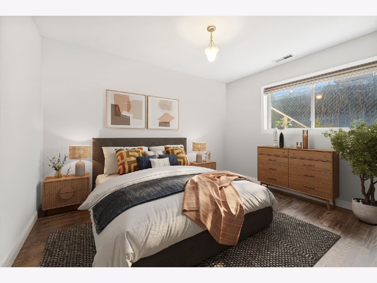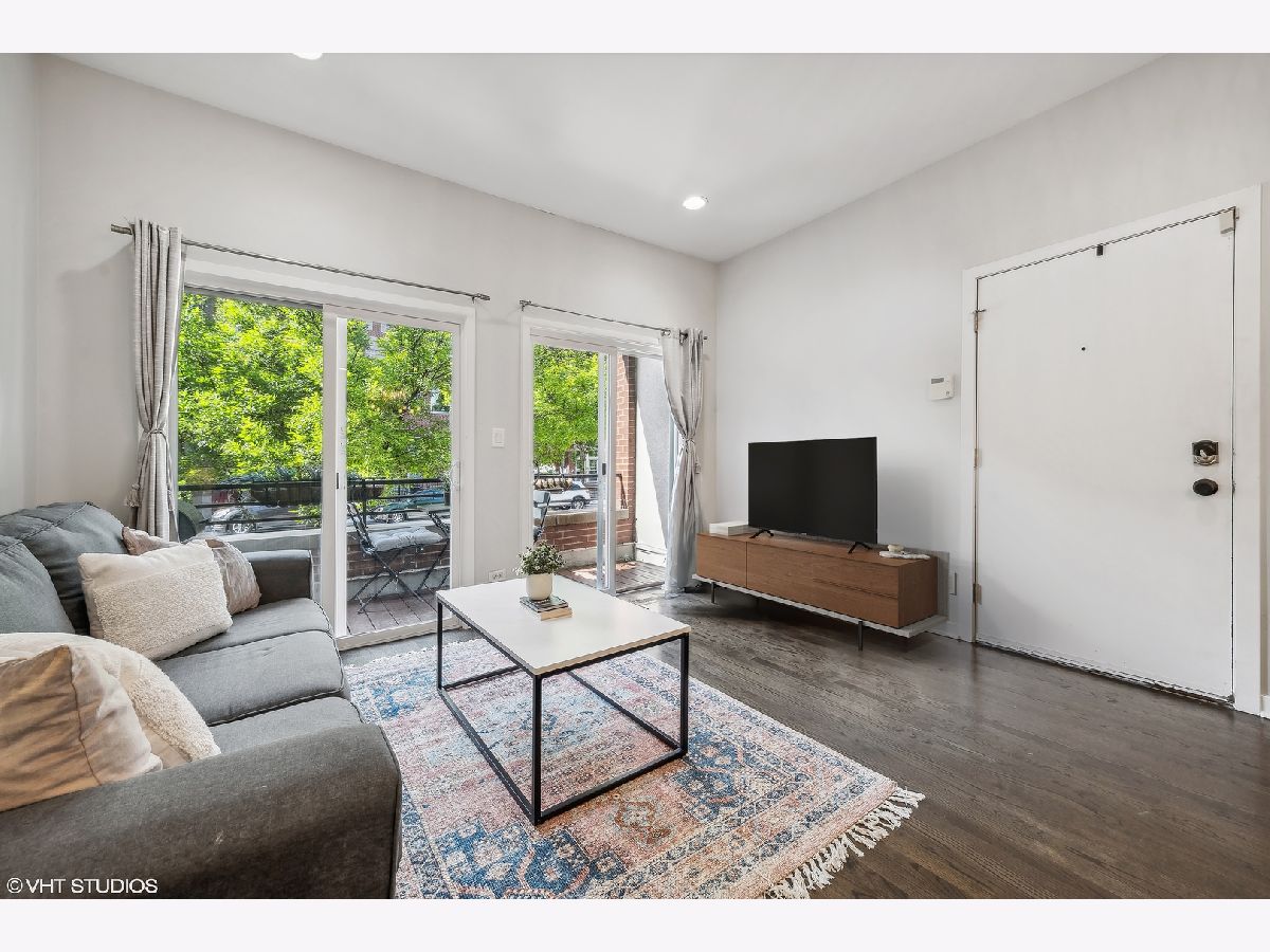 Welcome to this sprawling 3-bedroom, 2.5-bath duplex down with amazing outdoor space in the heart of Bucktown, where modern elegance meets urban convenience. Step inside to discover newly refinished rich oak hardwood floors that flow seamlessly throughout. Updated kitchen is a chef's dream, featuring crisp white cabinetry, quartz countertops, newer stainless steel appliances, and an island with a breakfast bar. Adjacent to the kitchen, the separate dining area and comfortable living room is bathed in natural light from southern-facing wall of patio door windows and leads to a wonderful front deck, perfect for grilling and dining al fresco! King-sized primary suite offers a serene retreat with an en-suite bath and a spacious walk-in closet. Lower level is designed for entertaining and relaxation, featuring a grand recreation room with a beautiful tiled fireplace and an extra large sunken patio. This level also includes two nicely sized bedrooms, another full bath, and a convenient laundry room. Recent updates includes a newer furnace, water heater, and a new roof coming this summer (will be paid prior to closing). With garage parking and abundant storage throughout, this home offers both style and practicality in one of Bucktown's most desirable locations. Walk to everything including restaurants, coffee shops, shopping, Holstein park, the 606, public transit and more!