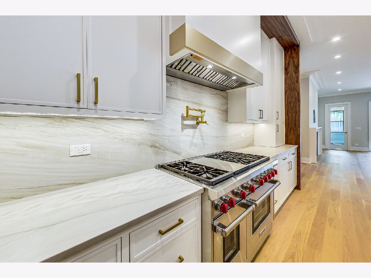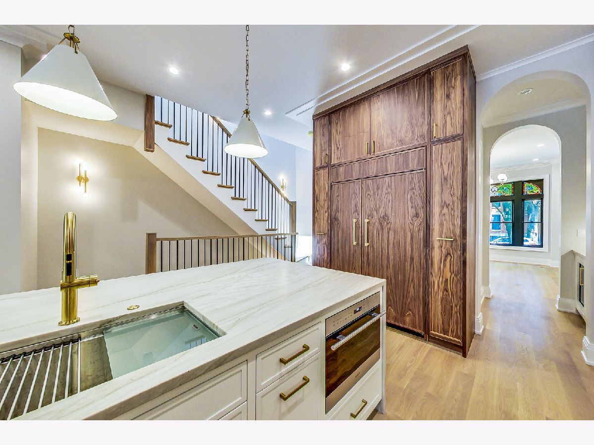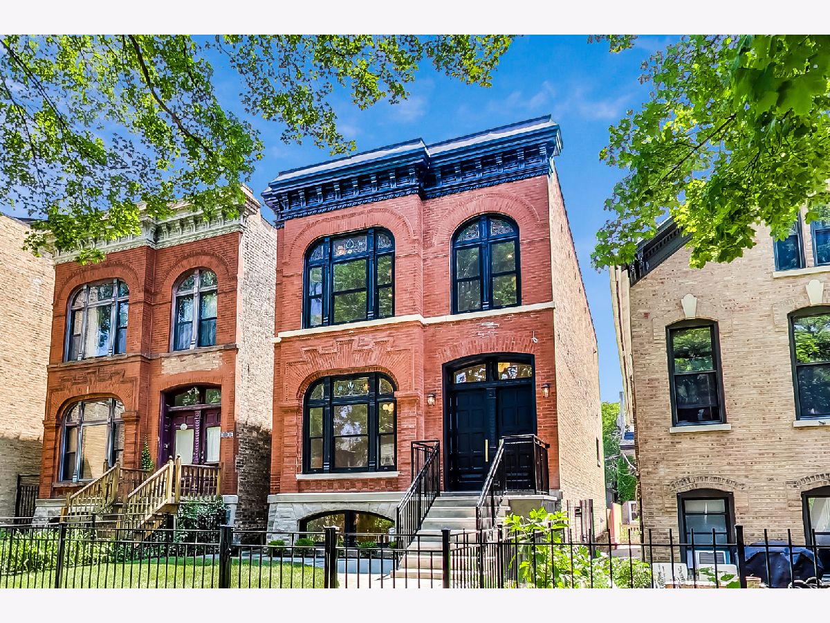 This one-of-a-kind, historic, new construction home on an oversized lot (26x162) has been completely renovated and expanded to 5,000 sq. ft, 6 bed/ 4.1 bath (4 beds up) while restoring the gorgeous, vintage stain-glass, woodwork and brick detail front elevation. This home is nestled on a quiet, tree-lined, one-way street with other surrounding historic homes. A brand new masonry addition ties seamlessly with the original all-brick structure that enables a 4th bedroom upstairs, an extended mudroom and a covered terrace on 1st floor as well as a flex room with high ceilings (6th bed/theatre/workout room/golf simulator/wine room) in lower level. Floor plan was meticulously designed to include an over-sized kitchen and a huge family for relaxing and entertaining. Kitchen. boasts a 48" Subzero/Wolf appliance package and large island.Expansive primary en-suite features a gorgeous bathroom , a custom closet changing room/vanity area or second walk-in closet, as well as separate stand-alone walk-in closet. Primary bath includes a soaking tub book-cased by large smoked windows, dual vanity, water closet and curb-less shower. Large glass sliding doors in the family room extend to a covered terrace with A/V hook-up and staircase leading to a lush and large backyard ready for your patio, grilling and outdoor fireplace ideas. 2 car garage included and an option to build an already approved ADU coach house (at additional cost) and/or a roof deck over coachhouse. Other features: radiant heated basement, heated bathroom floors throughout, detailed trim packages, fireplace, formal dining space, 8 ft doors, wine cellar options, arched doorway details, large breakfast banquette built-in, custom mill work.