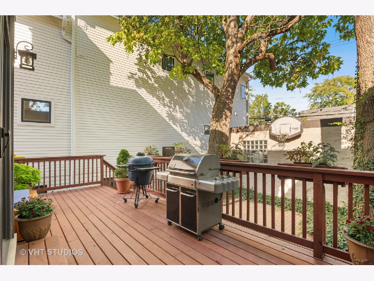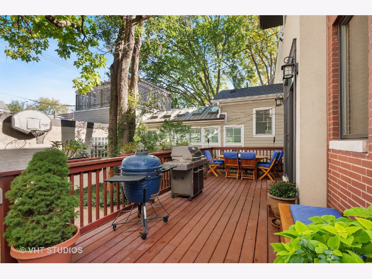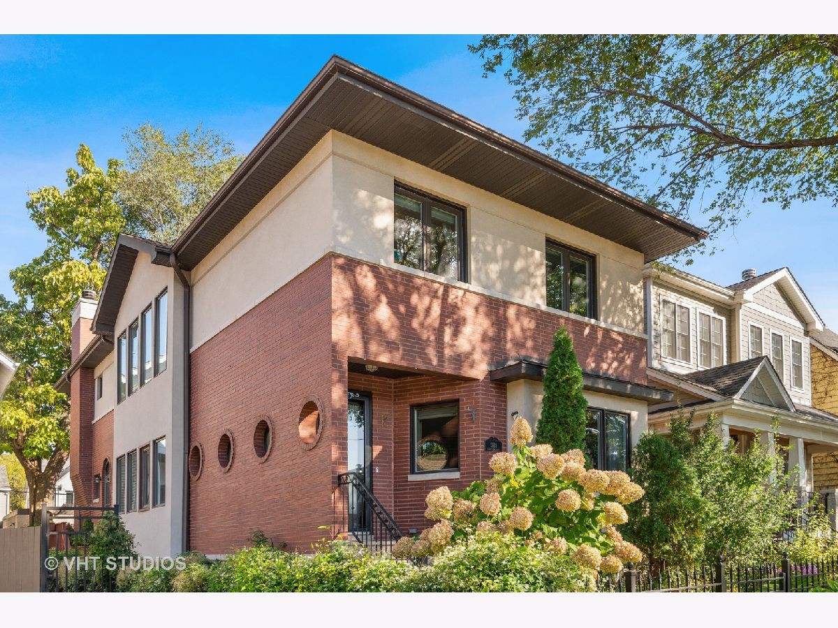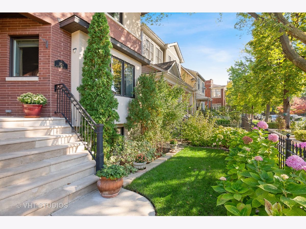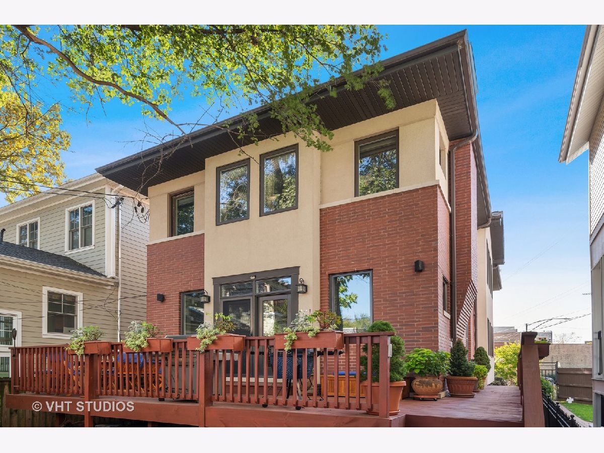 Beautifully maintained brick and masonry home in thriving North Center/Coonley Elementary. Built in 2001 on an extra-wide lot, this home offers expansive living space both inside and out and is flooded with sunlight from the many oversized windows and generous setbacks. A mix of modern and traditional design, this home boasts a gracious formal living space with custom wood mantel and gas-log fireplace, separate formal dining room, and functional great room with white and granite kitchen featuring chef's grade appliances, an oversized center island with custom lighting, seating and open and closed storage. Just off the kitchen is a separate eating area and casual family room with gas-log fireplace, granite mantel and built-ins for storage and desk area. Out the pretty French doors is a backyard paradise built for entertaining with mature trees and plantings, oversized wraparound deck (with sound), a custom brick paver patio and a three-car garage. Upstairs this home's amenities continue with FOUR large and spacious bedrooms each with full wall or walk-in closets and full size, side-by-side laundry to boot. The primary bedroom includes a professionally organized walk-in closet and large attached bath with cherry cabinets, granite finishes, dual sinks, massive whirlpool tub and separate steam shower with body sprays. The hall bath upstairs is finished in marble and cherry and features a walk-in shower and dual sinks. The lower level of this home offers even more room to grow with a massive recreation room with hardwood floors, a custom-built office enclosed in a wall of pretty glass and wood moldings and a slate-floored wet bar with sink, storage and refrigerator. Finally, the fifth bedroom - currently outfit as a home gym, features heated floors and a huge walk-in closet and is just off the lower-level marble and cherry bath. The seemingly endless amenities of this home include hardwood floors with custom inlays, extra-wide stairwells, over-sized windows, heated front exterior stairs to ease a snowy day, a sprinkler system in the front and sides of the homes for growing your gardens, dual-zoned HVAC, endless storage and closet space and full sound system - including backyard. All this in popular North Center, within Coonley Elementary and just steps from transportation and amazing dining, shopping and entertainment.