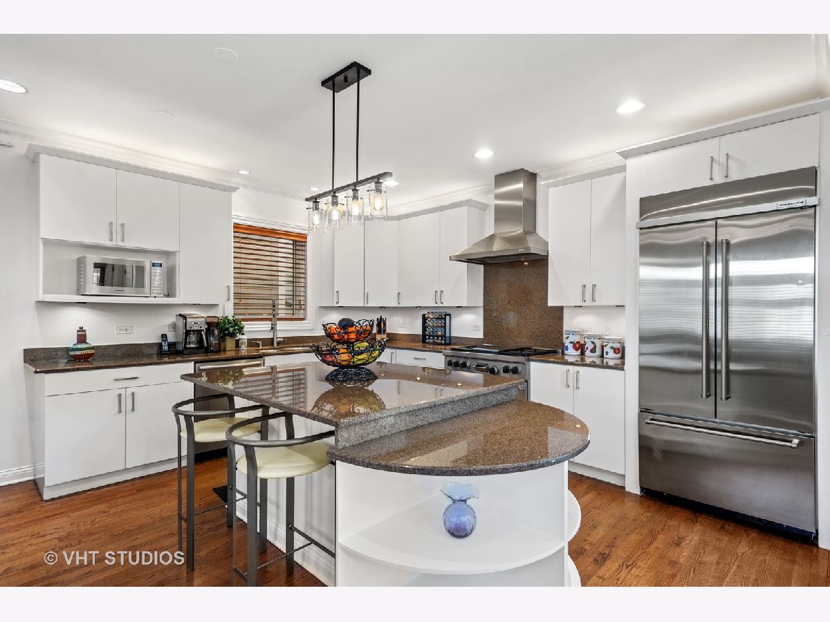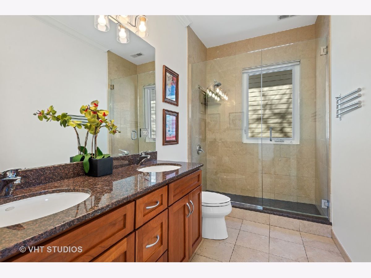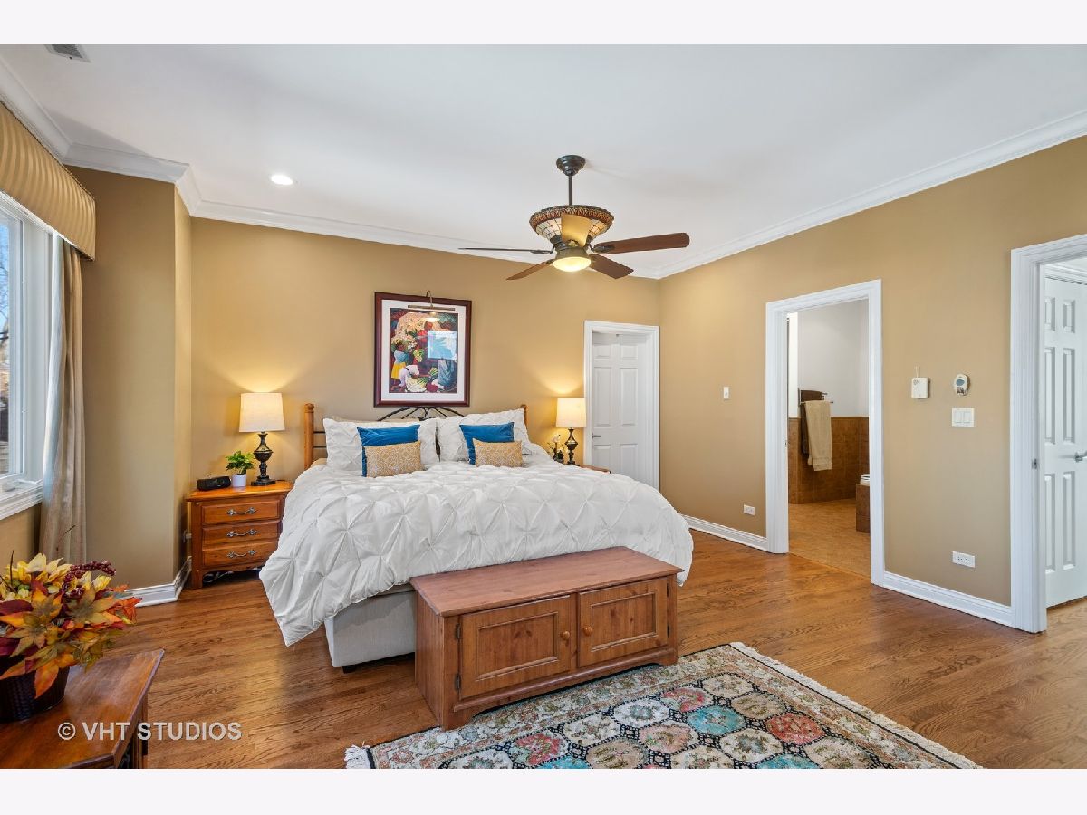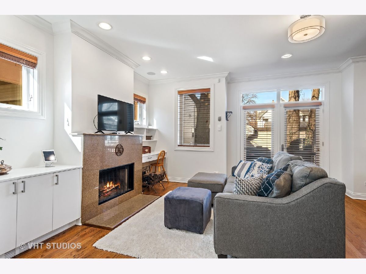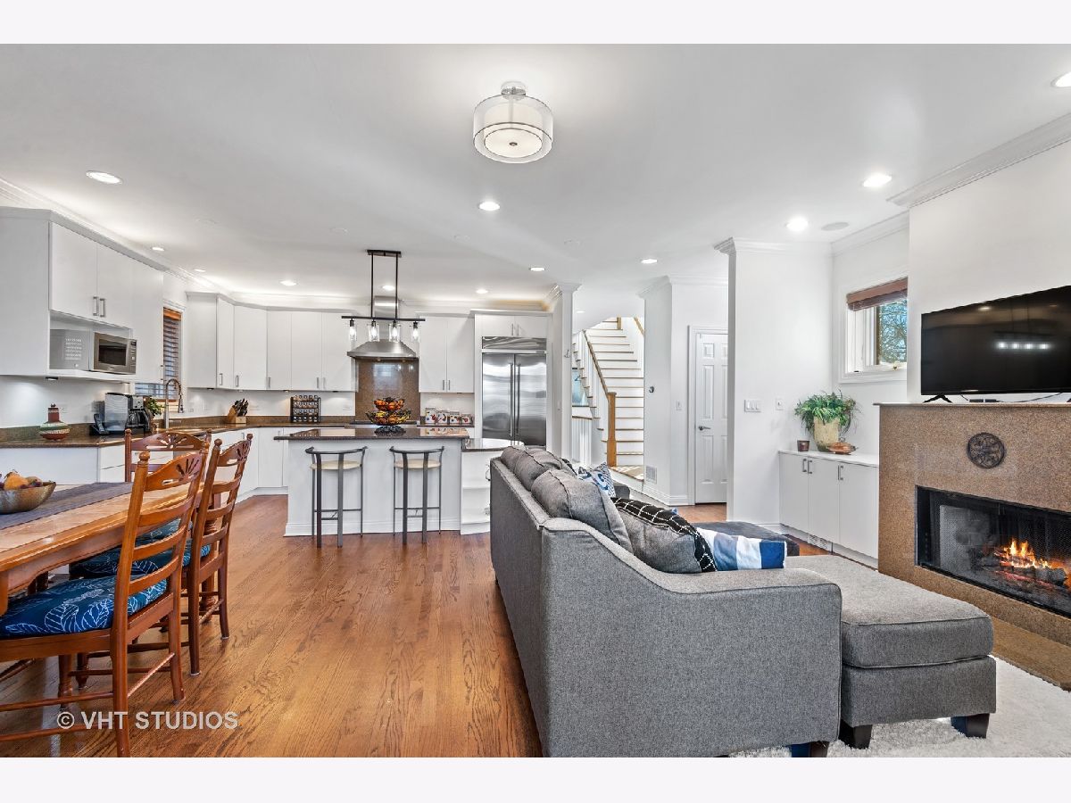 Beautifully maintained brick and masonry home in thriving North Center/Coonley Elementary. Built in 2001 on an extra-wide lot, this home offers expansive living space both inside and out and is flooded with sunlight from the many oversized windows and generous setbacks. A mix of modern and traditional design, this home boasts a gracious formal living space with custom wood mantel and gas-log fireplace, separate formal dining room, and functional great room with white and granite kitchen featuring chef's grade appliances, an oversized center island with custom lighting, seating and open and closed storage. Just off the kitchen is a separate eating area and casual family room with gas-log fireplace, granite mantel and built-ins for storage and desk area. Out the pretty French doors is a backyard paradise built for entertaining with mature trees and plantings, oversized wraparound deck (with sound), a custom brick paver patio and a three-car garage. Upstairs this home's amenities continue with FOUR large and spacious bedrooms each with full wall or walk-in closets and full size, side-by-side laundry to boot. The primary bedroom includes a professionally organized walk-in closet and large attached bath with cherry cabinets, granite finishes, dual sinks, massive whirlpool tub and separate steam shower with body sprays. The hall bath upstairs is finished in marble and cherry and features a walk-in shower and dual sinks. The lower level of this home offers even more room to grow with a massive recreation room with hardwood floors, a custom-built office enclosed in a wall of pretty glass and wood moldings and a slate-floored wet bar with sink, storage and refrigerator. Finally, the fifth bedroom - currently outfit as a home gym, features heated floors and a huge walk-in closet and is just off the lower-level marble and cherry bath. The seemingly endless amenities of this home include hardwood floors with custom inlays, extra-wide stairwells, over-sized windows, heated front exterior stairs to ease a snowy day, a sprinkler system in the front and sides of the homes for growing your gardens, dual-zoned HVAC, endless storage and closet space and full sound system - including backyard. All this in popular North Center, within Coonley Elementary and just steps from transportation and amazing dining, shopping and entertainment.