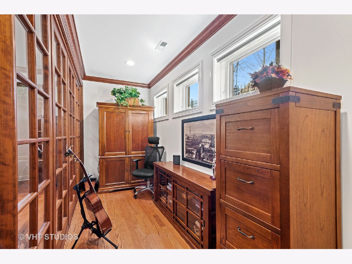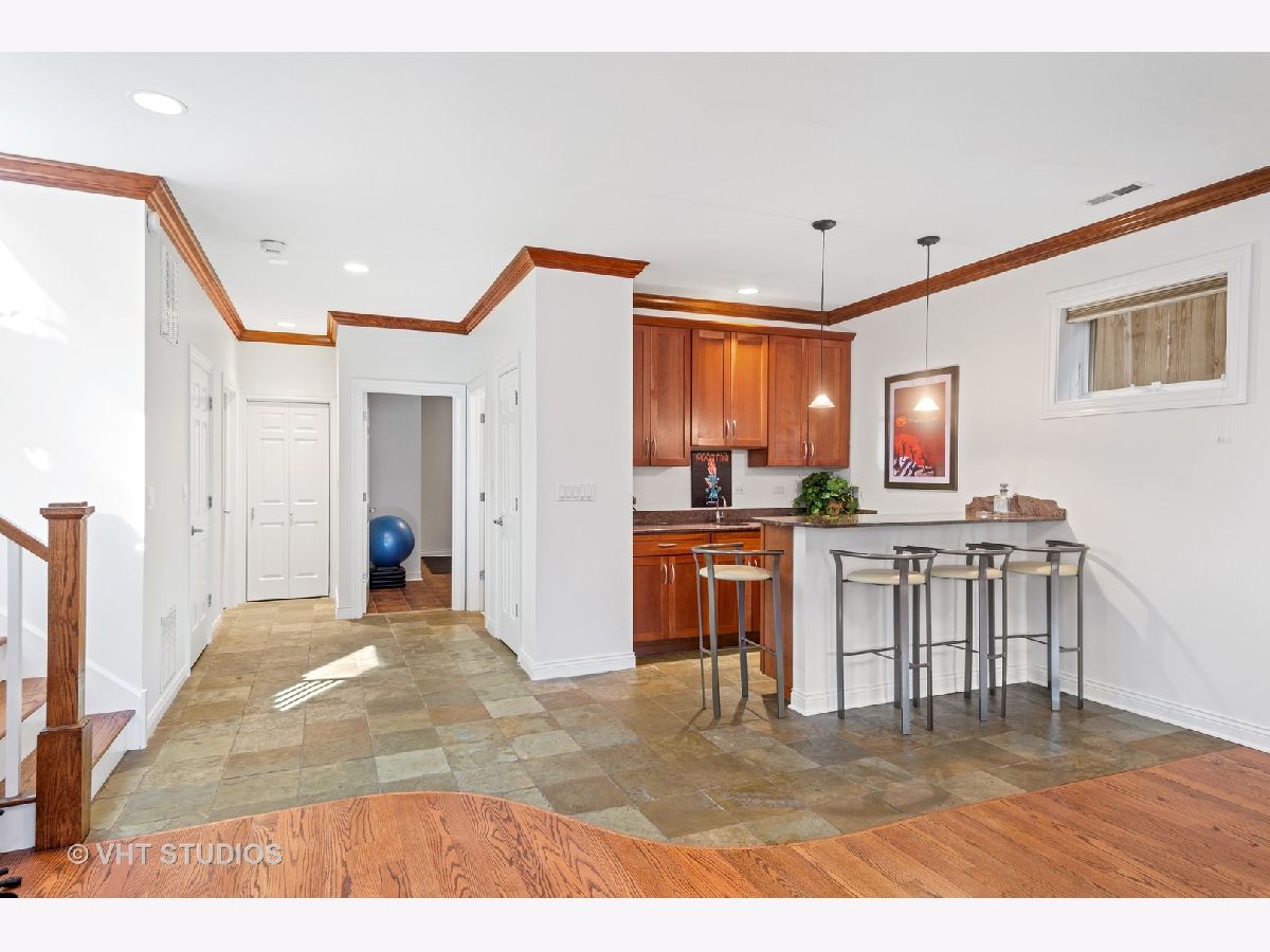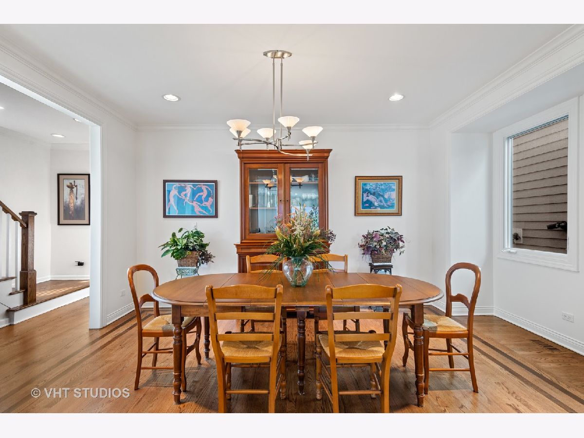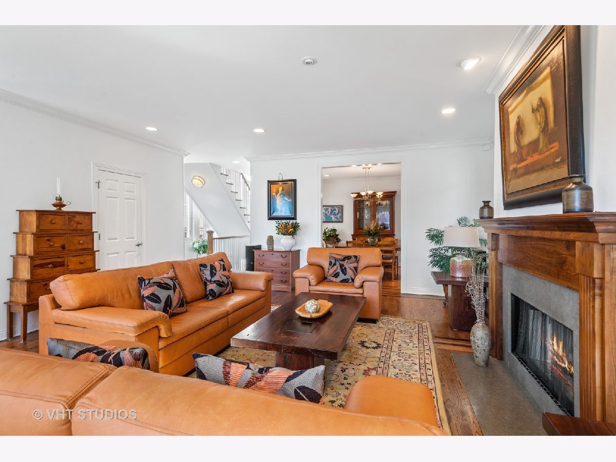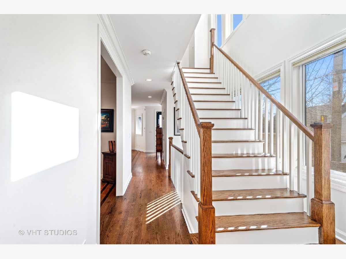 Beautifully maintained brick and masonry home in thriving North Center/Coonley Elementary. Built in 2001 on an extra-wide lot, this home offers expansive living space both inside and out and is flooded with sunlight from the many oversized windows and generous setbacks. A mix of modern and traditional design, this home boasts a gracious formal living space with custom wood mantel and gas-log fireplace, separate formal dining room, and functional great room with white and granite kitchen featuring chef's grade appliances, an oversized center island with custom lighting, seating and open and closed storage. Just off the kitchen is a separate eating area and casual family room with gas-log fireplace, granite mantel and built-ins for storage and desk area. Out the pretty French doors is a backyard paradise built for entertaining with mature trees and plantings, oversized wraparound deck (with sound), a custom brick paver patio and a three-car garage. Upstairs this home's amenities continue with FOUR large and spacious bedrooms each with full wall or walk-in closets and full size, side-by-side laundry to boot. The primary bedroom includes a professionally organized walk-in closet and large attached bath with cherry cabinets, granite finishes, dual sinks, massive whirlpool tub and separate steam shower with body sprays. The hall bath upstairs is finished in marble and cherry and features a walk-in shower and dual sinks. The lower level of this home offers even more room to grow with a massive recreation room with hardwood floors, a custom-built office enclosed in a wall of pretty glass and wood moldings and a slate-floored wet bar with sink, storage and refrigerator. Finally, the fifth bedroom - currently outfit as a home gym, features heated floors and a huge walk-in closet and is just off the lower-level marble and cherry bath. The seemingly endless amenities of this home include hardwood floors with custom inlays, extra-wide stairwells, over-sized windows, heated front exterior stairs to ease a snowy day, a sprinkler system in the front and sides of the homes for growing your gardens, dual-zoned HVAC, endless storage and closet space and full sound system - including backyard. All this in popular North Center, within Coonley Elementary and just steps from transportation and amazing dining, shopping and entertainment.