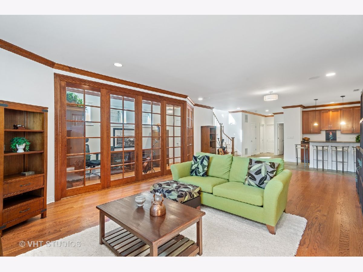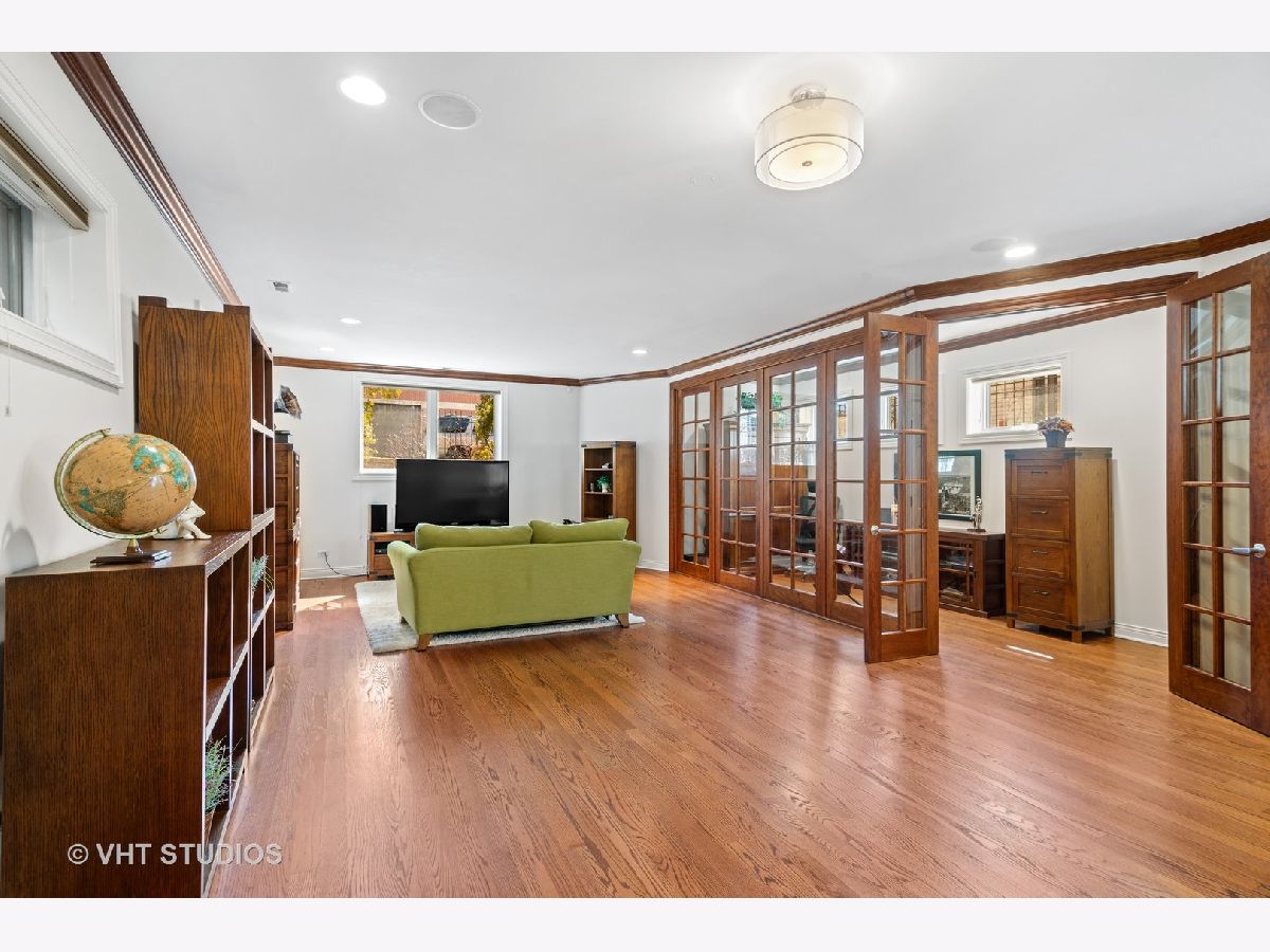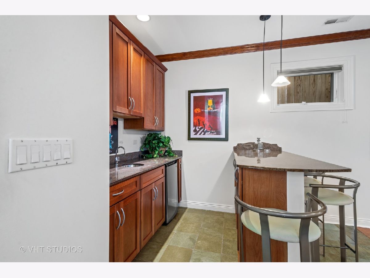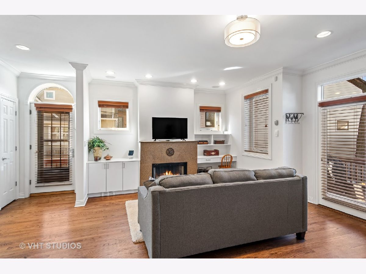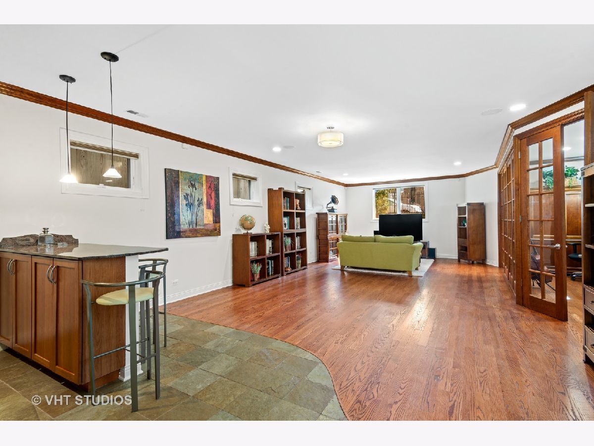 Beautifully maintained brick and masonry home in thriving North Center/Coonley Elementary. Built in 2001 on an extra-wide lot, this home offers expansive living space both inside and out and is flooded with sunlight from the many oversized windows and generous setbacks. A mix of modern and traditional design, this home boasts a gracious formal living space with custom wood mantel and gas-log fireplace, separate formal dining room, and functional great room with white and granite kitchen featuring chef's grade appliances, an oversized center island with custom lighting, seating and open and closed storage. Just off the kitchen is a separate eating area and casual family room with gas-log fireplace, granite mantel and built-ins for storage and desk area. Out the pretty French doors is a backyard paradise built for entertaining with mature trees and plantings, oversized wraparound deck (with sound), a custom brick paver patio and a three-car garage. Upstairs this home's amenities continue with FOUR large and spacious bedrooms each with full wall or walk-in closets and full size, side-by-side laundry to boot. The primary bedroom includes a professionally organized walk-in closet and large attached bath with cherry cabinets, granite finishes, dual sinks, massive whirlpool tub and separate steam shower with body sprays. The hall bath upstairs is finished in marble and cherry and features a walk-in shower and dual sinks. The lower level of this home offers even more room to grow with a massive recreation room with hardwood floors, a custom-built office enclosed in a wall of pretty glass and wood moldings and a slate-floored wet bar with sink, storage and refrigerator. Finally, the fifth bedroom - currently outfit as a home gym, features heated floors and a huge walk-in closet and is just off the lower-level marble and cherry bath. The seemingly endless amenities of this home include hardwood floors with custom inlays, extra-wide stairwells, over-sized windows, heated front exterior stairs to ease a snowy day, a sprinkler system in the front and sides of the homes for growing your gardens, dual-zoned HVAC, endless storage and closet space and full sound system - including backyard. All this in popular North Center, within Coonley Elementary and just steps from transportation and amazing dining, shopping and entertainment.